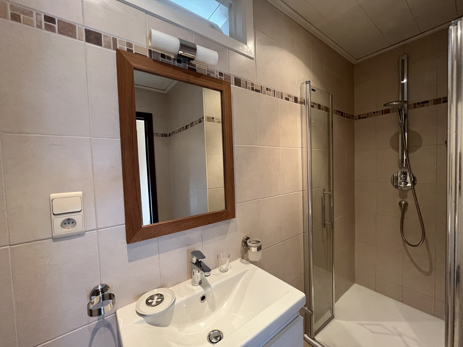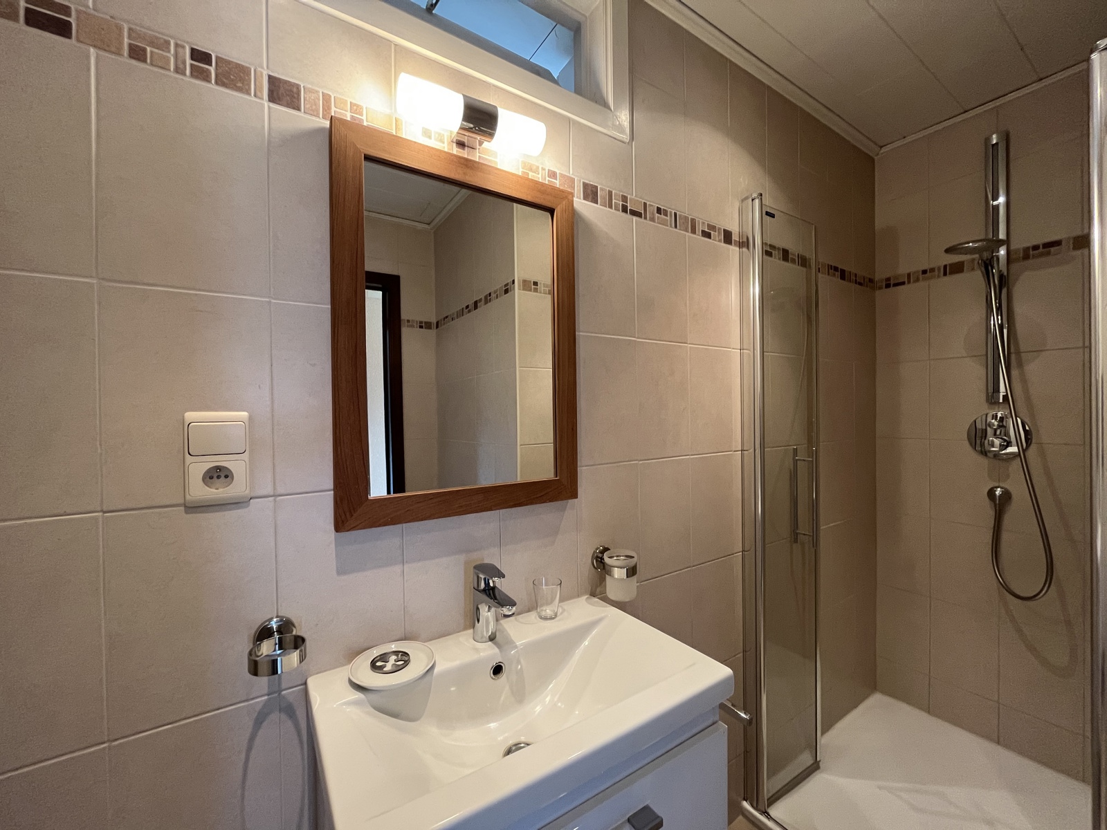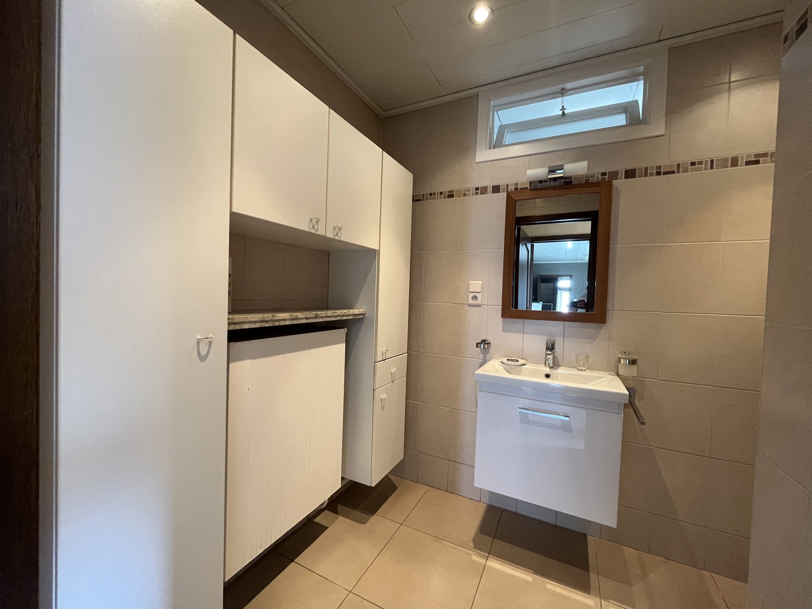 Indeling: Gelijkvloers: inkomhal, ruime leefruimte, volledig uitgeruste keuken met kookplaat, oven, microgolf, dampkap, koelkast en diepvries. Verder is er een moderne badkamer met inloopdouche, lavabo met spiegelkast en kolomkast, een afzonderlijk toilet en een kelder.