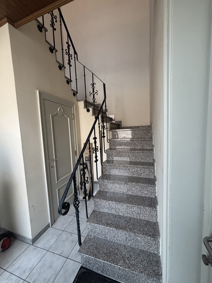 Het appartement bevindt zich op de bovenste verdieping van een verzorgd gebouw, bereikbaar via twee trappen. De hoge ligging zorgt voor extra privacy en een mooi open zicht op de omgeving. De gemeenschappelijke inkom is netjes onderhouden en geeft een verzorgde eerste indruk.
