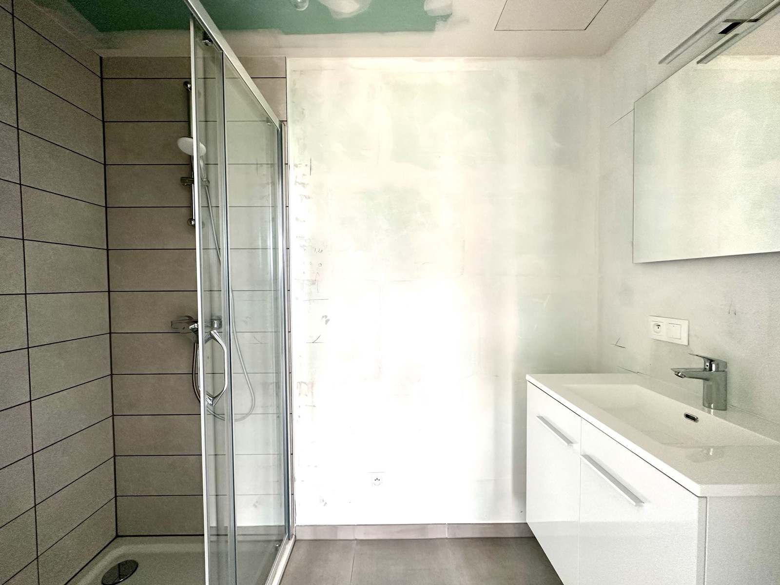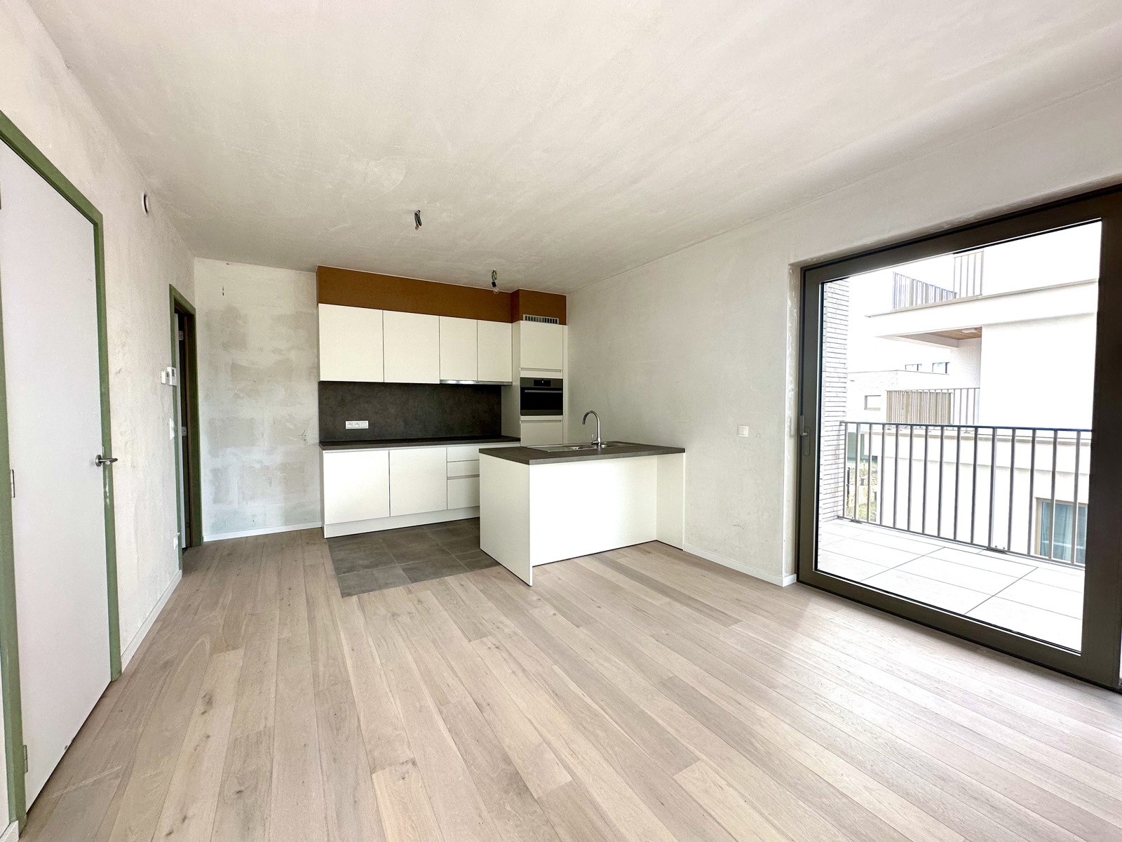 Dit modern en centraal gelegen nieuwbouwappartement, met een bewoonbare oppervlakte van 63m² (excl. terras), omvat een ruime inkomhal met een afzonderlijk toilet en ruimte voor een vestiaire, toegang tot de volledig ingerichte open keuken met aanpalend een praktische berging, een gezellige woonkamer met veel lichtinval, de slaapkamer met de badkamer (inloopdouche en lavabo). Het zuid-westgericht terras van 9m2. Doorheen het appartement werd er gebruik gemaakt van duurzame materialen, voorzien van alle comfort.