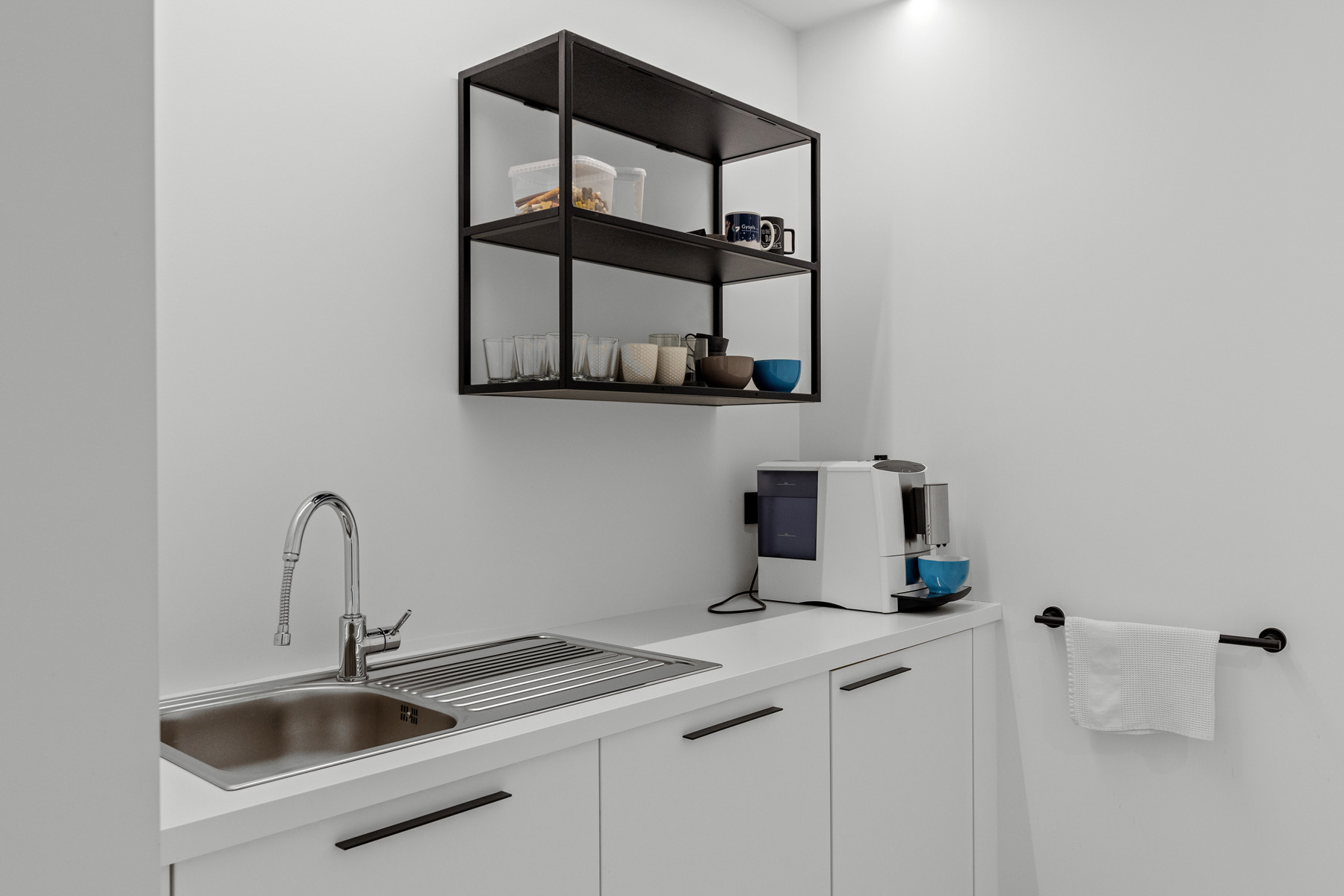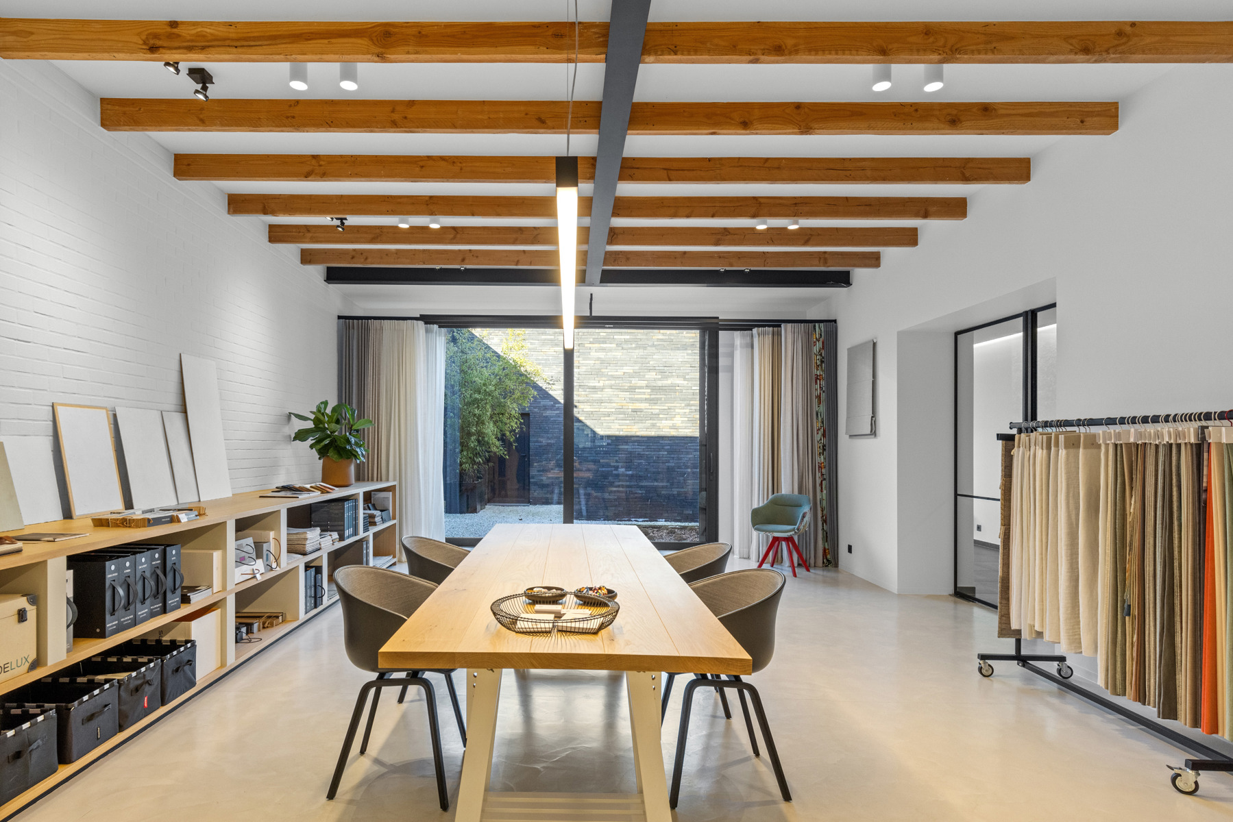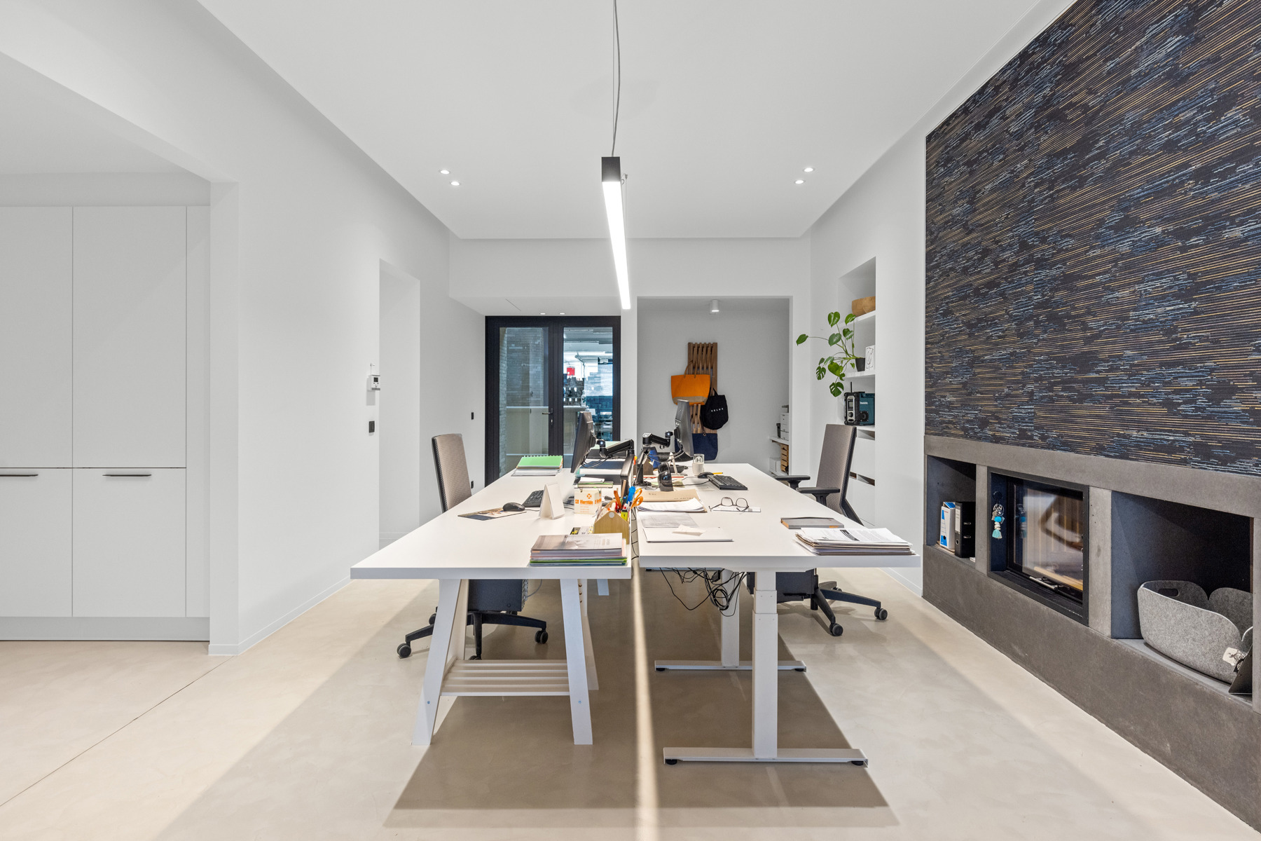 De combinatie van verfijnde, natuurlijke materialen en doordachte architecturale keuzes creëert een werkruimte die zowel stijlvol als inspirerend aanvoelt. Hier wordt werken een ervaring – een plek waar productiviteit en welzijn naadloos samenvloeien.