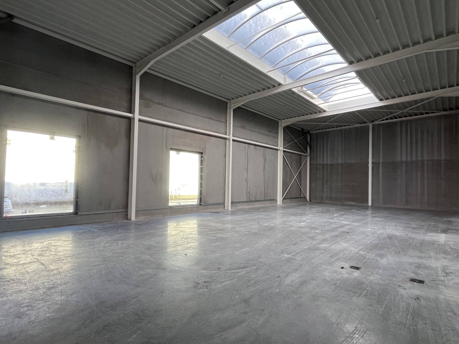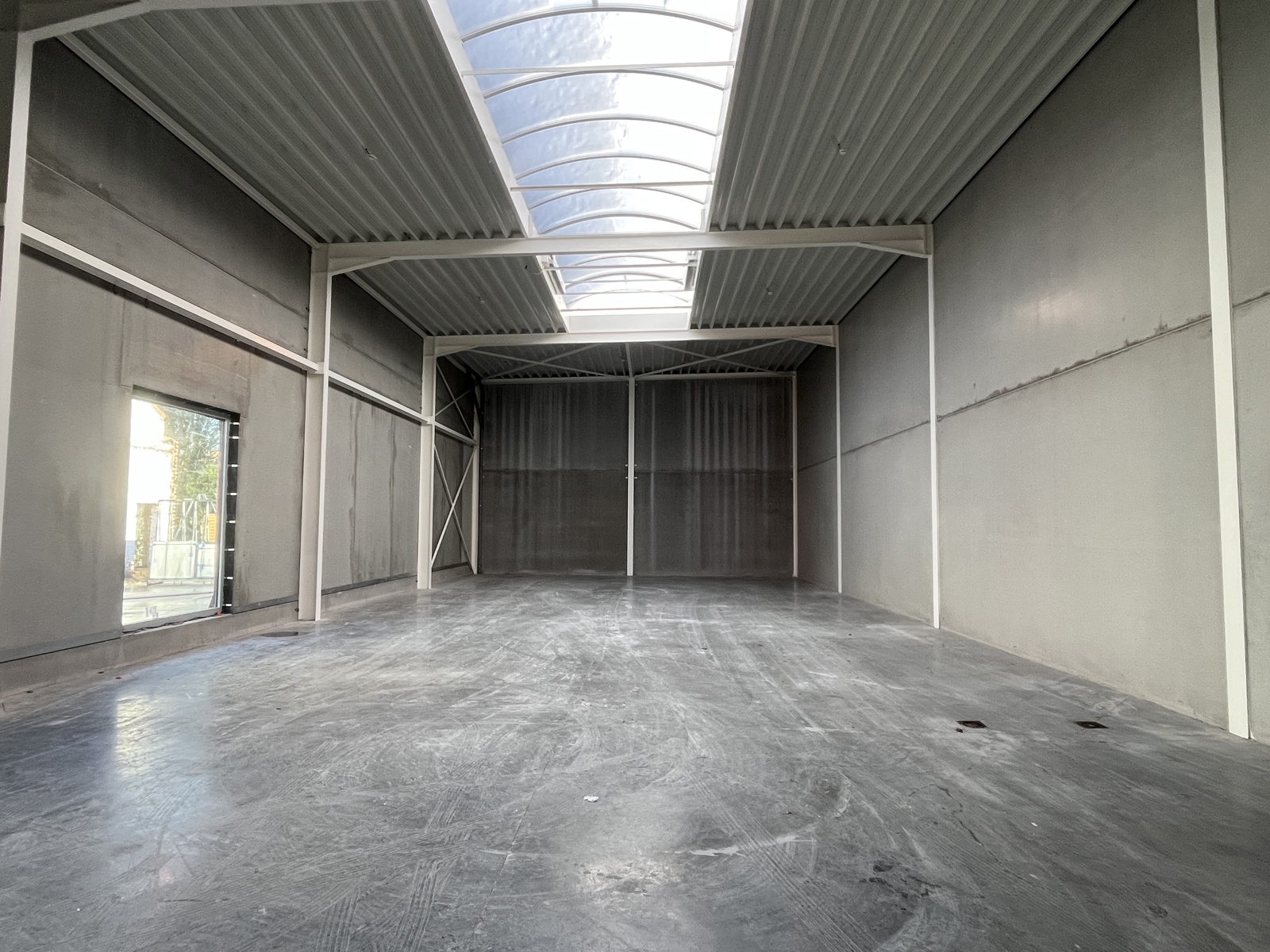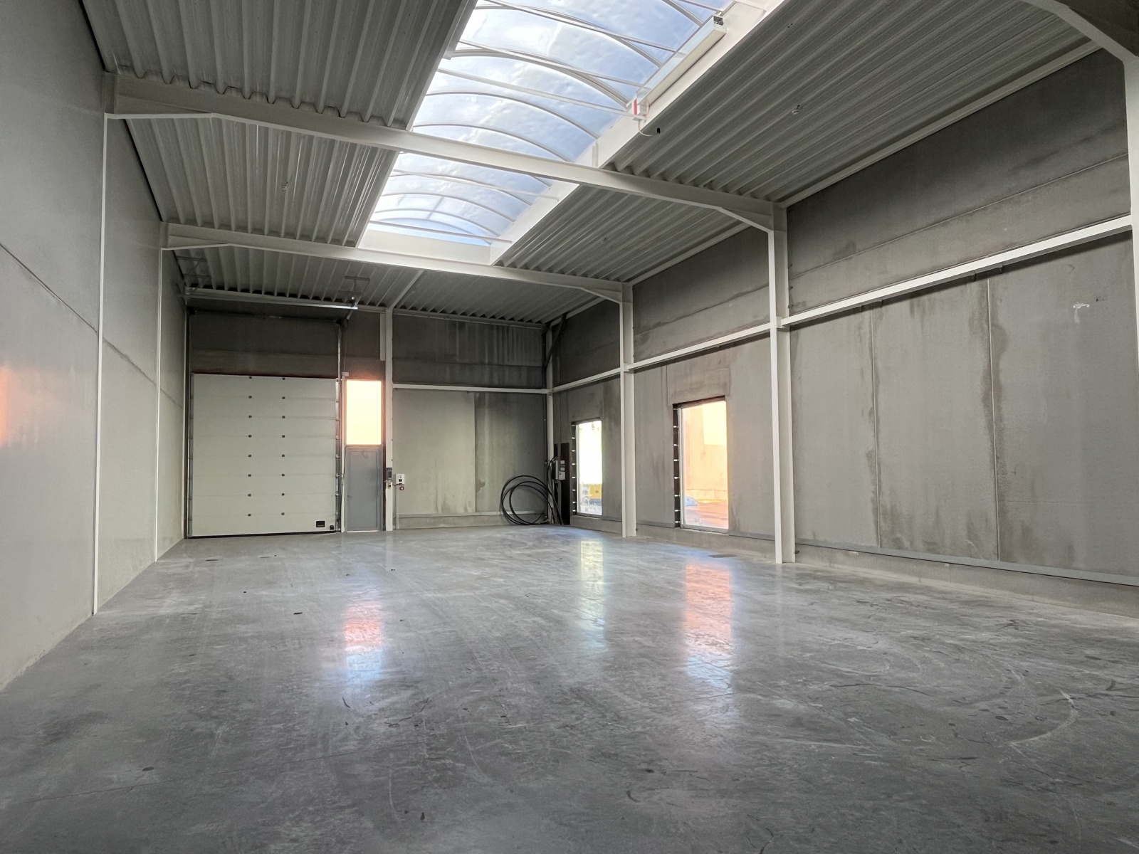 Het casco magazijn van 260 m² is voorzien van een centrale lichtstraat, een vrije hoogte van 6m, sectionale poort (4,20 m) met een afzonderlijke toegangsdeur en polybetonvloer. De loods kan zowel gebruikt worden als opslagruimte of atelier.