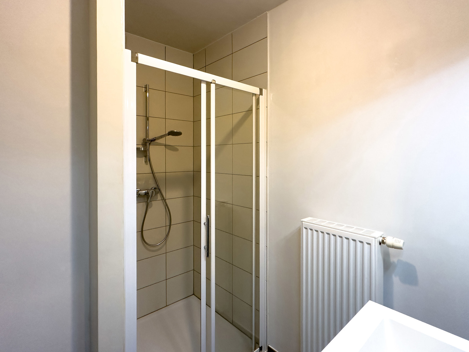 Twee volwaardige slaapkamers en een moderne badkamer met douche.