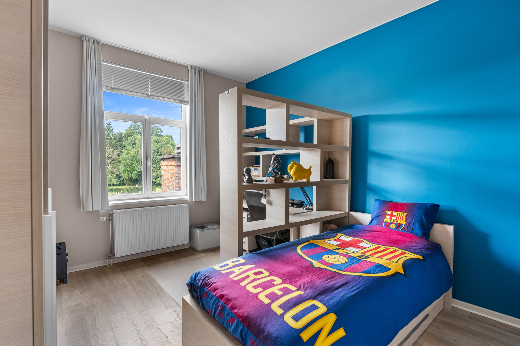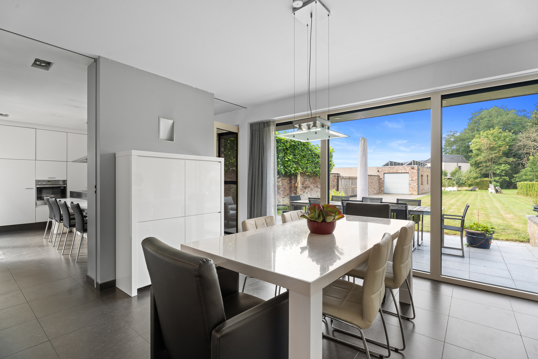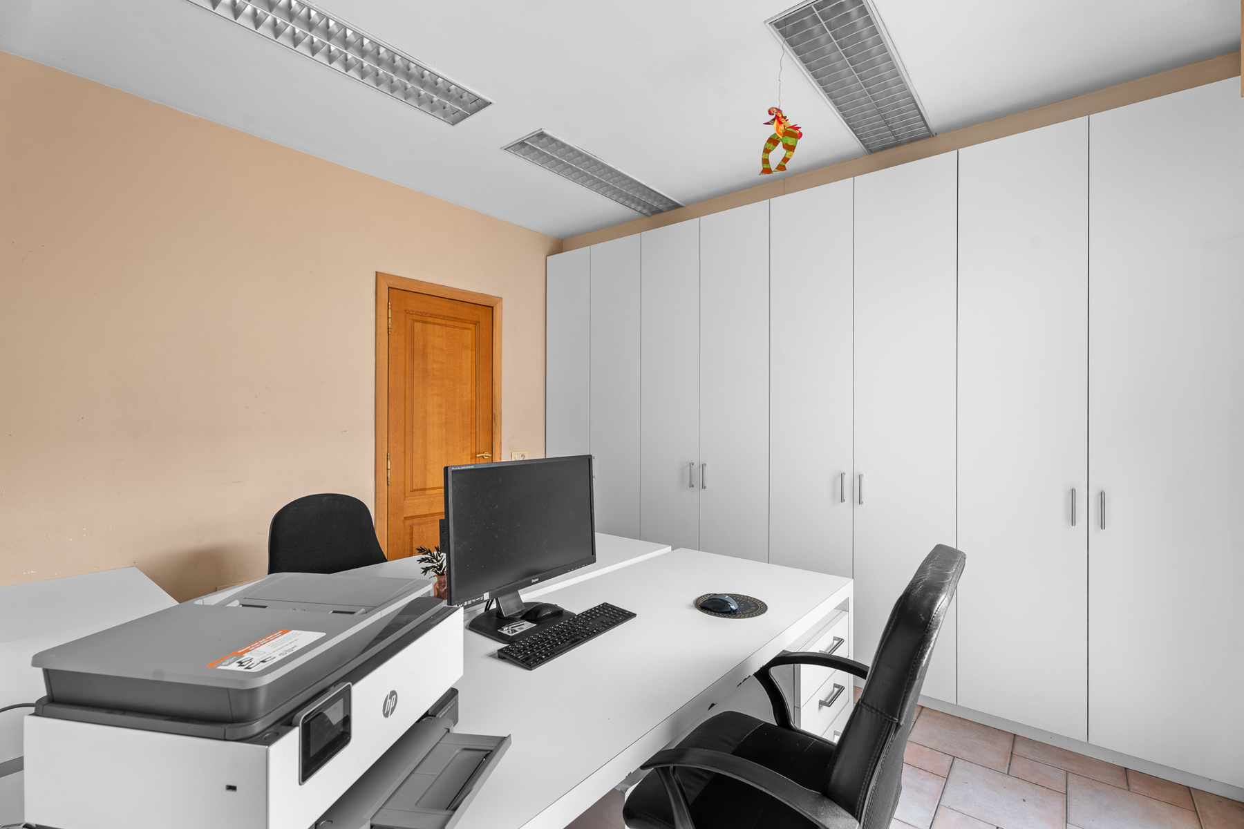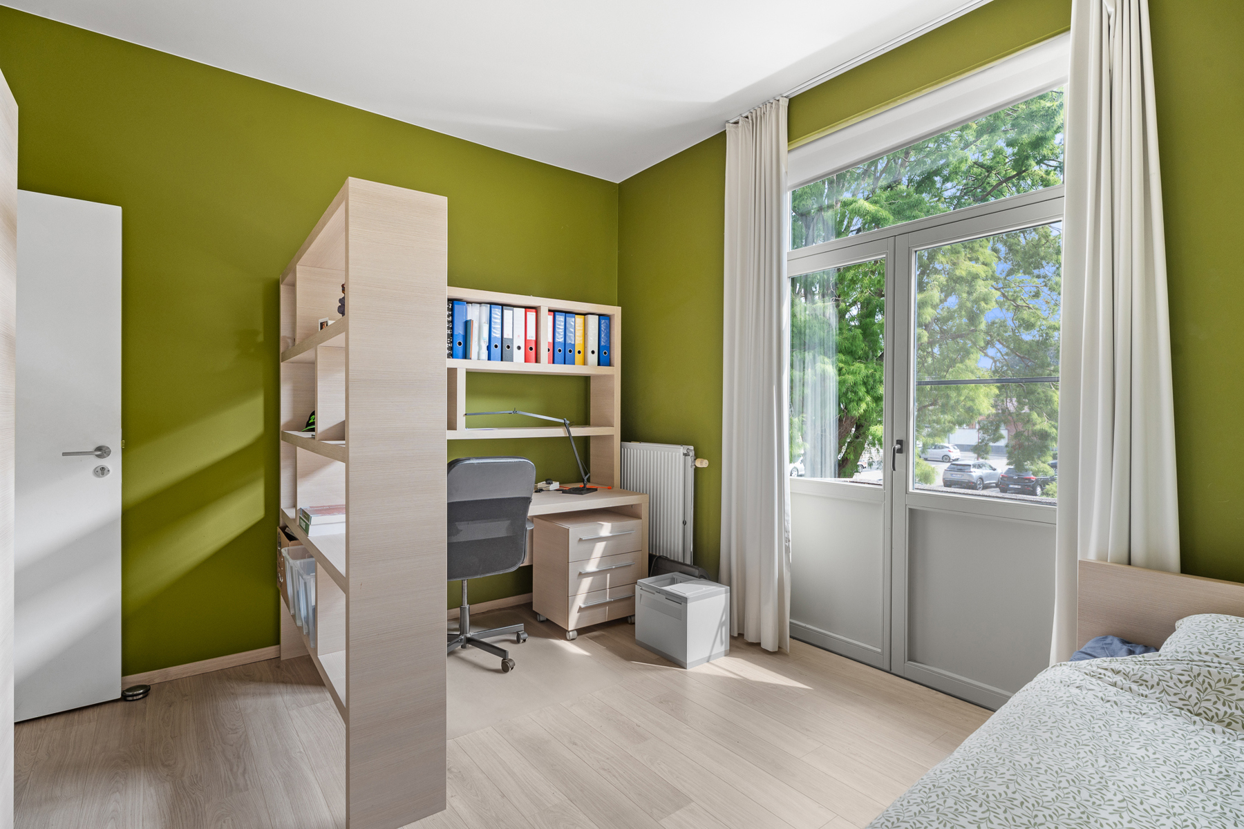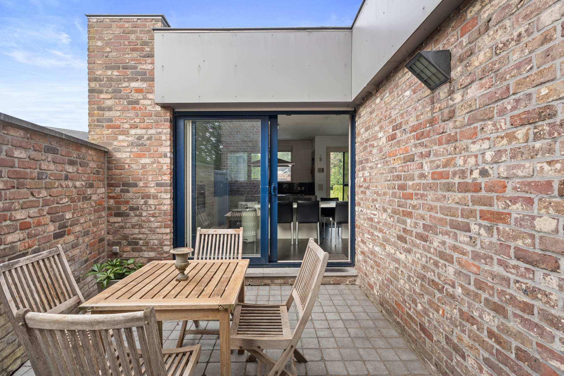 De woning is bijzonder geschikt voor wie wonen en werken wil combineren, dankzij de aparte bureauruimte die perfect kan dienen als praktijkruimte, kantoor of ontvangstruimte voor een vrij beroep. Of u nu arts, therapeut, architect of zelfstandige bent – hier vindt u de ideale balans tussen professioneel comfort en aangenaam wonen. Bij het betreden van de woning wordt u verwelkomd in een lichtrijke en verzorgde leefruimte die zich kenmerkt door zijn warme uitstraling en open karakter. De leefruimtes vloeien harmonieus in elkaar over en bieden uitzicht op de grote, zuidgerichte tuin – een echt pluspunt voor wie houdt van zon, rust en privacy. Hier geniet u van lange zomerdagen, gezellige familiemomenten en ontspanning in het groen. De woning beschikt over drie volwaardige slaapkamers, ideaal voor een gezin of wie extra ruimte zoekt voor logees, hobby’s of een dressing. De keuken is functioneel en praktisch ingericht, en biedt alle comfort voor het dagelijkse leven. Daarnaast is er een ruime badkamer, voldoende berging en een grote inpandige garage met plaats voor één of meerdere wagens, fietsen of extra stockage.