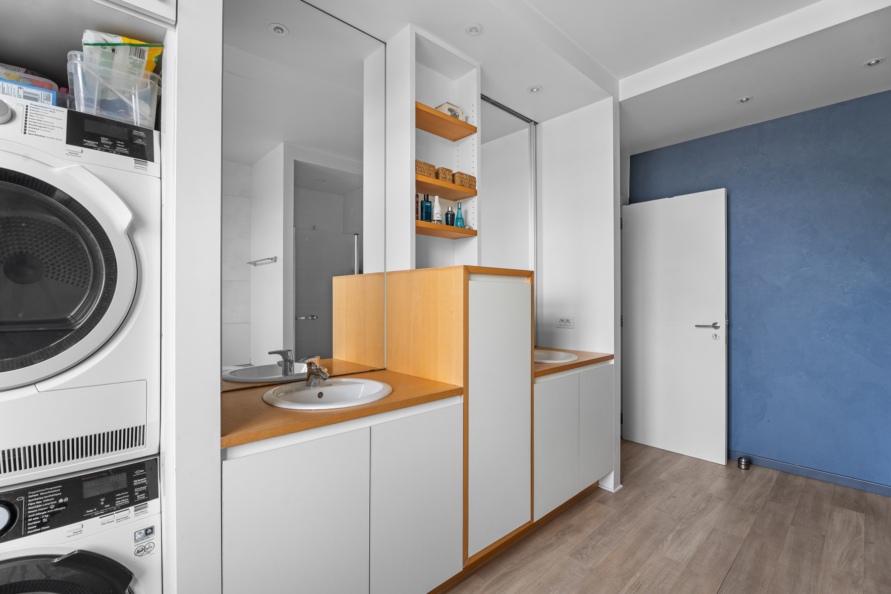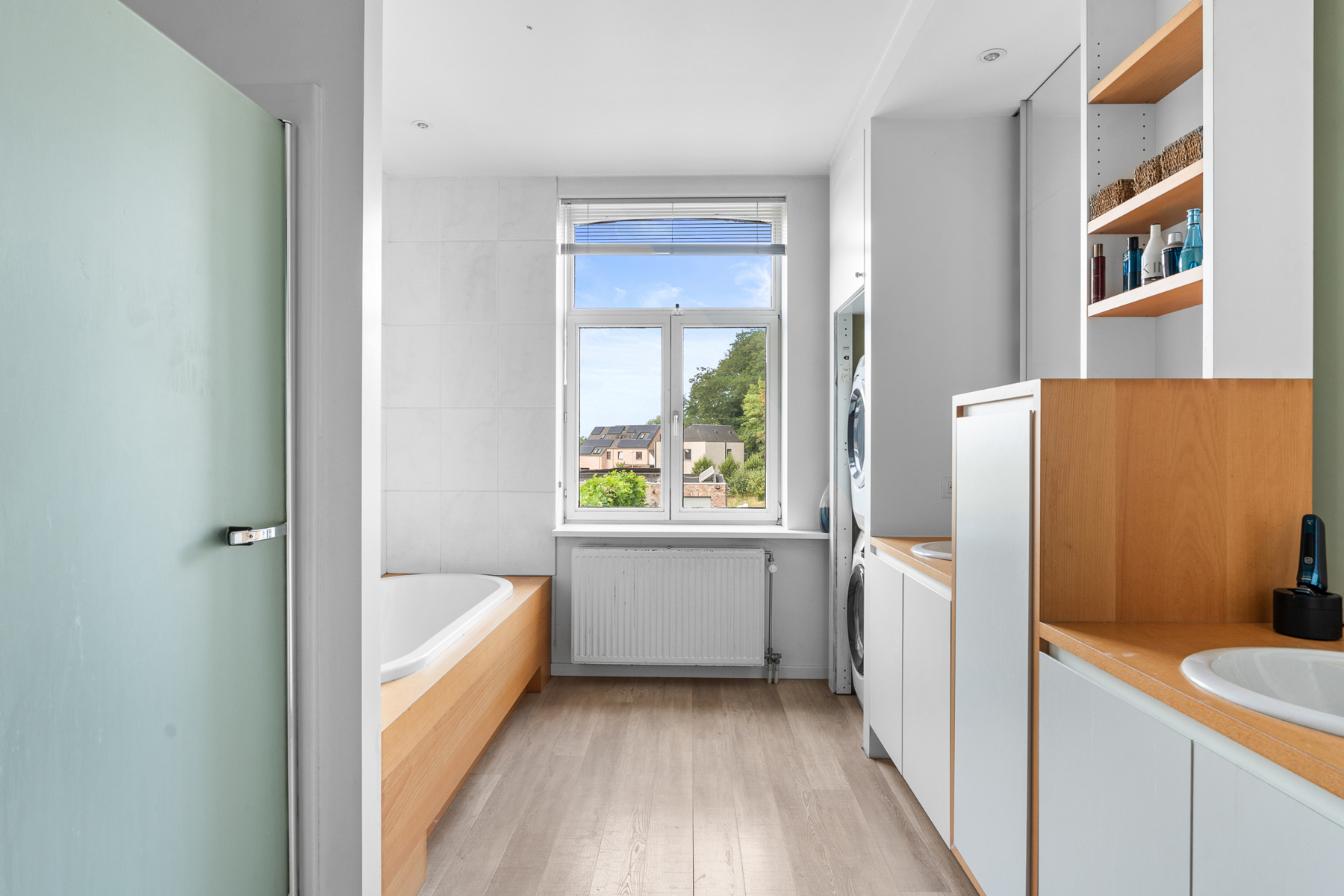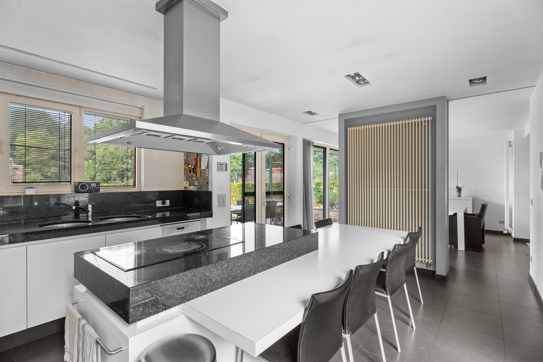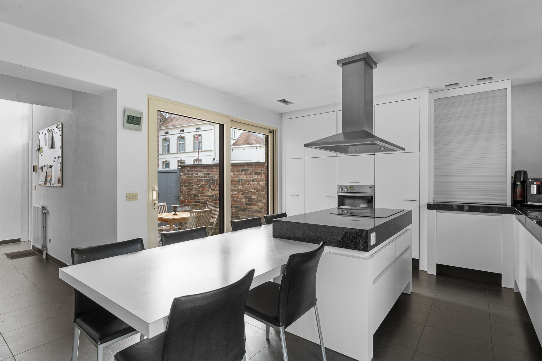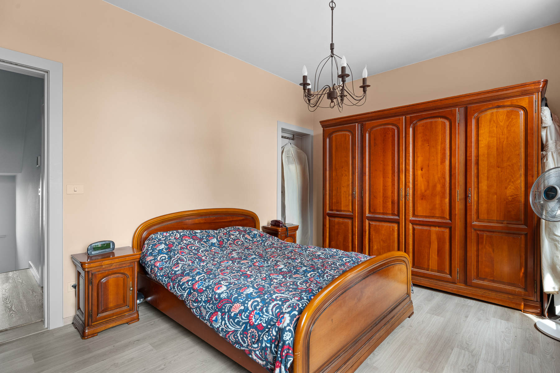 De woning is bijzonder geschikt voor wie wonen en werken wil combineren, dankzij de aparte bureauruimte die perfect kan dienen als praktijkruimte, kantoor of ontvangstruimte voor een vrij beroep. Of u nu arts, therapeut, architect of zelfstandige bent – hier vindt u de ideale balans tussen professioneel comfort en aangenaam wonen. Bij het betreden van de woning wordt u verwelkomd in een lichtrijke en verzorgde leefruimte die zich kenmerkt door zijn warme uitstraling en open karakter. De leefruimtes vloeien harmonieus in elkaar over en bieden uitzicht op de grote, zuidgerichte tuin – een echt pluspunt voor wie houdt van zon, rust en privacy. Hier geniet u van lange zomerdagen, gezellige familiemomenten en ontspanning in het groen. De woning beschikt over drie volwaardige slaapkamers, ideaal voor een gezin of wie extra ruimte zoekt voor logees, hobby’s of een dressing. De keuken is functioneel en praktisch ingericht, en biedt alle comfort voor het dagelijkse leven. Daarnaast is er een ruime badkamer, voldoende berging en een grote inpandige garage met plaats voor één of meerdere wagens, fietsen of extra stockage.