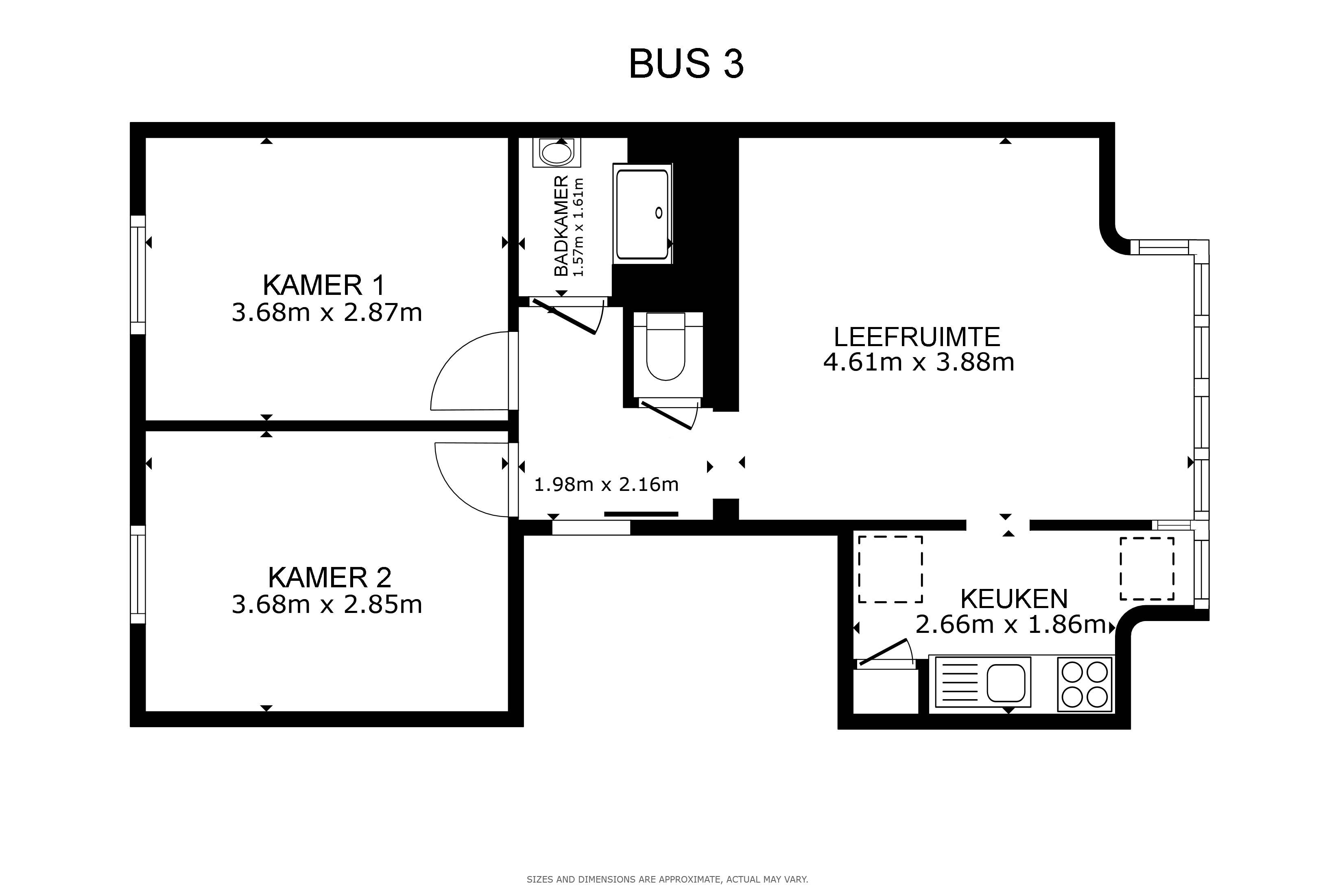 Eerste & Tweede verdieping: 2-slaapkamer appartementen. Beide verdiepingen beschikken over een identiek, ruimtelijk ingedeeld appartement. U vindt hier een leefruimte, een ingerichte keuken, een badkamer en twee volwaardige slaapkamers. Dankzij de grote raampartijen genieten deze appartementen van veel natuurlijk lichtinval.