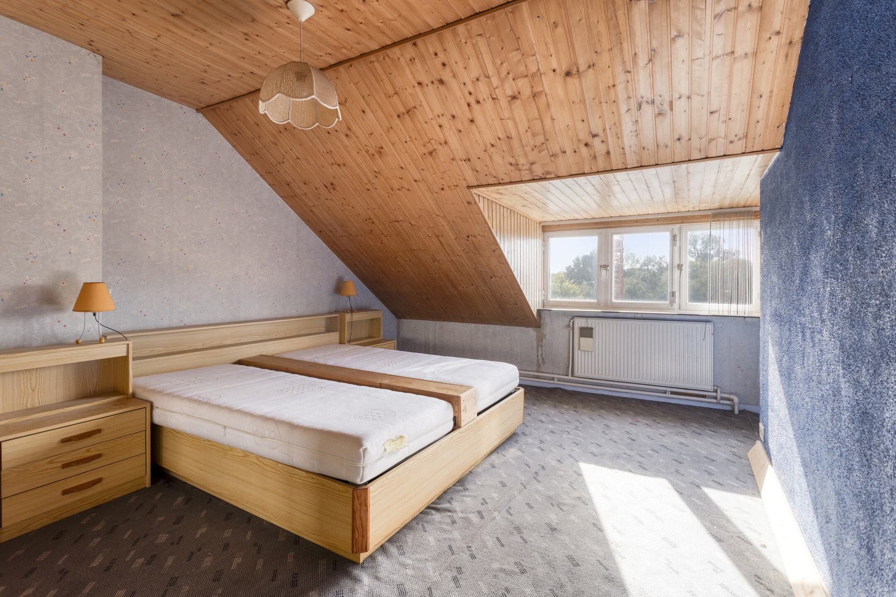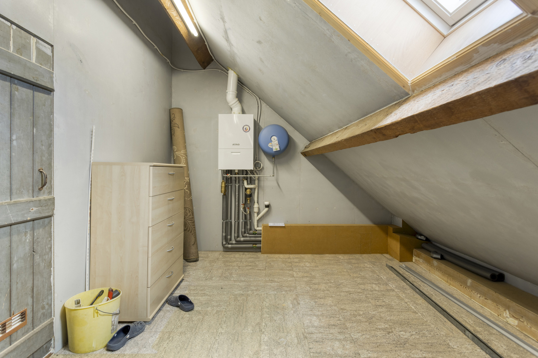 Op de eerste verdieping wachten drie slaapkamers en een badkamer. De zolder biedt een vierde, ruime slaapkamer en extra bergruimte. De woning is volledig onderkelderd met een garage van 31 m² en een wasruimte van 12 m² met rechtstreekse toegang tot de tuin: ideaal voor fietsen, hobby’s of extra opslag.