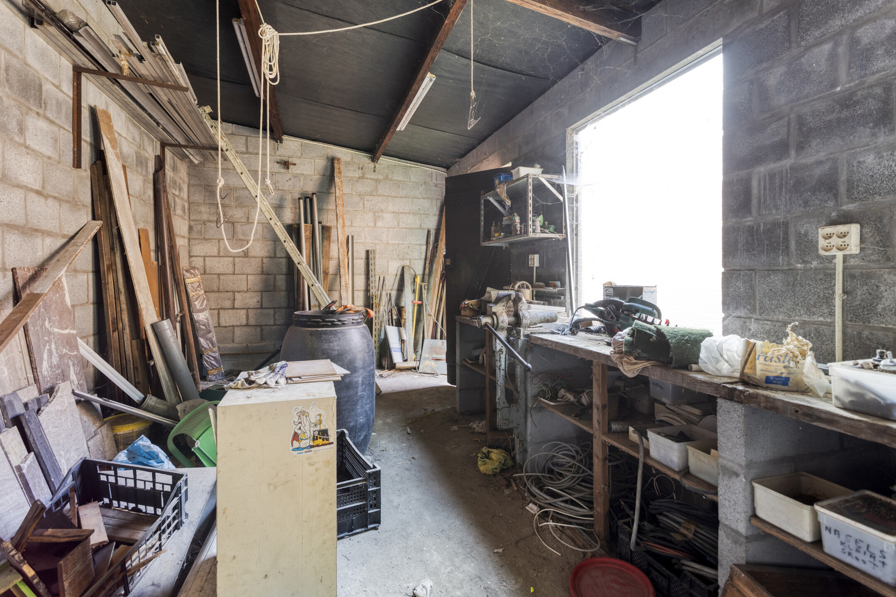 Zonnige tuin met terras voor ontspanning in alle seizoenen. Berging of werkplaats geeft ruimte voor fietsen, hobby’s en opslag.