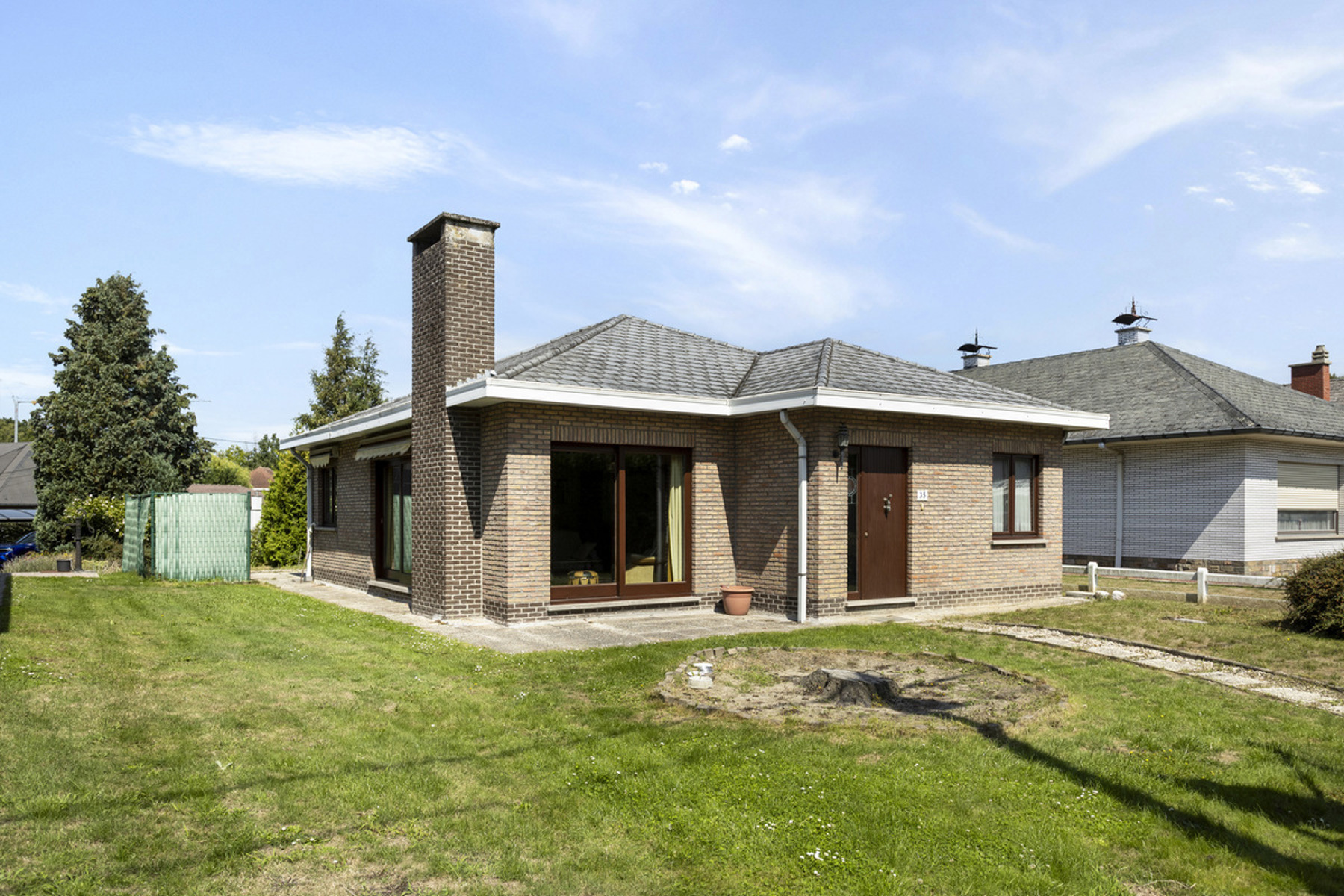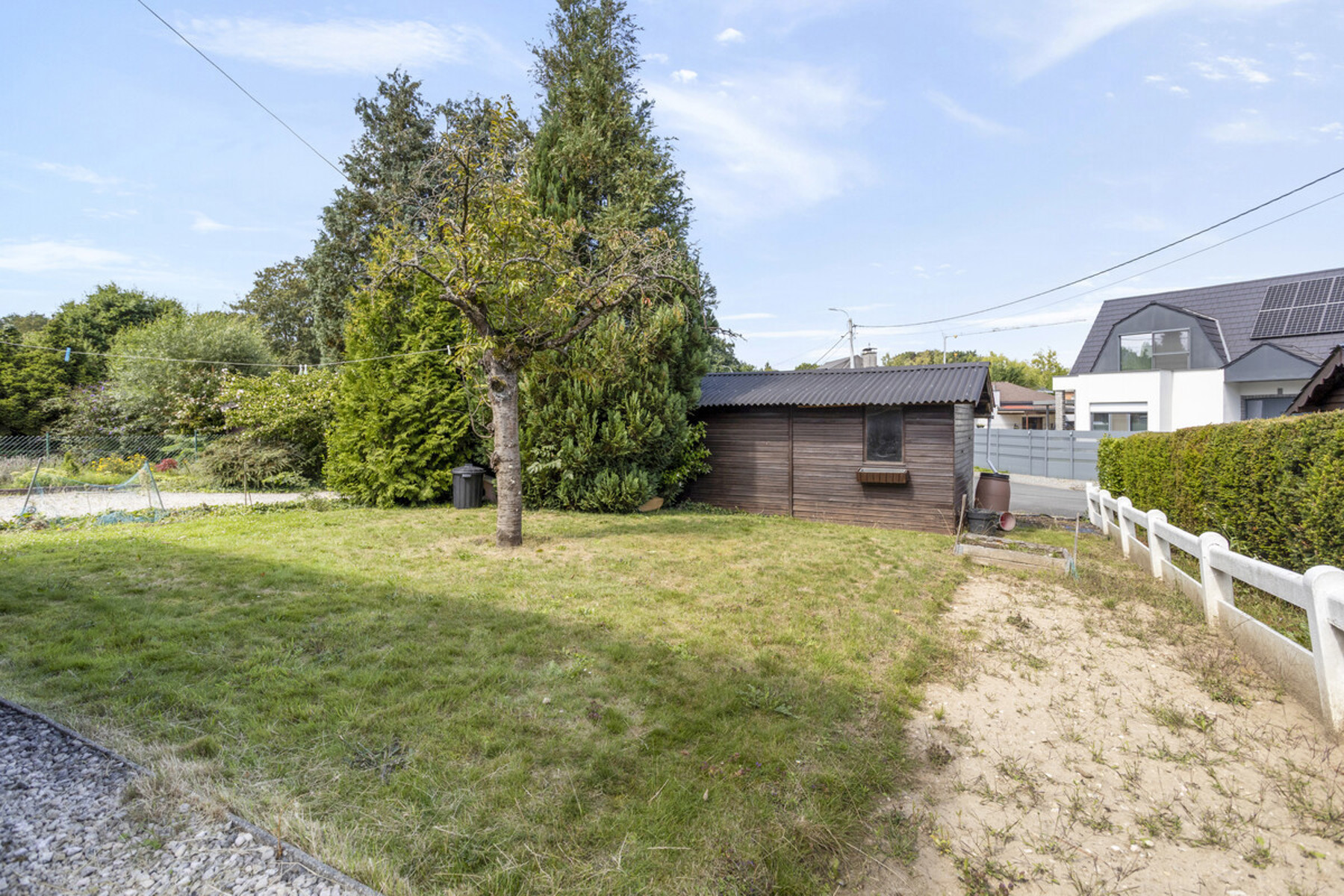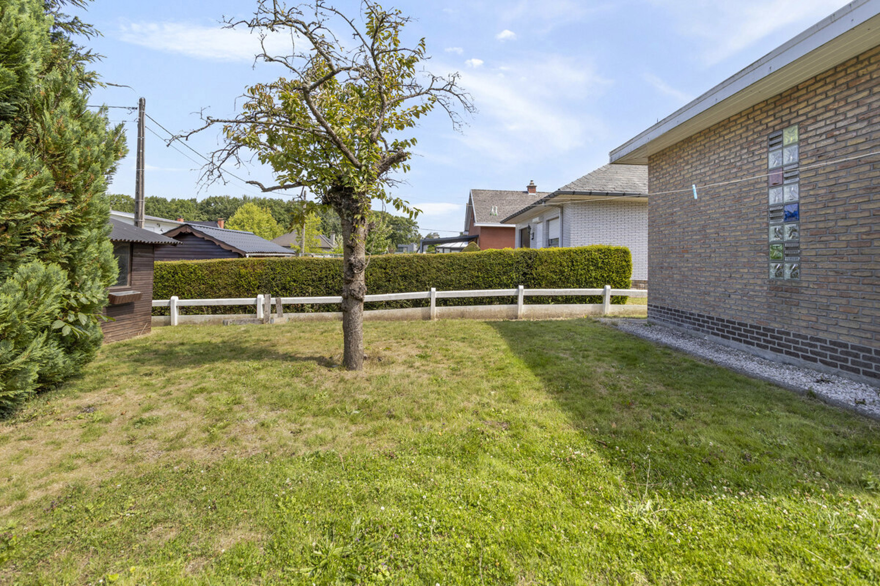 De achtertuin is een rustige plek om te ontspannen en vormt een natuurlijke verlenging van de leefzones. Met achtertoegang en geïntegreerde garage regel je vlot dagelijkse logistiek, stalling en klusruimte.