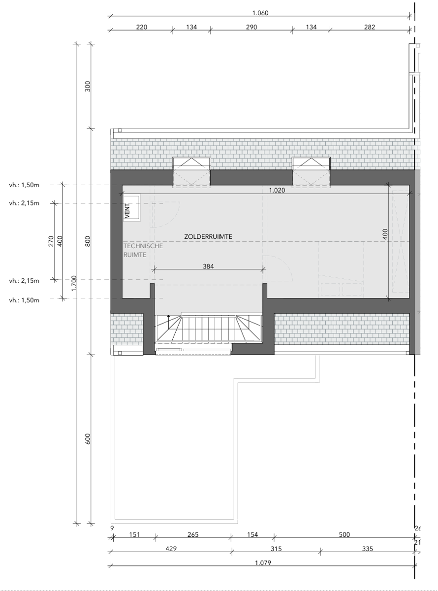 Ook de buitenzijde is afgewerkt met hoogwaardige materialen en combineren ingetogen grijstinten en bronskleurig aluminium schrijnwerk voor een moderne, architecturale look.