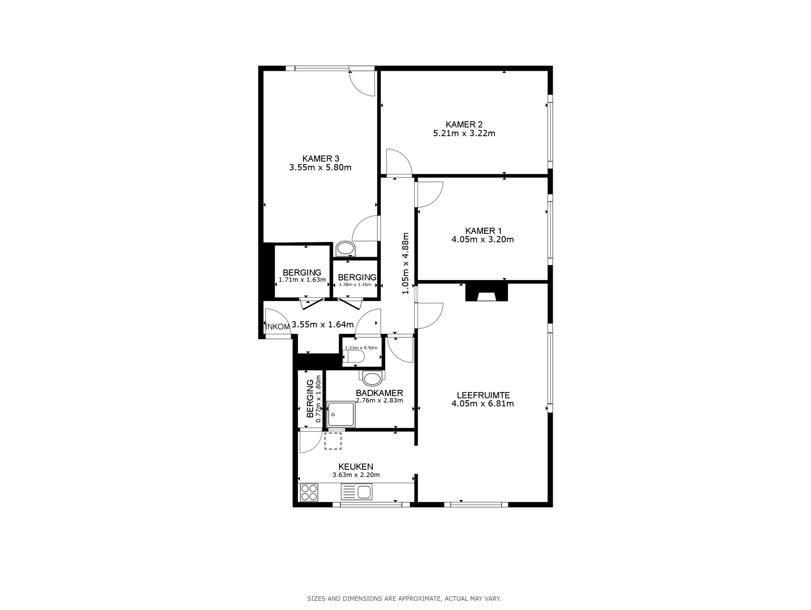 Drie volwaardige slaapkamers + veel bergruimte (2 bergingen + koele berging)