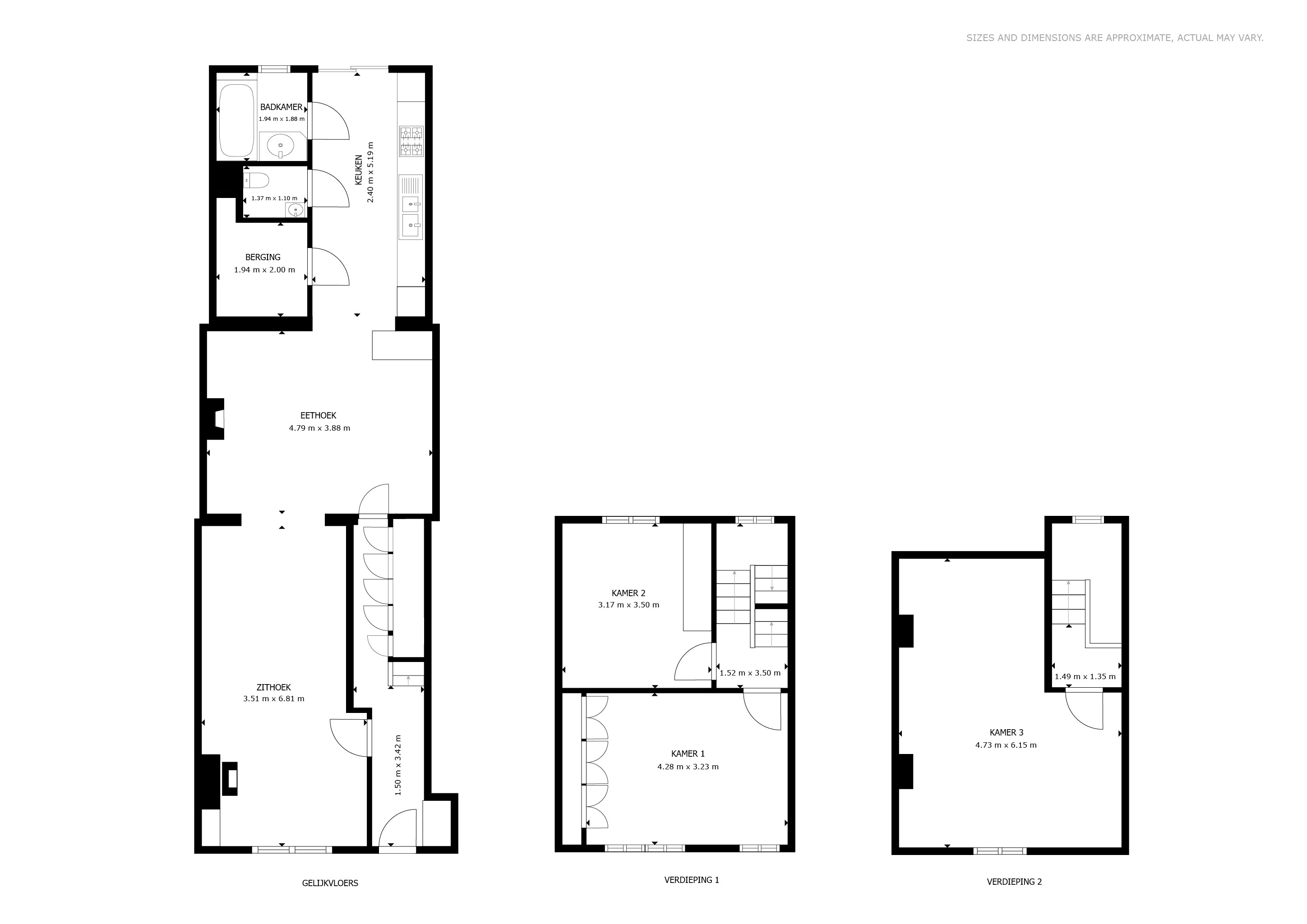 Op de eerste verdieping zijn er twee ruime slaapkamers. De tweede verdieping biedt een grote kamer met mogelijkheden als master bedroom, bureau of studio.