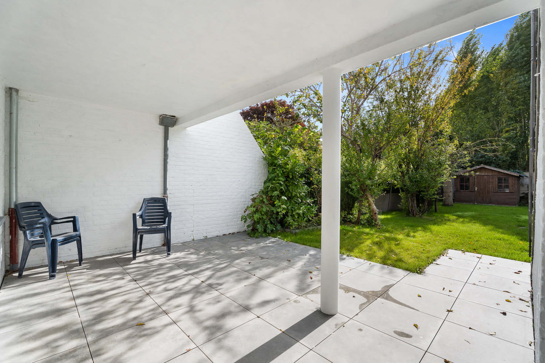 Buiten geniet je op het gelijkvloers van een overdekt terras en een zonnige, zuidgerichte tuin met handige tuinberging.