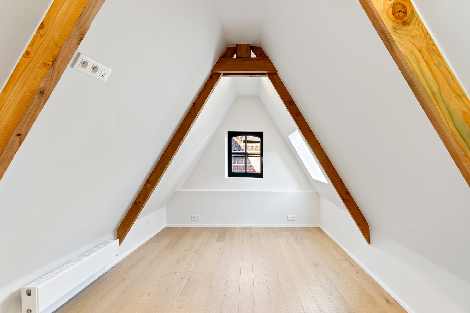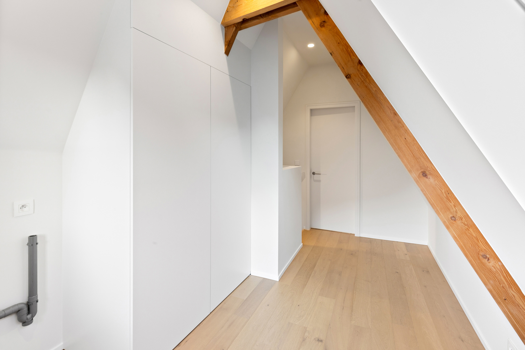 Op de tweede verdieping bevinden zich een derde slaapkamer en een extra ruimte met aansluitingen voor wasmachine en condensdroogkast.