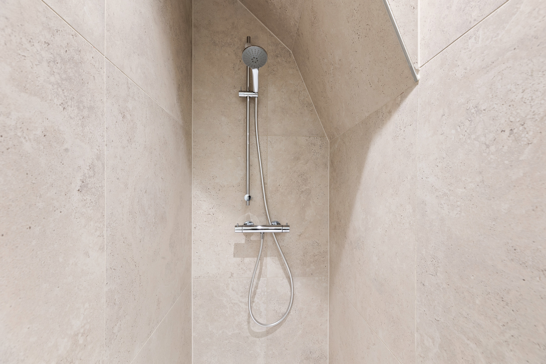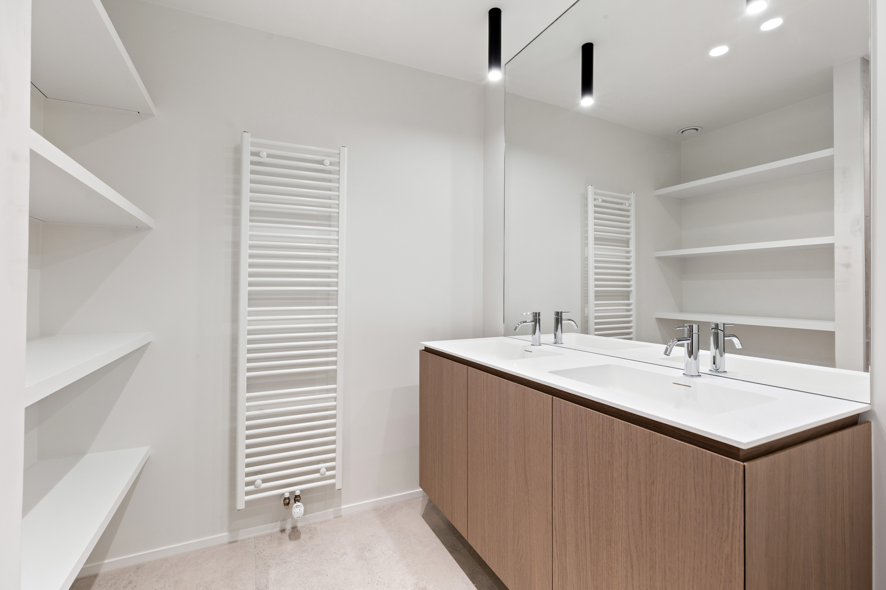 De eerste verdieping omvat twee ruime slaapkamers en een luxueuze badkamer met inloopdouche en dubbele wastafel.