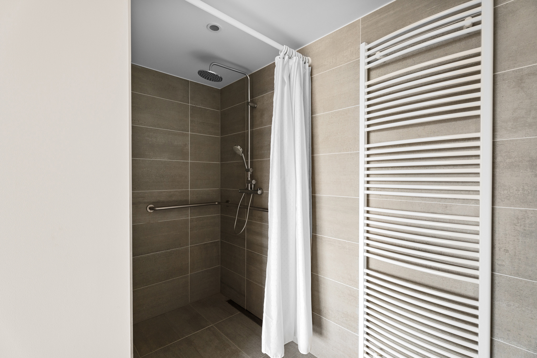 De flat bestaat uit een lichtrijke leefruimte met een mooie ingerichte keuken en een ruime slaapkamer die rechtstreeks aansluit op de badkamer. Deze is uitgerust met een inloopdouche en lavabo en volledig afgestemd op uw comfort. Alles werd ontworpen met oog voor gebruiksgemak en toegankelijkheid, ook voor rolstoelgebruikers.