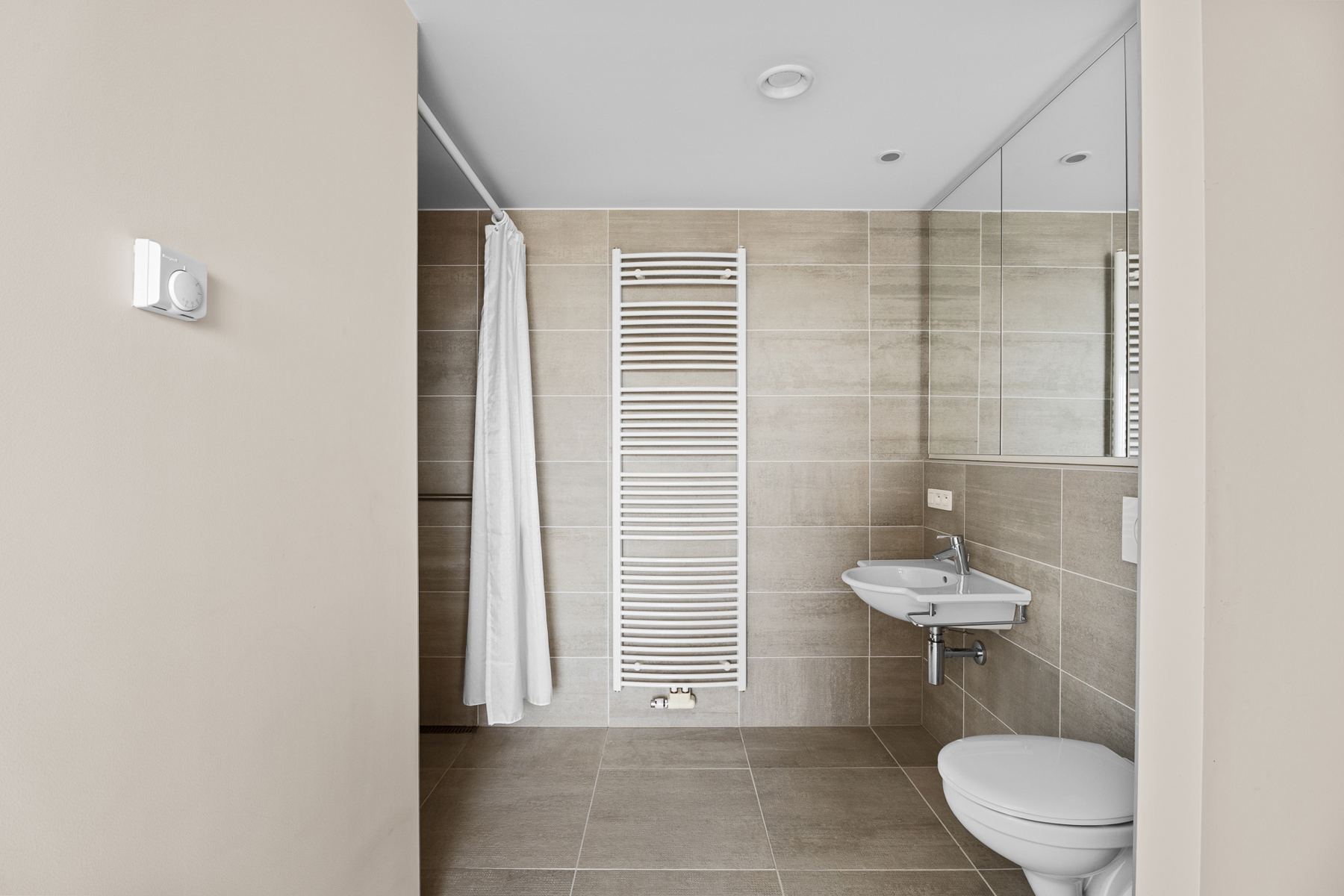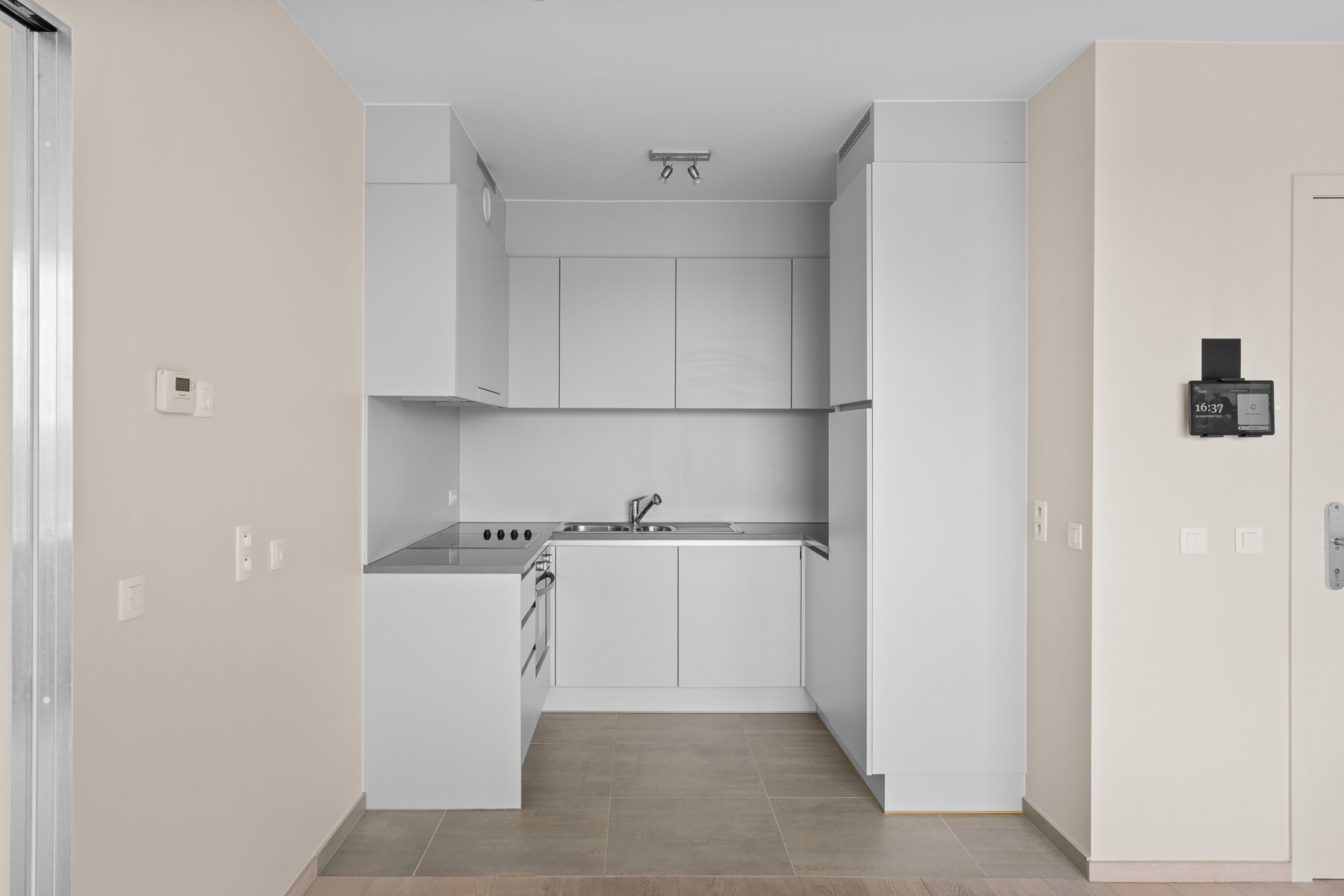 Binnenin vindt u een lichtrijke leefruimte met een mooie ingerichte keuken en een ruime slaapkamer. De badkamer sluit rechtstreeks aan bij de slaapkamer en is voorzien van een moderne inloopdouche en lavabo. Het appartement is rolstoelvriendelijk en volledig ingericht voor maximaal wooncomfort.