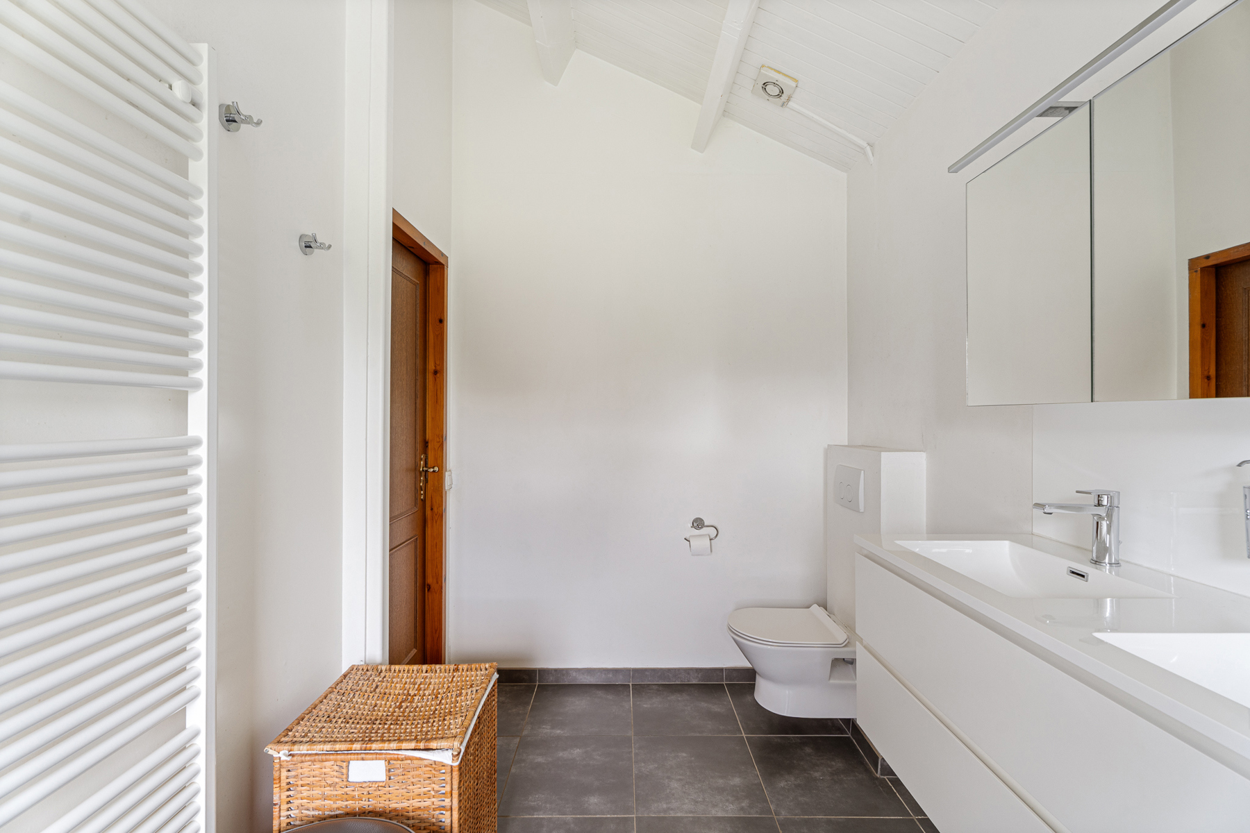 De prachtige veranda met elektrische zonnewering dompelt de leefruimte in natuurlijk licht. De open vide tot in de nok geeft een magnifiek ruimtelijk gevoel. Twee slaapkamers en de woonkamer stralen dankzij hoge plafonds en royale raampartij.