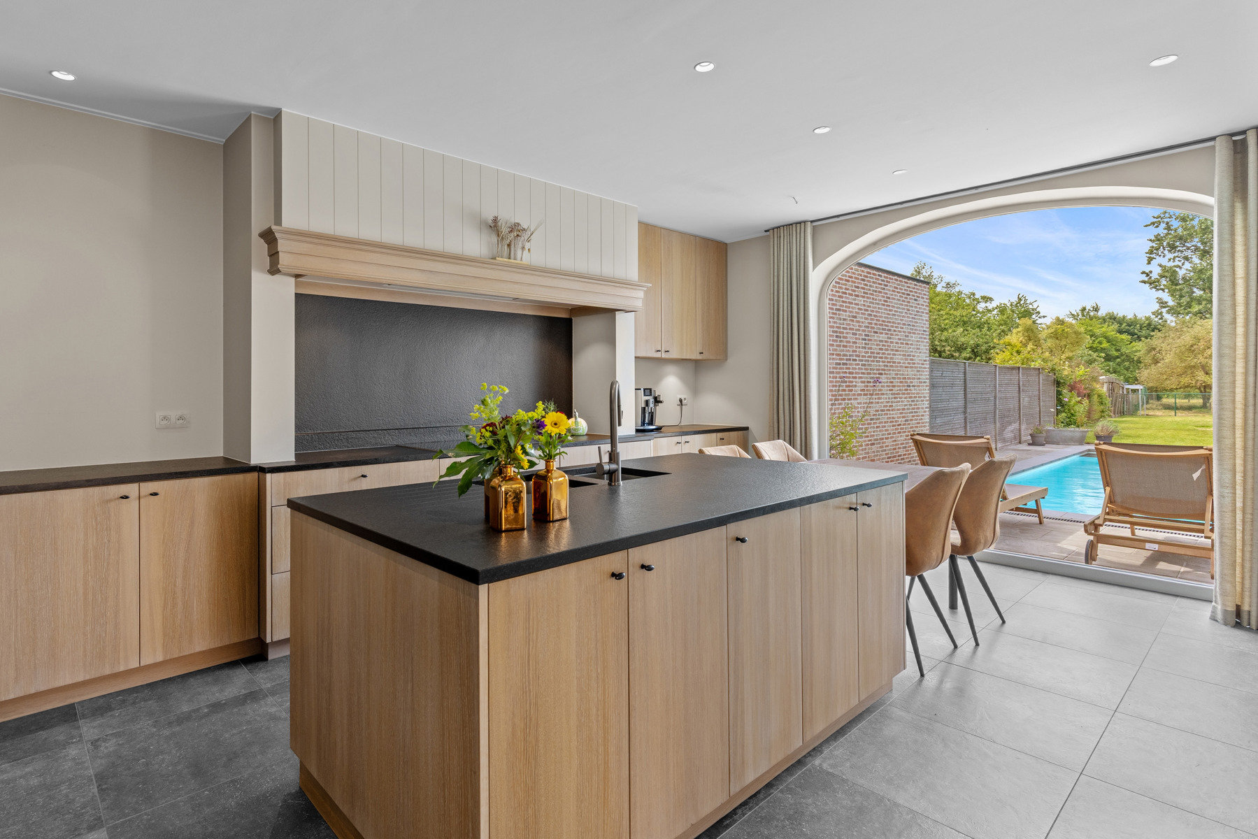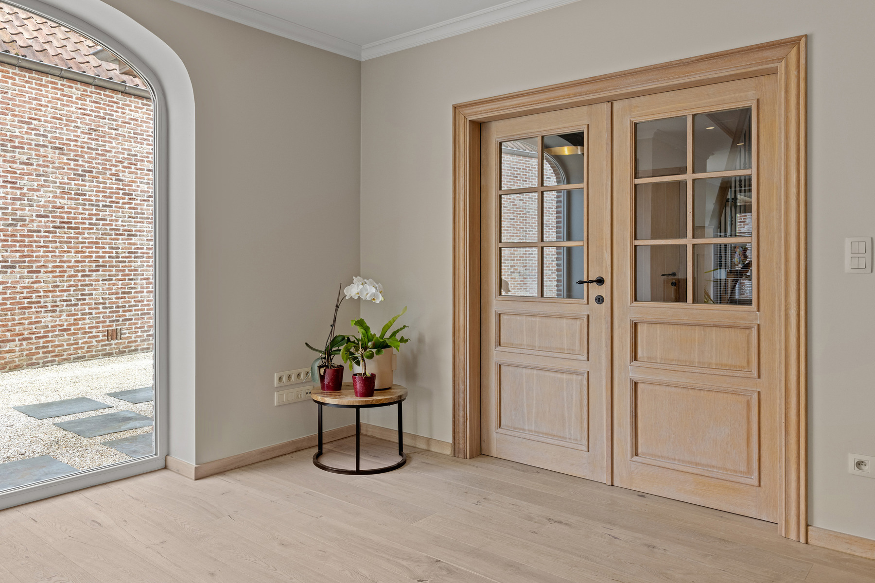 De woning straalt een harmonieuze mix uit van landelijke charme en moderne elegantie. Authentieke materialen zoals baksteen, hout en natuursteen worden gecombineerd met strakke lijnen en hoogwaardige afwerking. Grote raampartijen zorgen voor overvloedig daglicht en een naadloze connectie tussen binnen en buiten. De sfeer is warm, stijlvol en tegelijk hedendaags — een tijdloos interieur dat rust en klasse uitademt