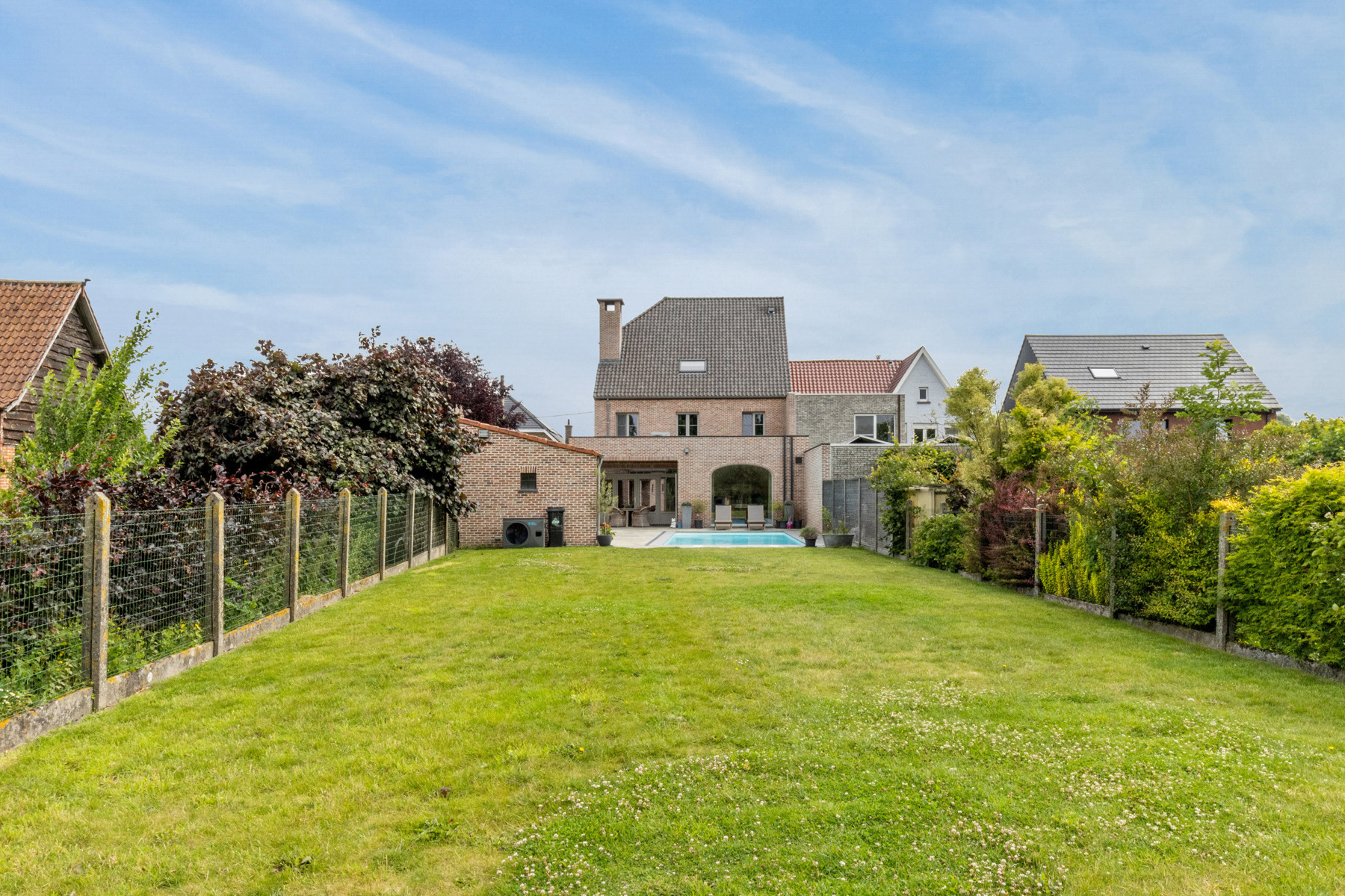 De zuidwestgerichte tuin met zonneterras, verwarmd zwembad en sfeervolle boomgaard vormt een uitzonderlijke buitenruimte waar rust en ontspanning centraal staan. Alle technieken zijn discreet weggewerkt in het poolhouse.