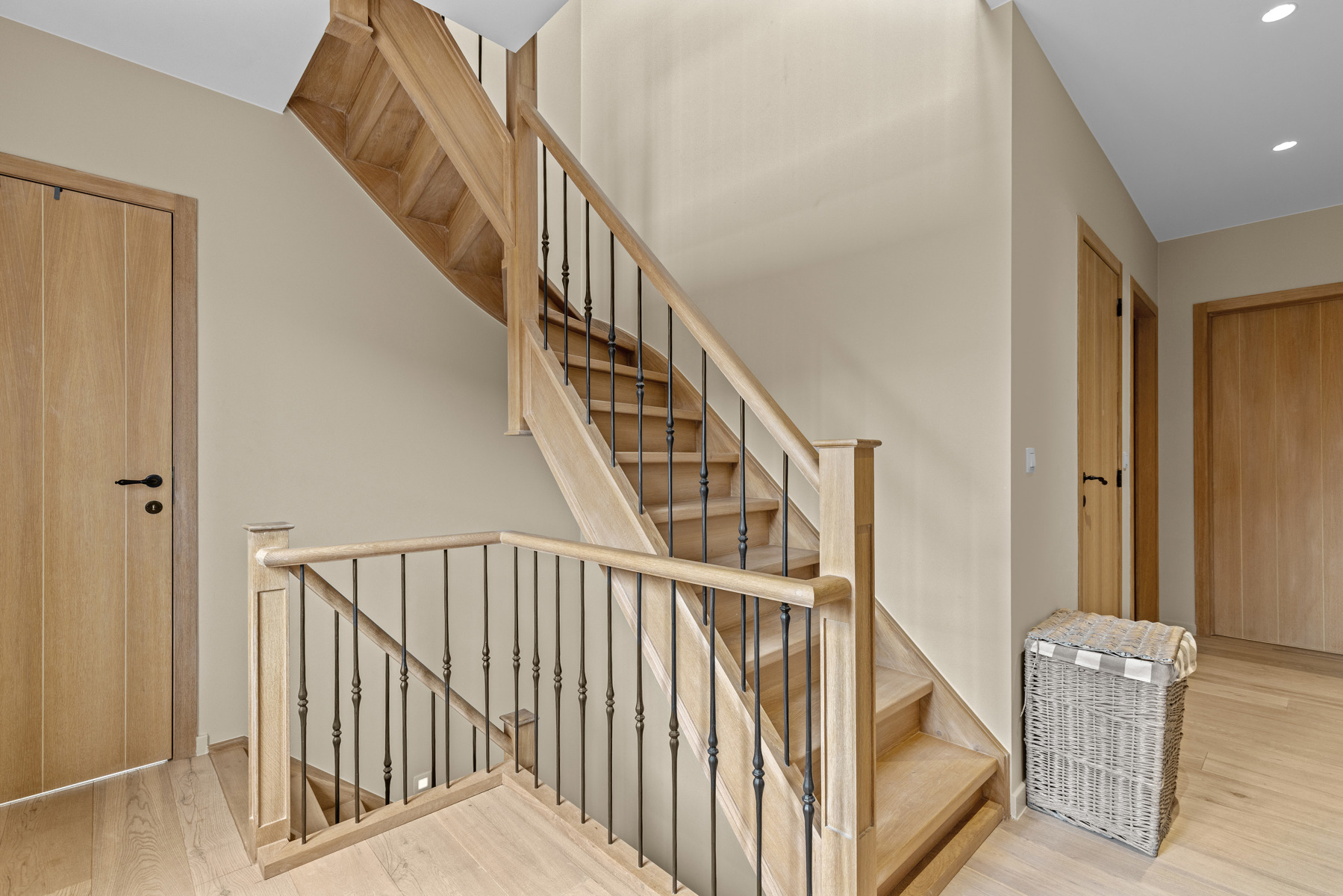 Op de eerste verdieping bevinden zich drie ruime slaapkamers en twee stijlvolle badkamers. De zolderverdieping biedt plaats voor een extra slaapkamer, bureau of hobbyruimte, met daarnaast nog een praktische opbergzolder.