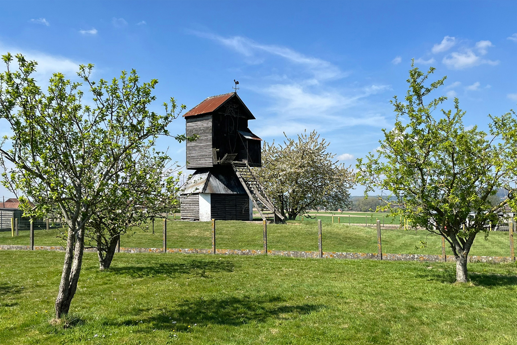 Beschermde houten molen – een zeldzaam stukje erfgoed dat karakter en geschiedenis toevoegt aan het perceel.