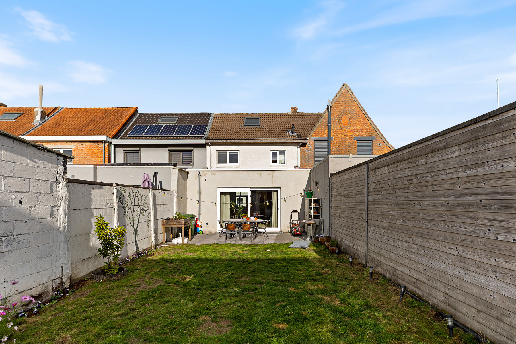 Gezellige tuin met terras en achteraan is er een handig poortje, ideaal voor fietsen of vlotte doorgang.