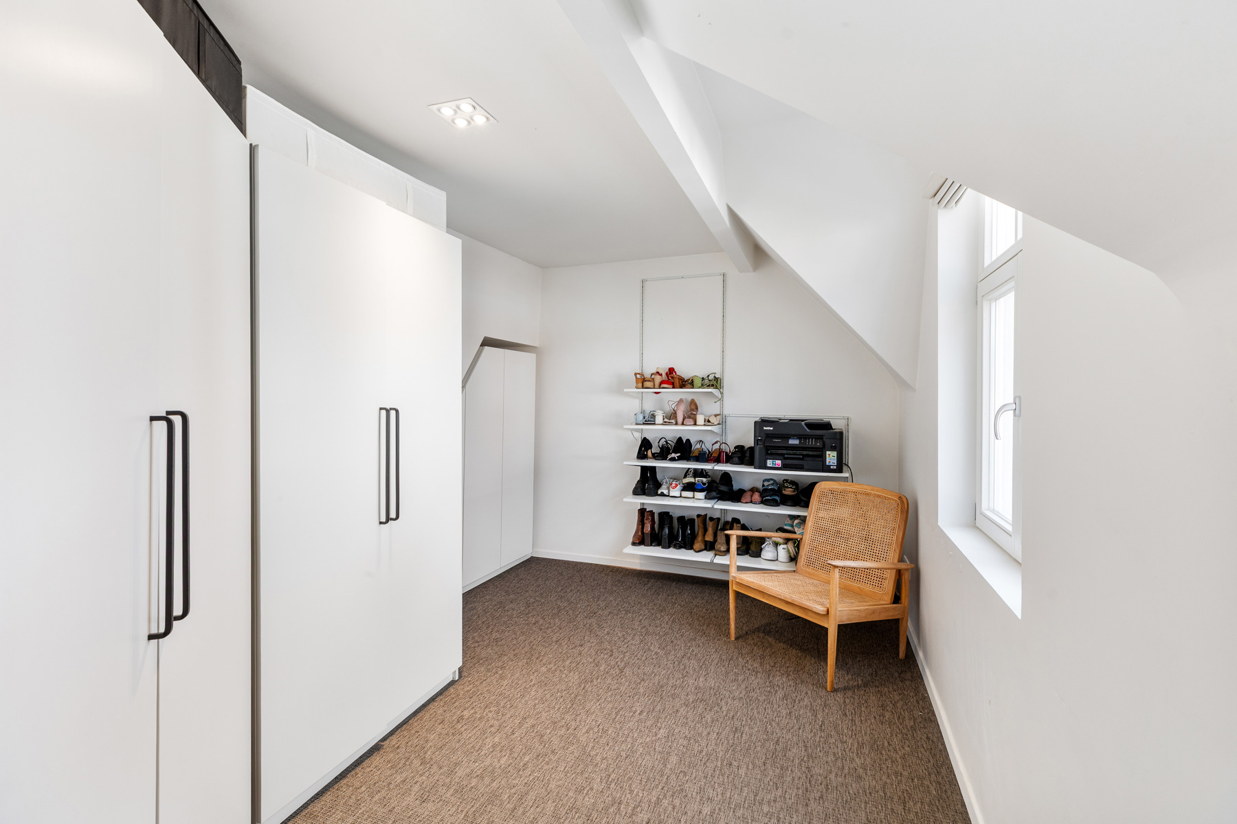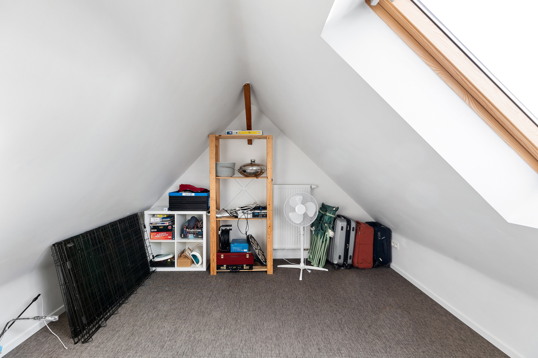 Via de vaste trap bereik je de ingerichte zolderruimte, perfect als derde slaapkamer, bureau of hobbyruimte.