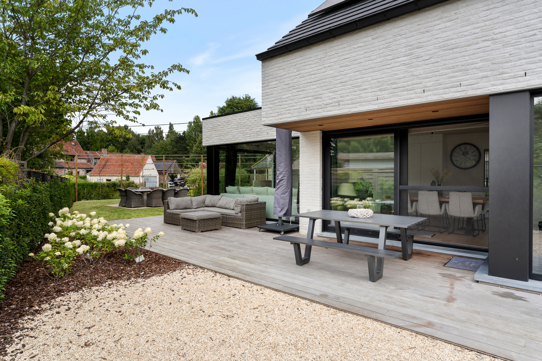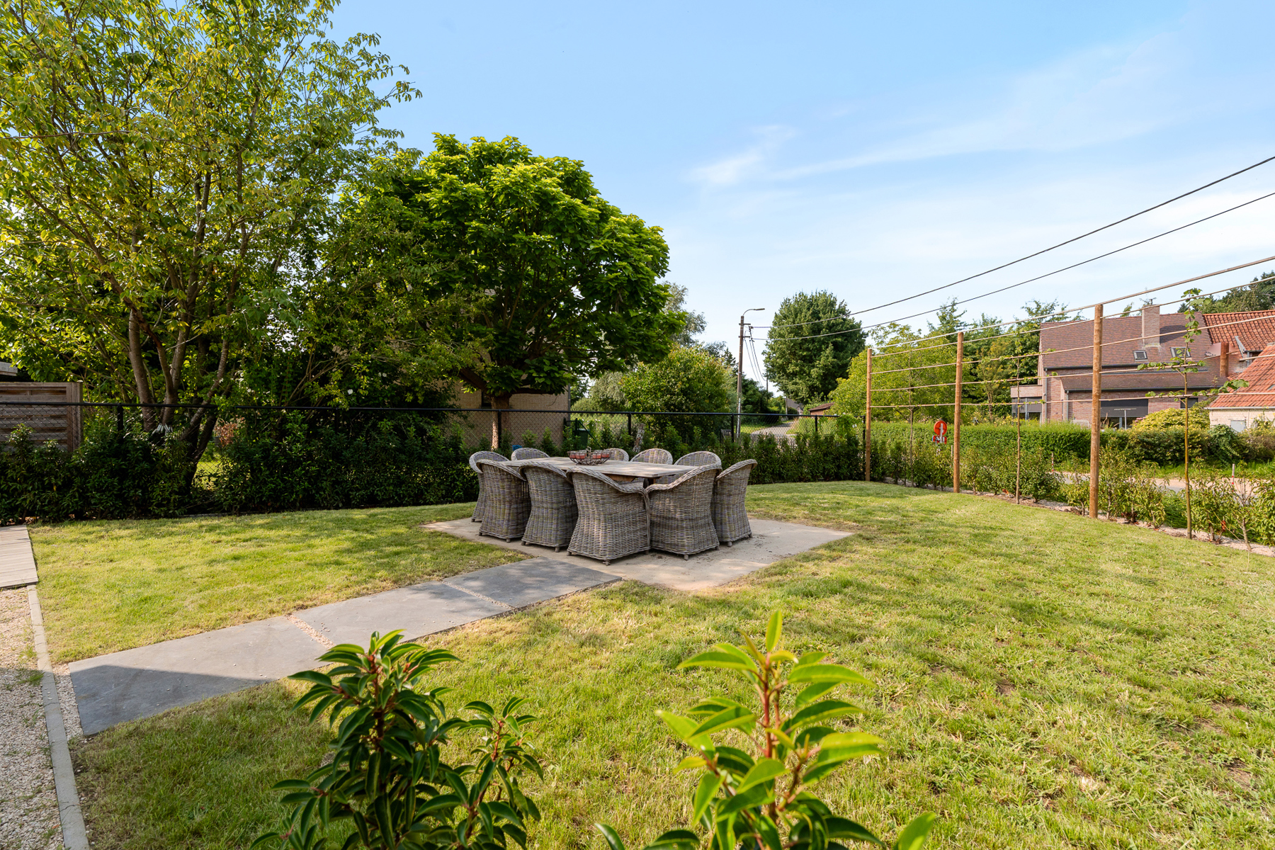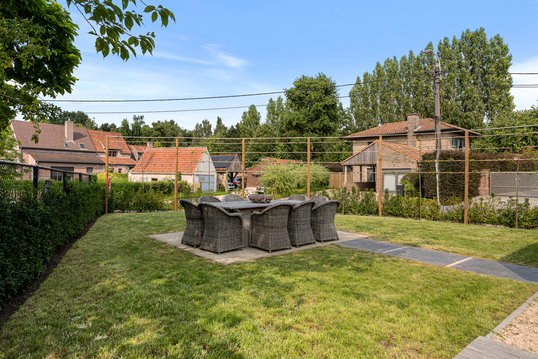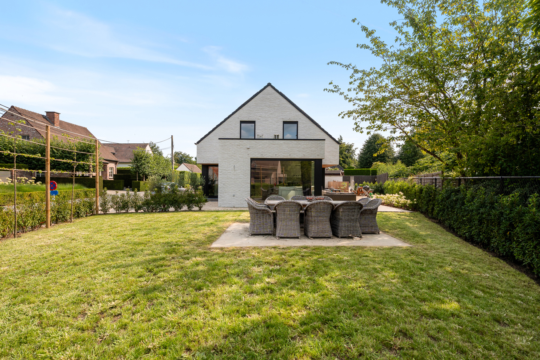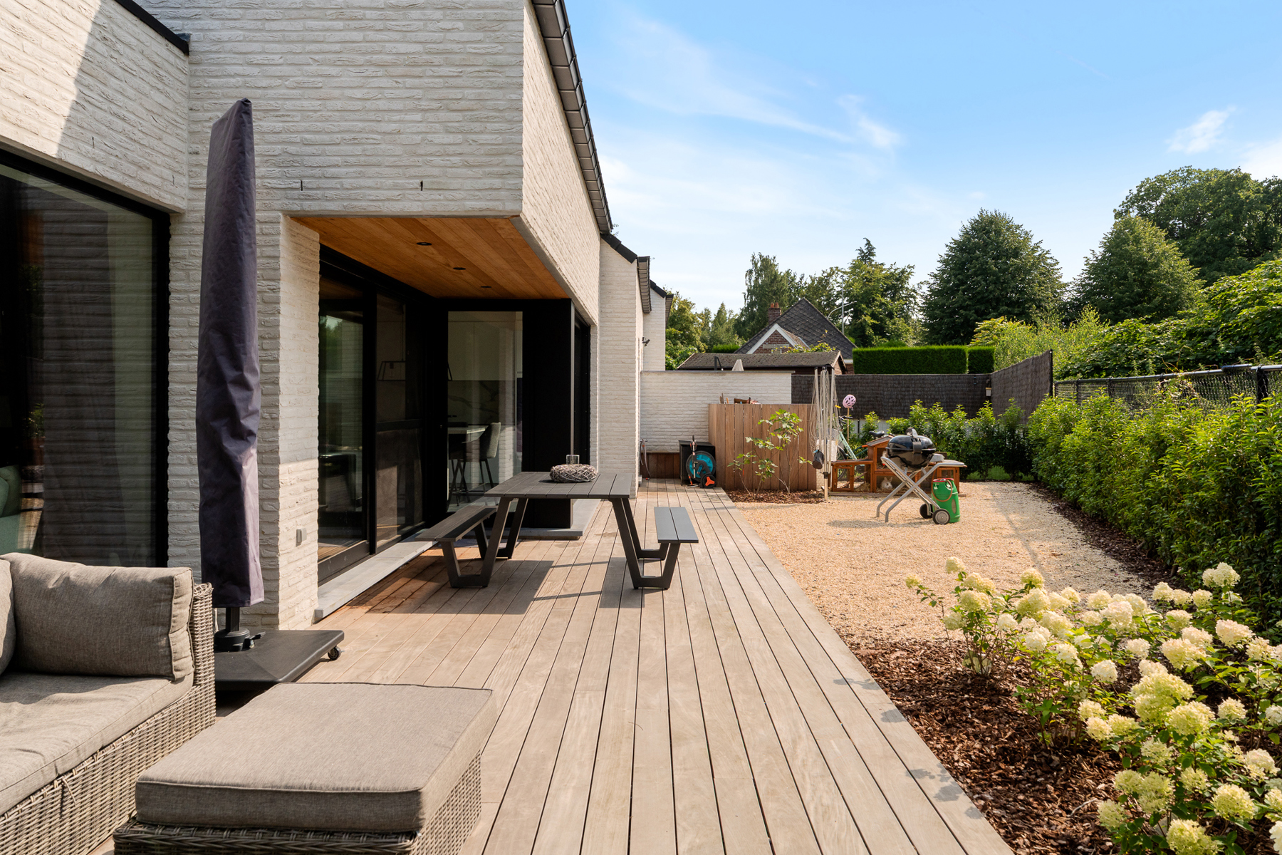 De tuin werd volledig aangelegd en het perceel biedt voldoende parkeermogelijkheden. Met een oost tot west oriëntatie geniet je doorheen de dag van zon en schaduw desgewenst. Ruim, deels overdekt, terras werd aangelegd en is toegankelijk via woonkamer en keuken. Dient enkel aangepast te worden naargelang eigen wensen en noden.