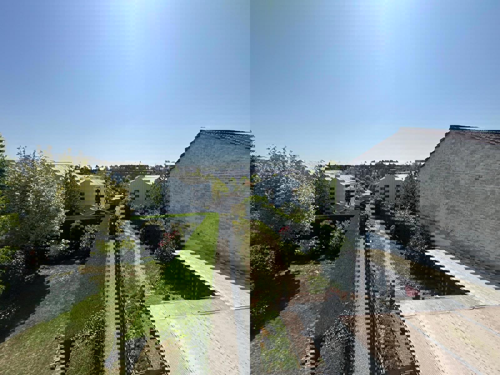 Op begane grond beschikken we over een zeer ruim appartement (149m2) met veranda en tuin met aparte studio/polyvalente ruimte (38m2)