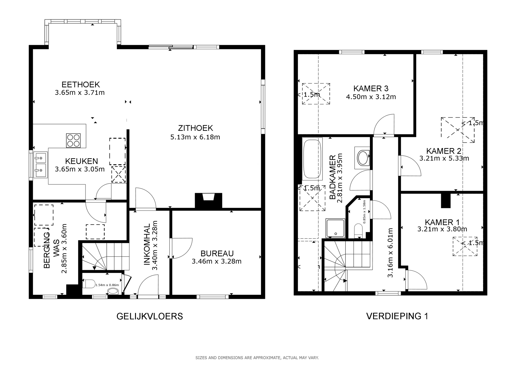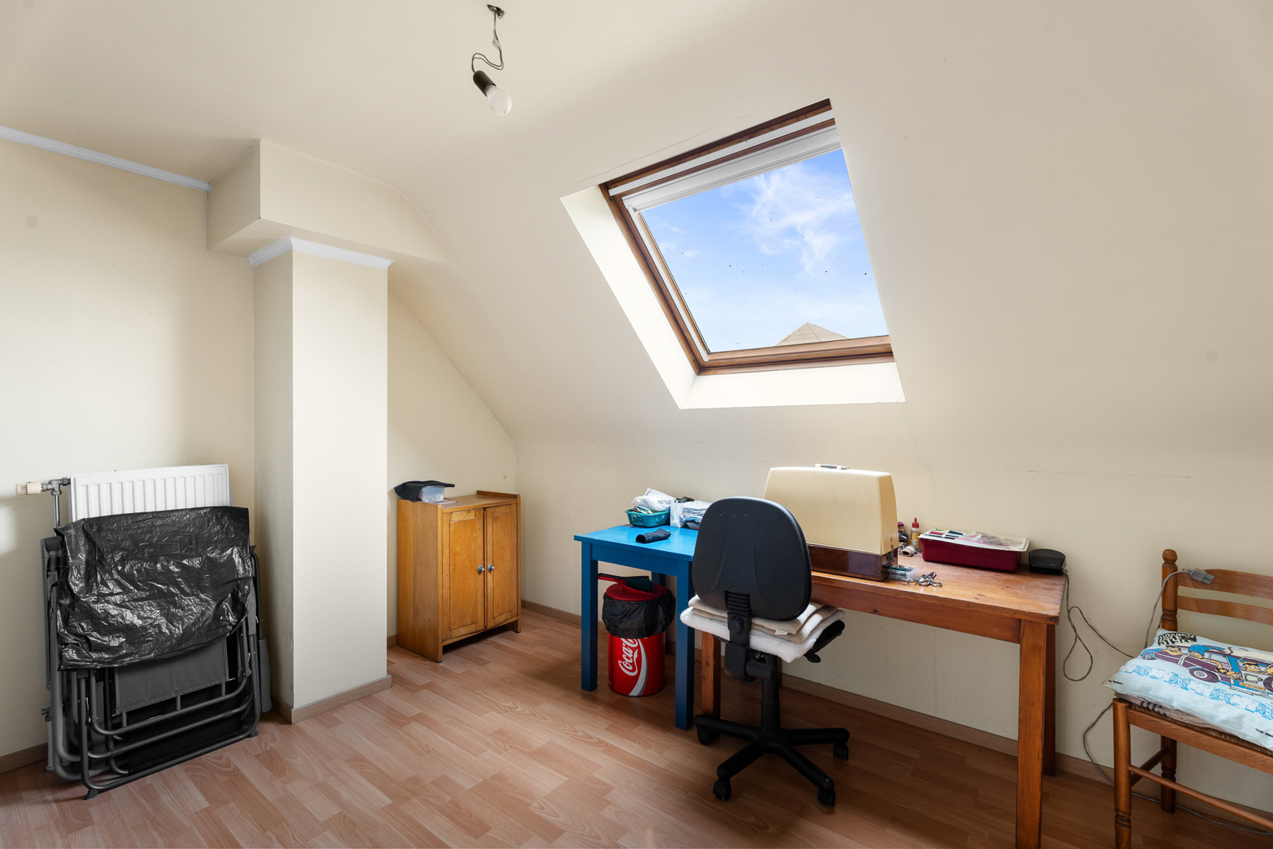 Op het gelijkvloers vindt u verder een aparte bureauruimte – perfect voor thuiswerk, hobby’s of als extra slaapkamer. Op de eerste verdieping bevinden zich drie ruime slaapkamers en een volledig ingerichte badkamer. De woning beschikt bovendien over een handige stapelzolder.