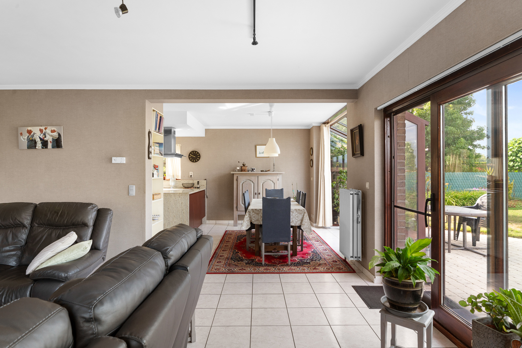 Lichtrijke leefruimte met halfopen keuken
