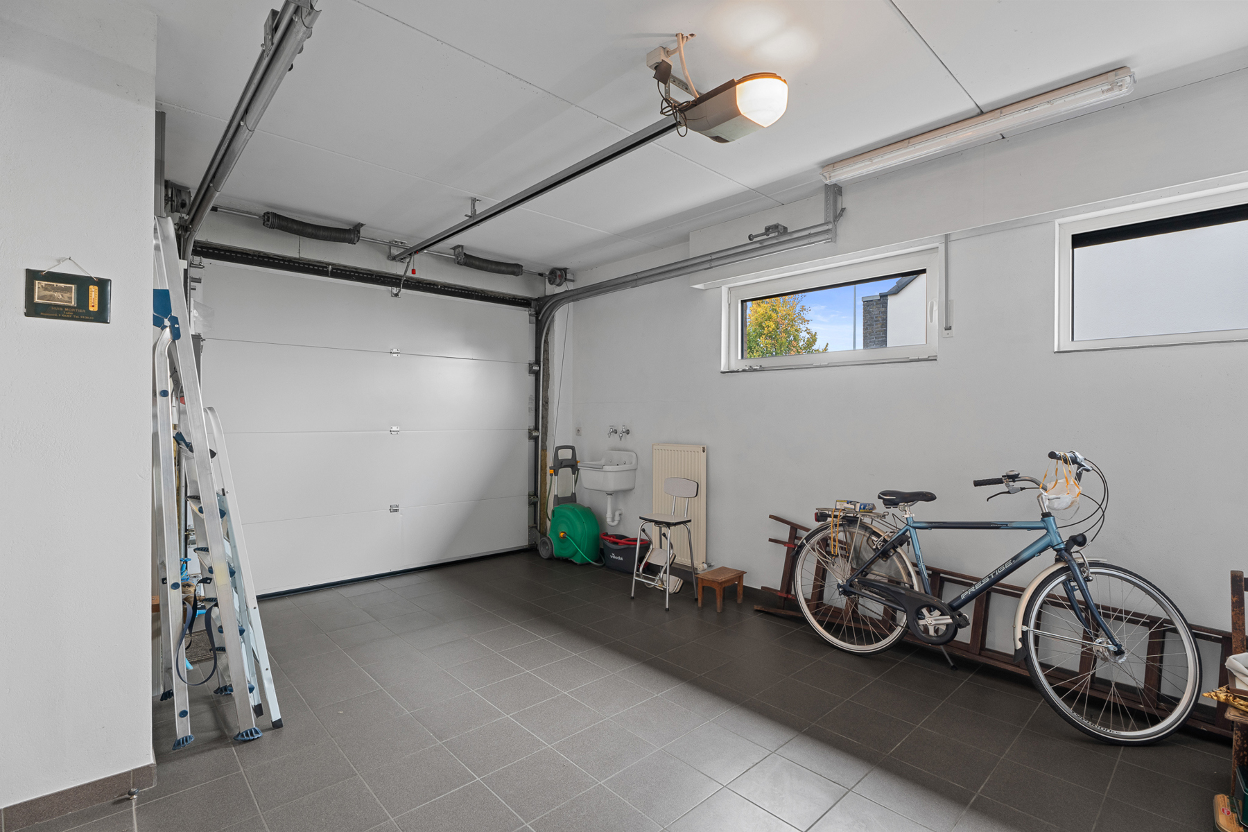 De inpandige garage beschikt over een vaste trap naar de zolder, die nog kan worden omgebouwd tot twee extra kamers en een tweede badkamer. Dit biedt een unieke kans om de woning verder uit te breiden volgens uw eigen wensen en gezinssituatie.