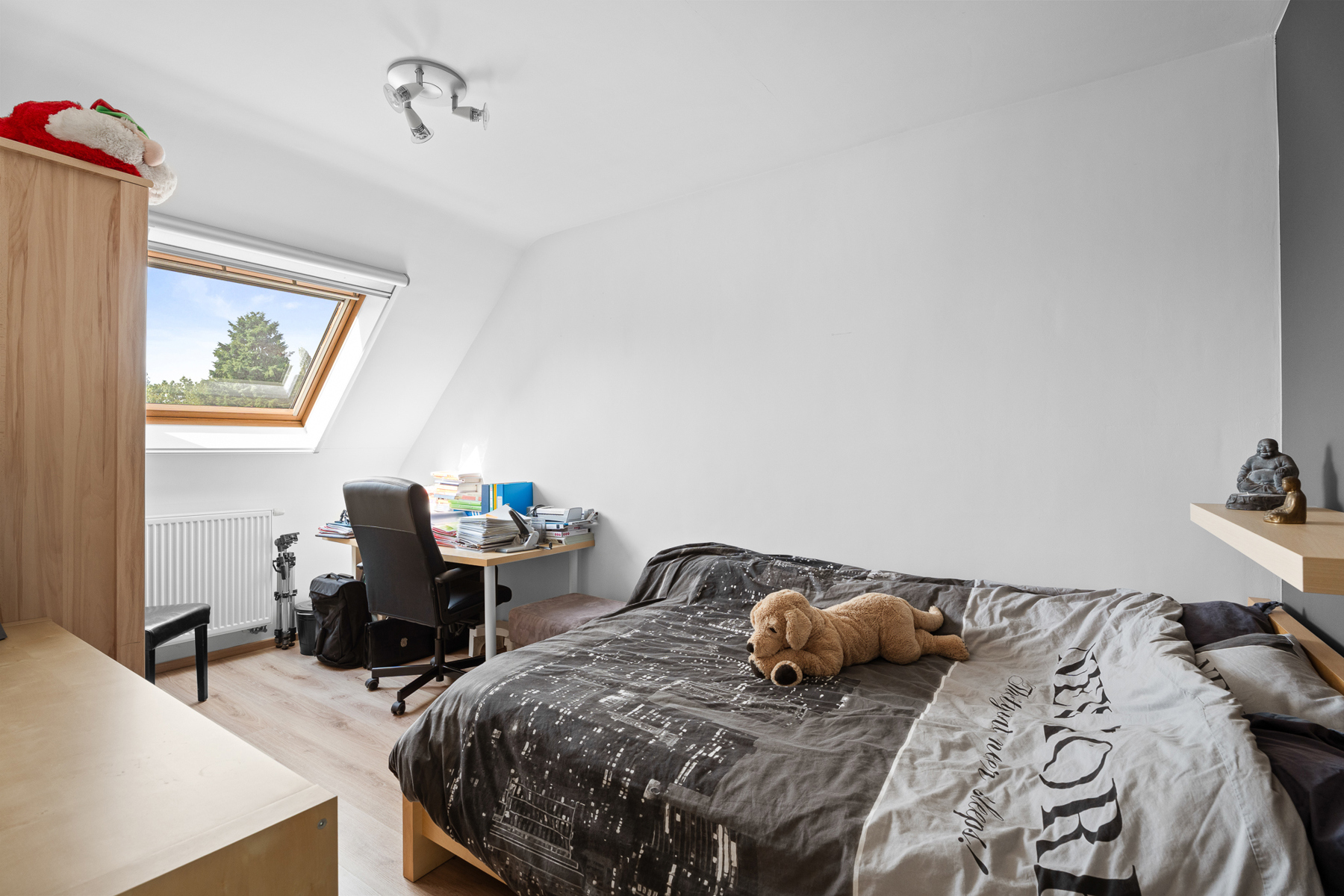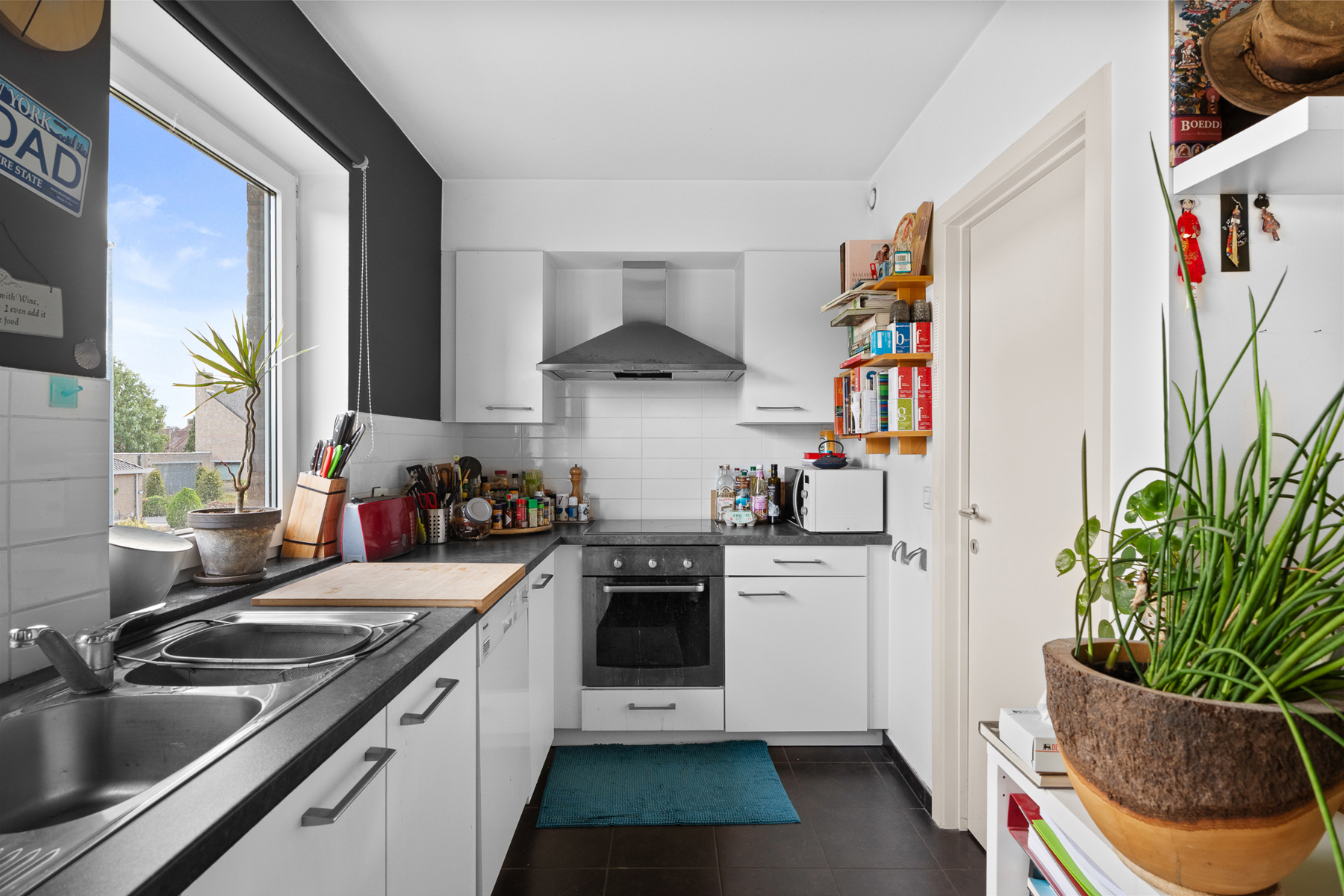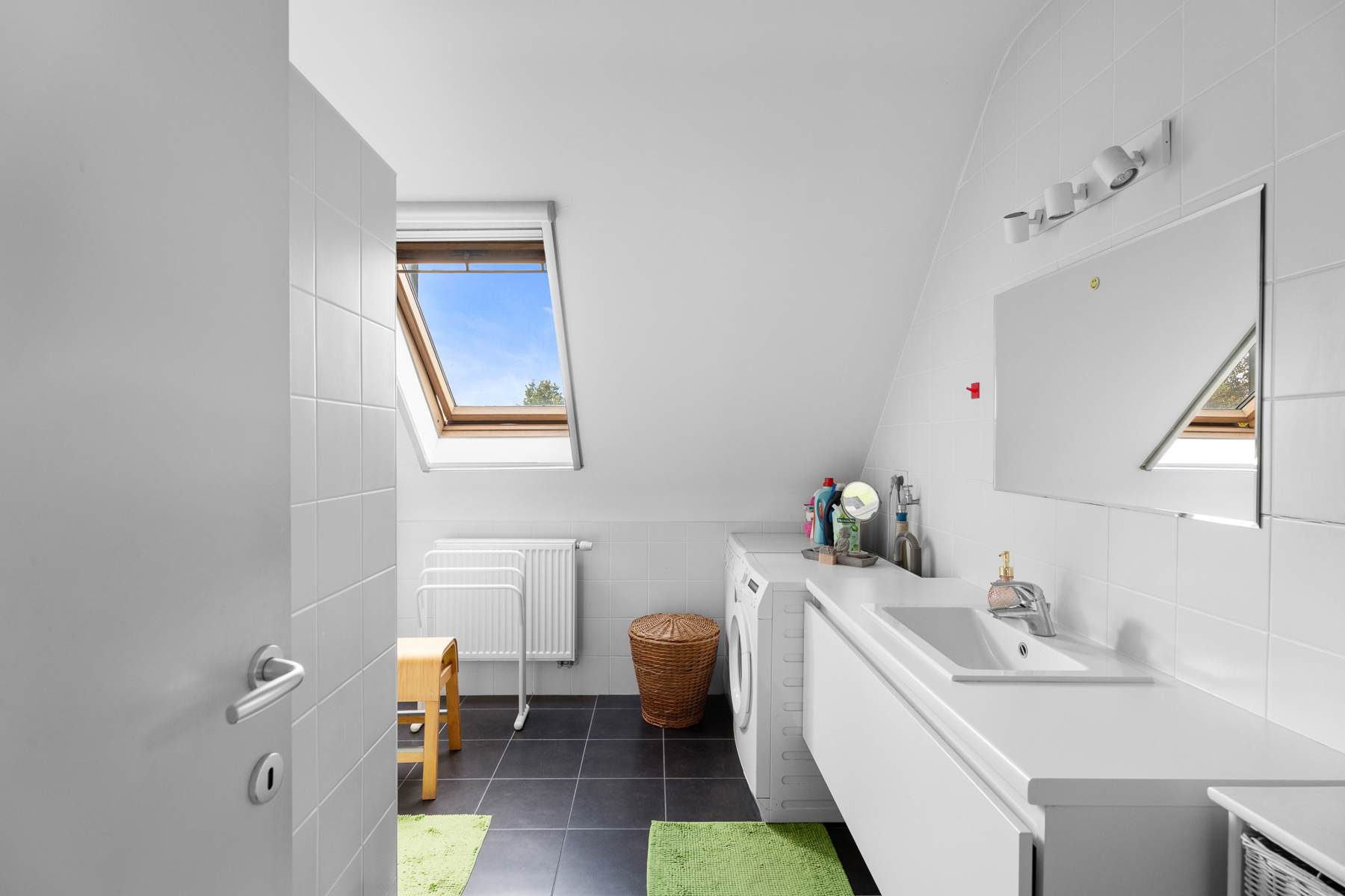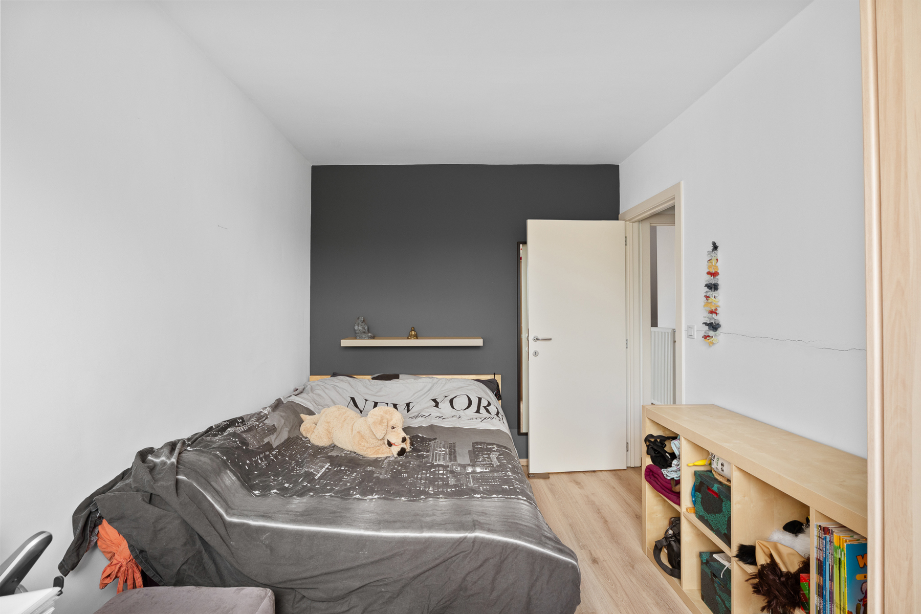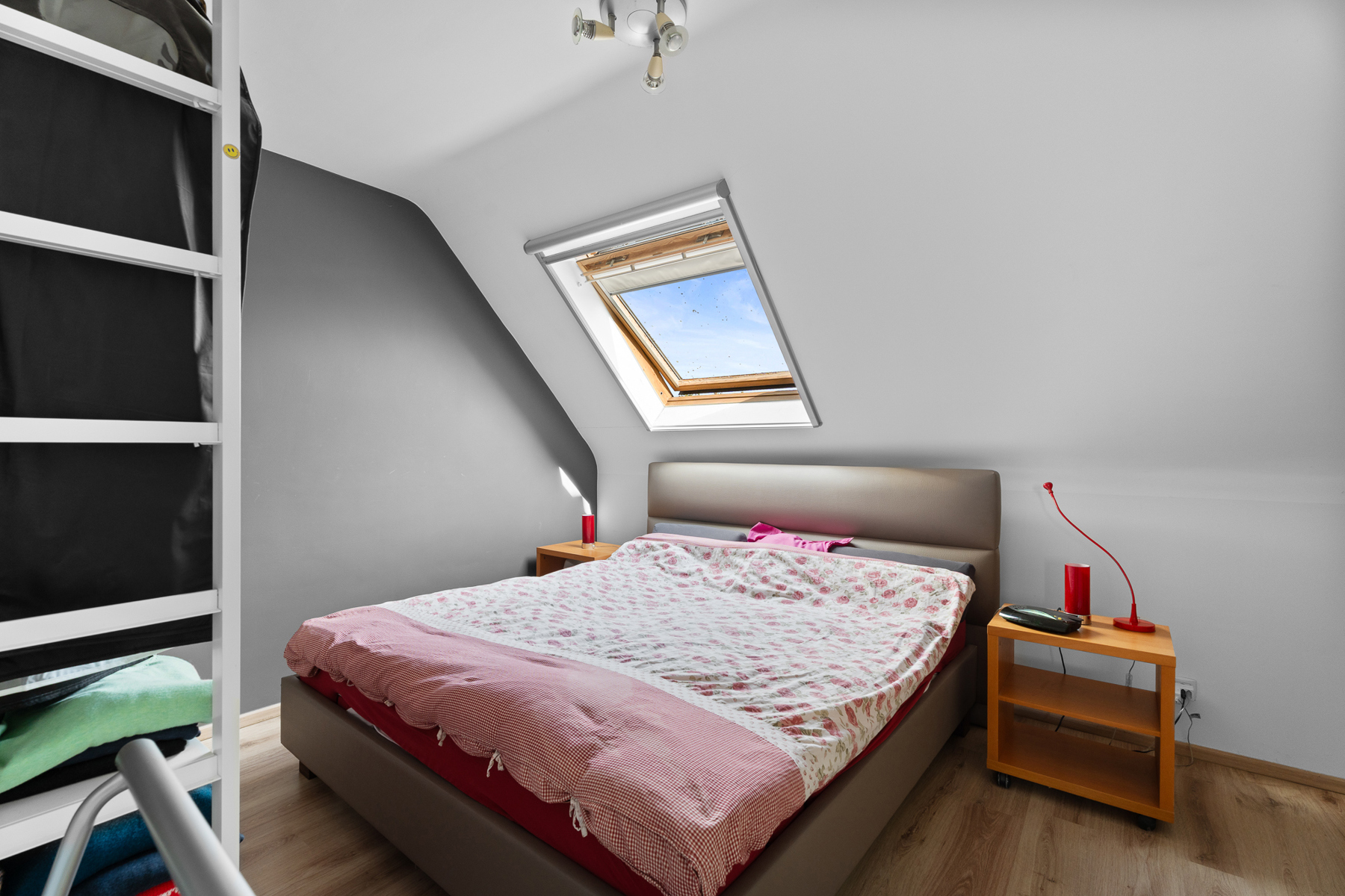 Doorheen het appartement werd gebruik gemaakt van kwalitatieve en onderhoudsvriendelijke materialen. Alles werkt afgewerkt met oog voor detail en alle hedendaagse voorzieningen zijn aanwezig. Indeling: inkomhal met trap en gastentoilet, een open, volledig geïnstalleerde, keuken (grenzend aan een berging) met zicht op de eet- en woonkamer en met toegang tot het ruime, zonnige, terras. Via het terras is er toegang tot een opbergruimte met de technische installaties. Via de trap in de inkomhal kom je op de overloop met toegang tot twee slaapkamers en de badkamer met alle comfort. Tot slot is er op het perceel nog een afsluitbare, afzonderlijke, garage aanwezig!