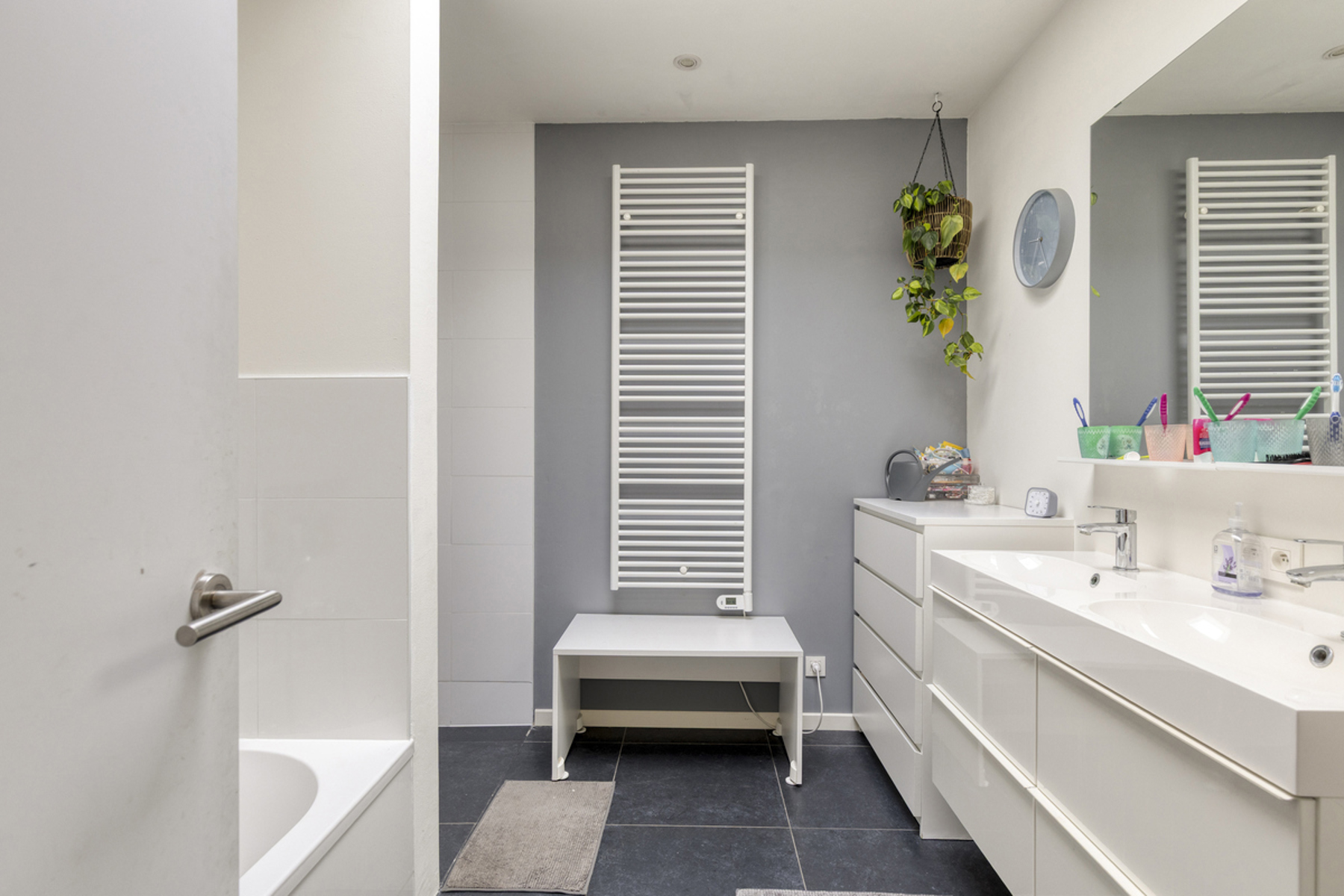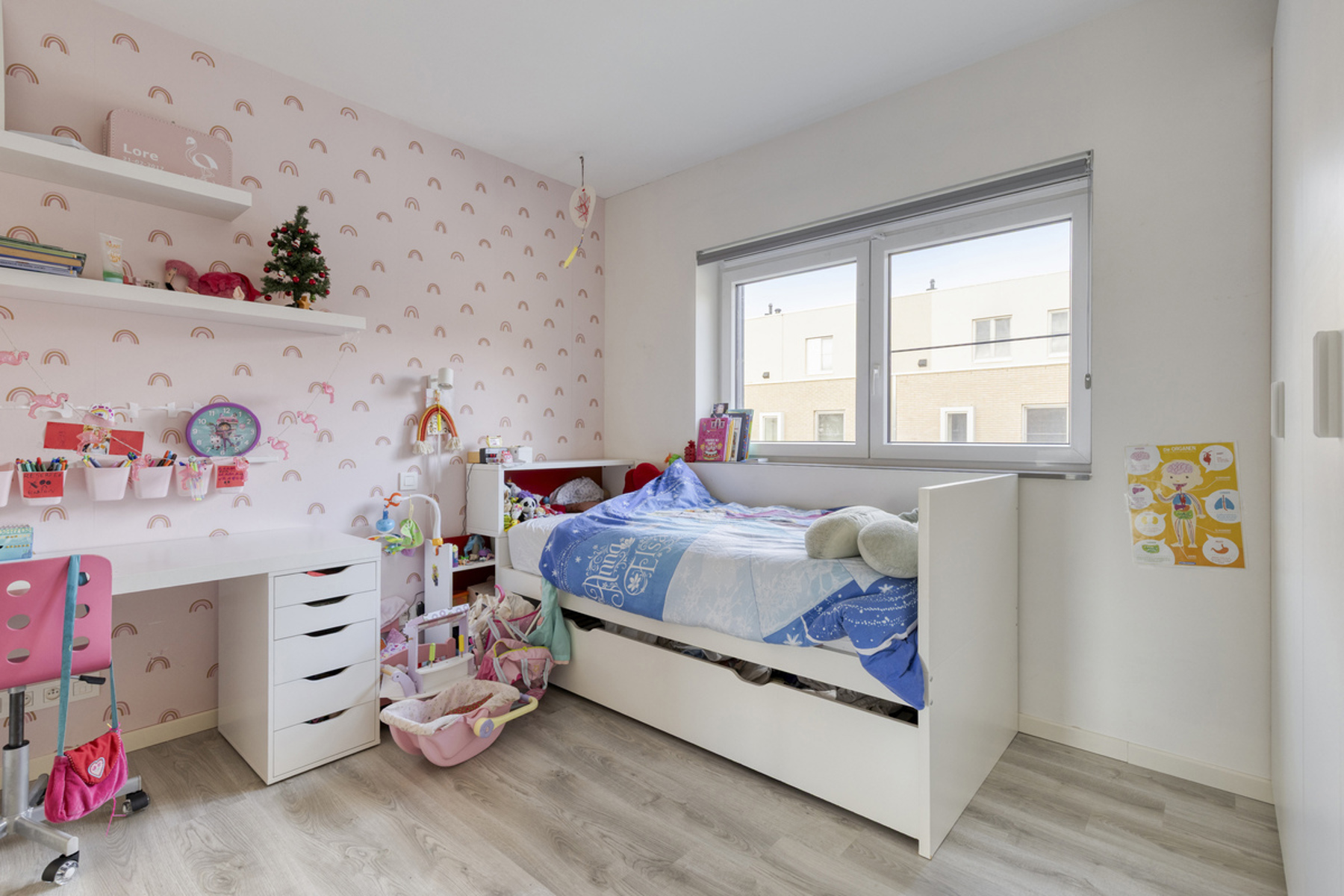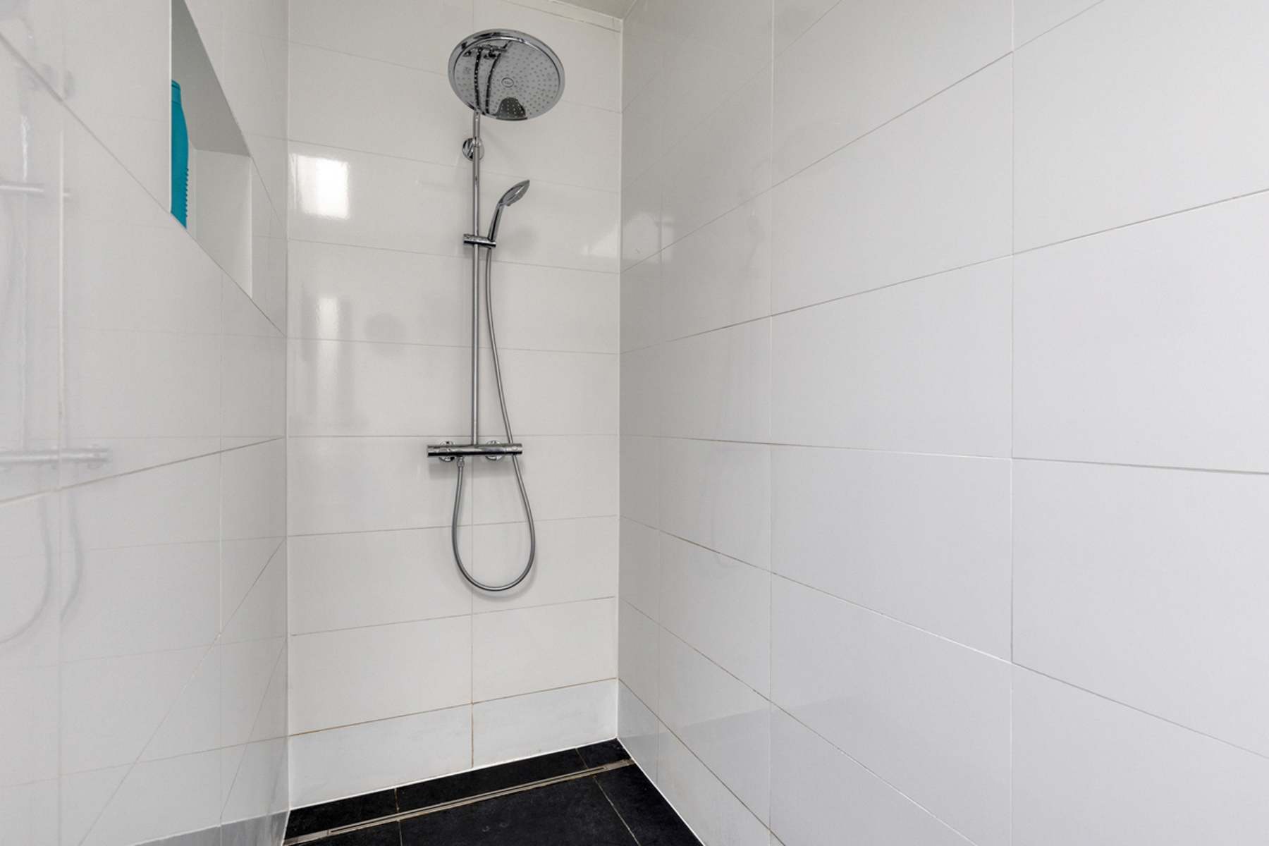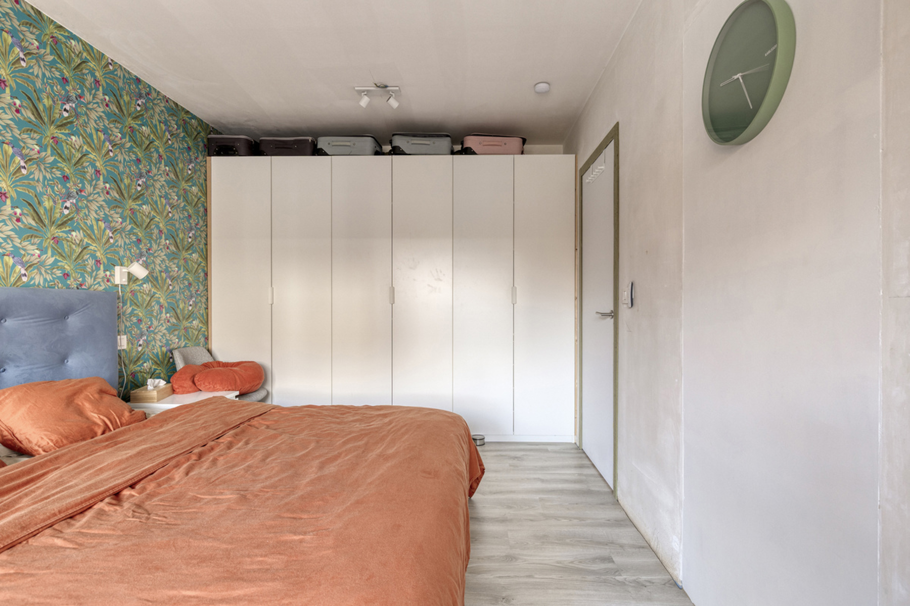 Elke vierkante meter is optimaal benut met slimme inbouwkasten en veel opbergruimte, gezien er geen zolder aanwezig is.