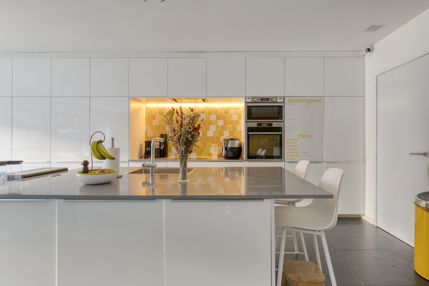 Dankzij het zonwerend glas geniet je volop van de zuidgerichte tuin zonder oververhitting. Bovendien zorgen elektrisch bedienbare screens, een luifel boven het terras en horren op alle ramen voor maximaal comfort, het hele jaar door.
