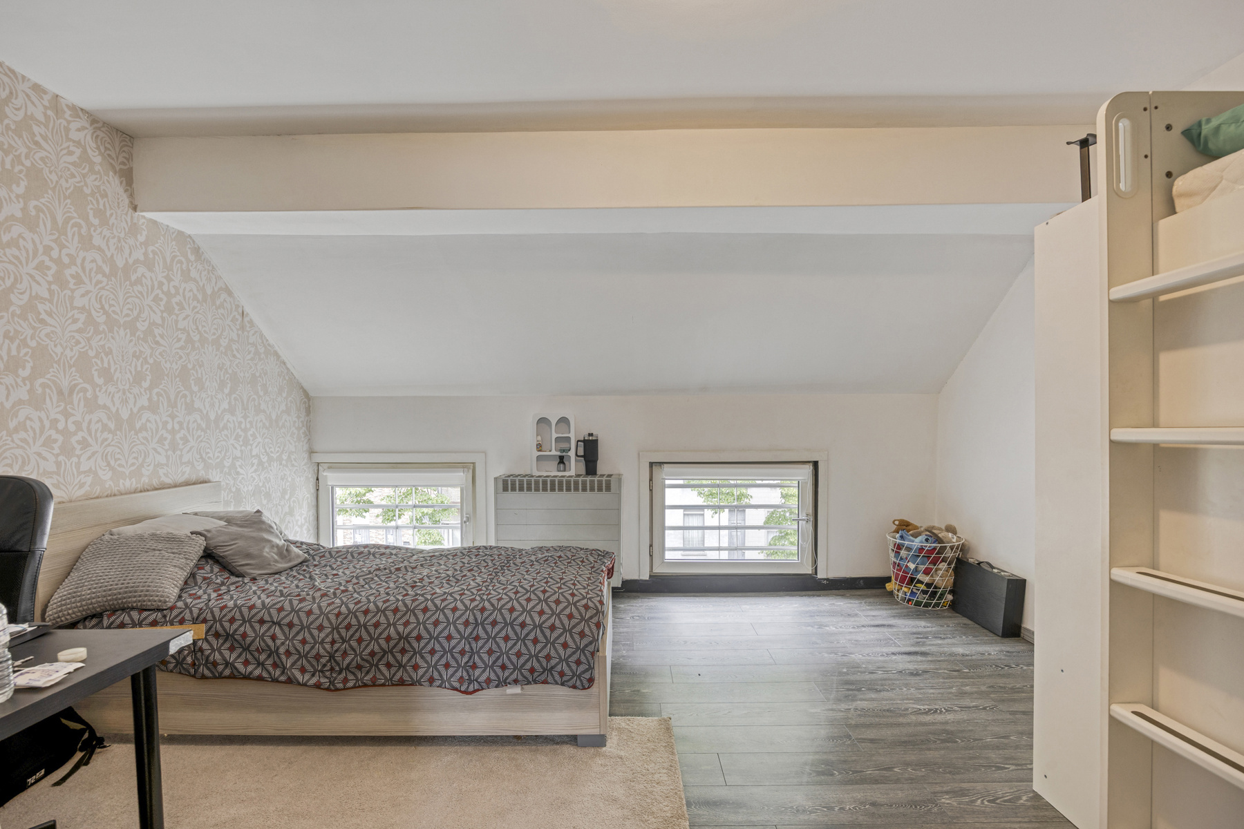 Via een afzonderlijke ingang betreedt u het bovengelegen duplex appartement. Dit appartement beschikt over een bewoonbare oppervlakte van net iets meer dan 160m2 , inkom, eethoek, zithoek, slpk 1, wasplaats, berging, keuken aansluitend terras van 19m2 . Verdiep hoger: 3 slaapkamers en badkamer. Dakverdiep zolder - mansarde ruimte - plannen te downloaden op www.altro-vastgoed.be.