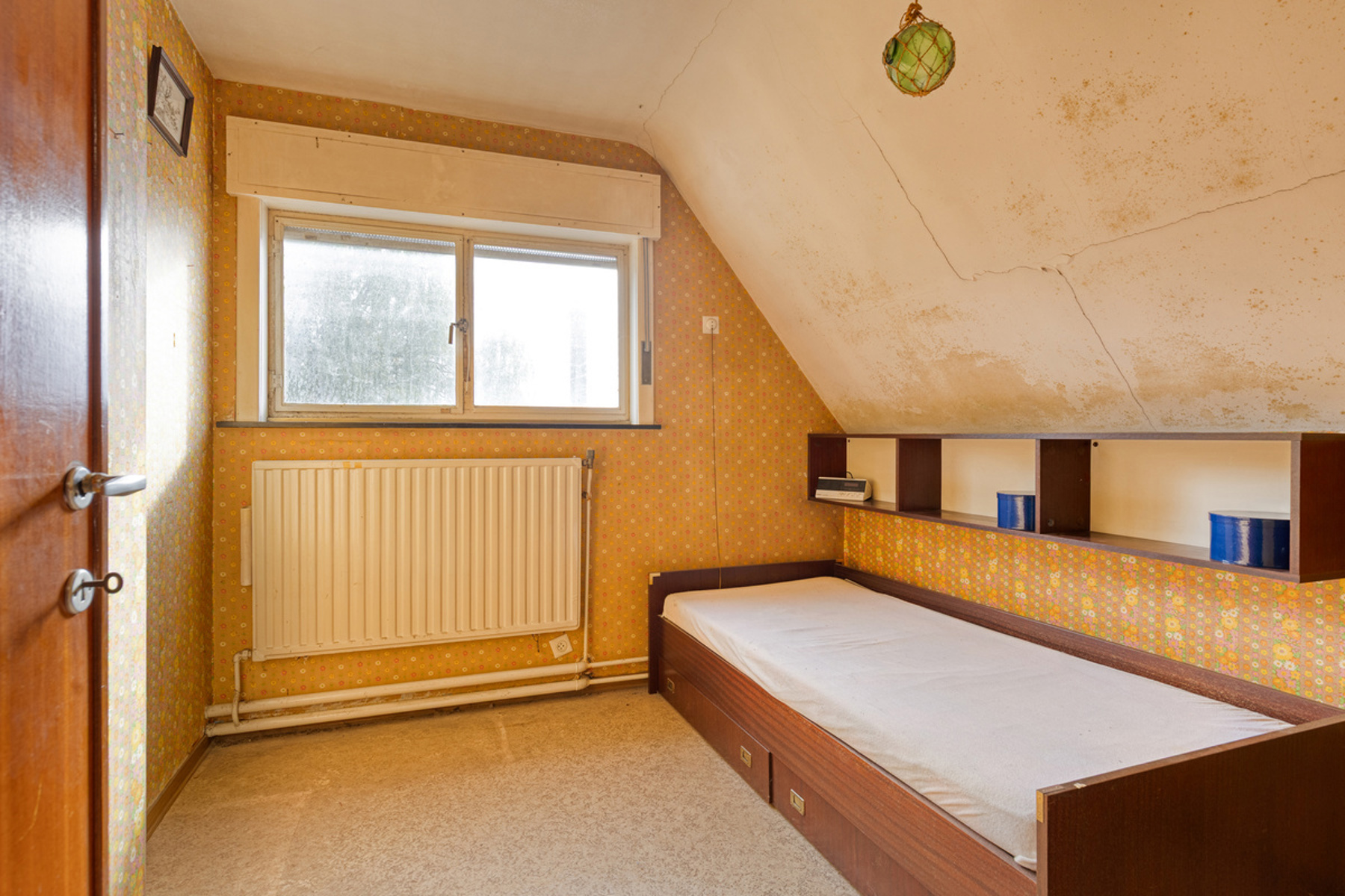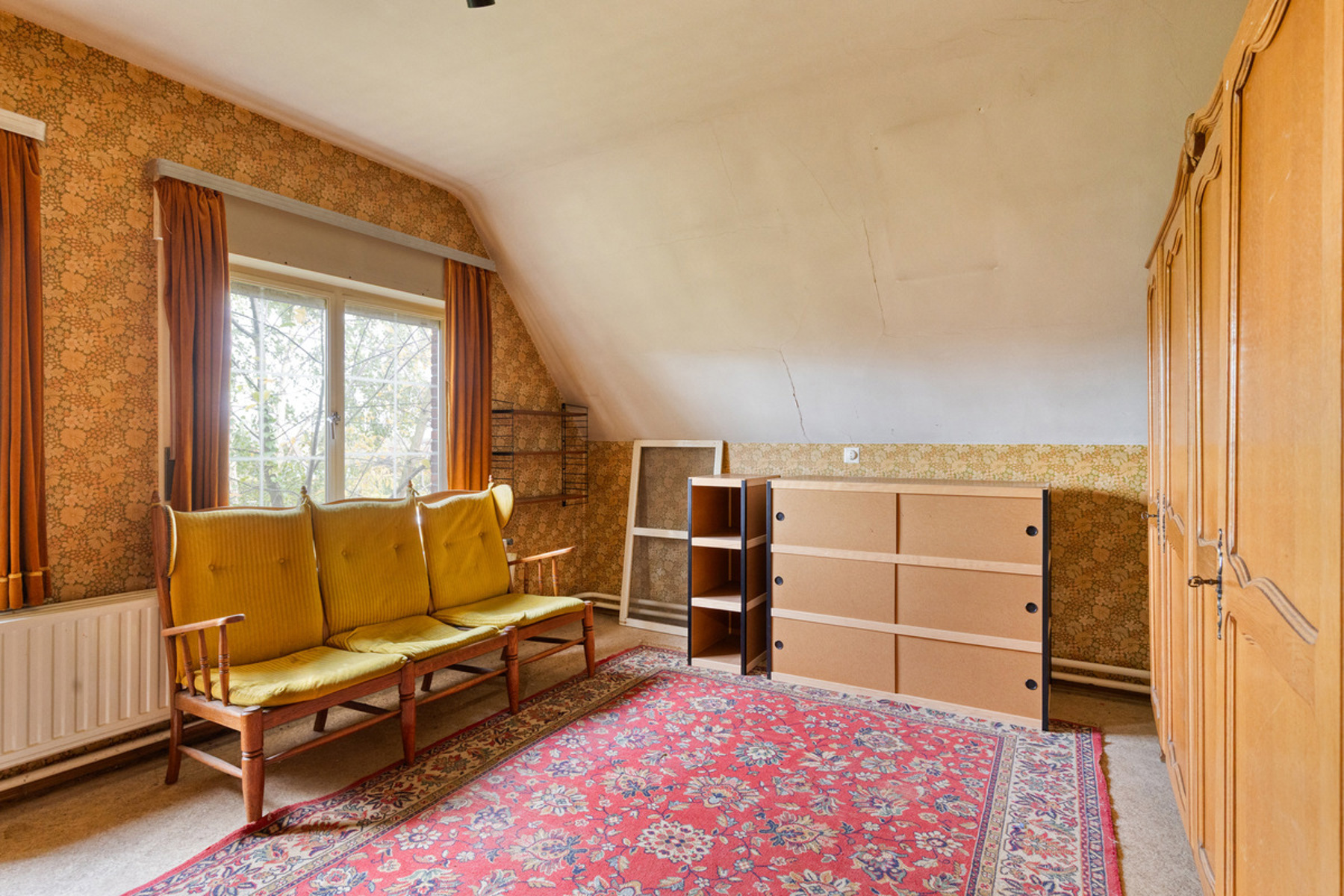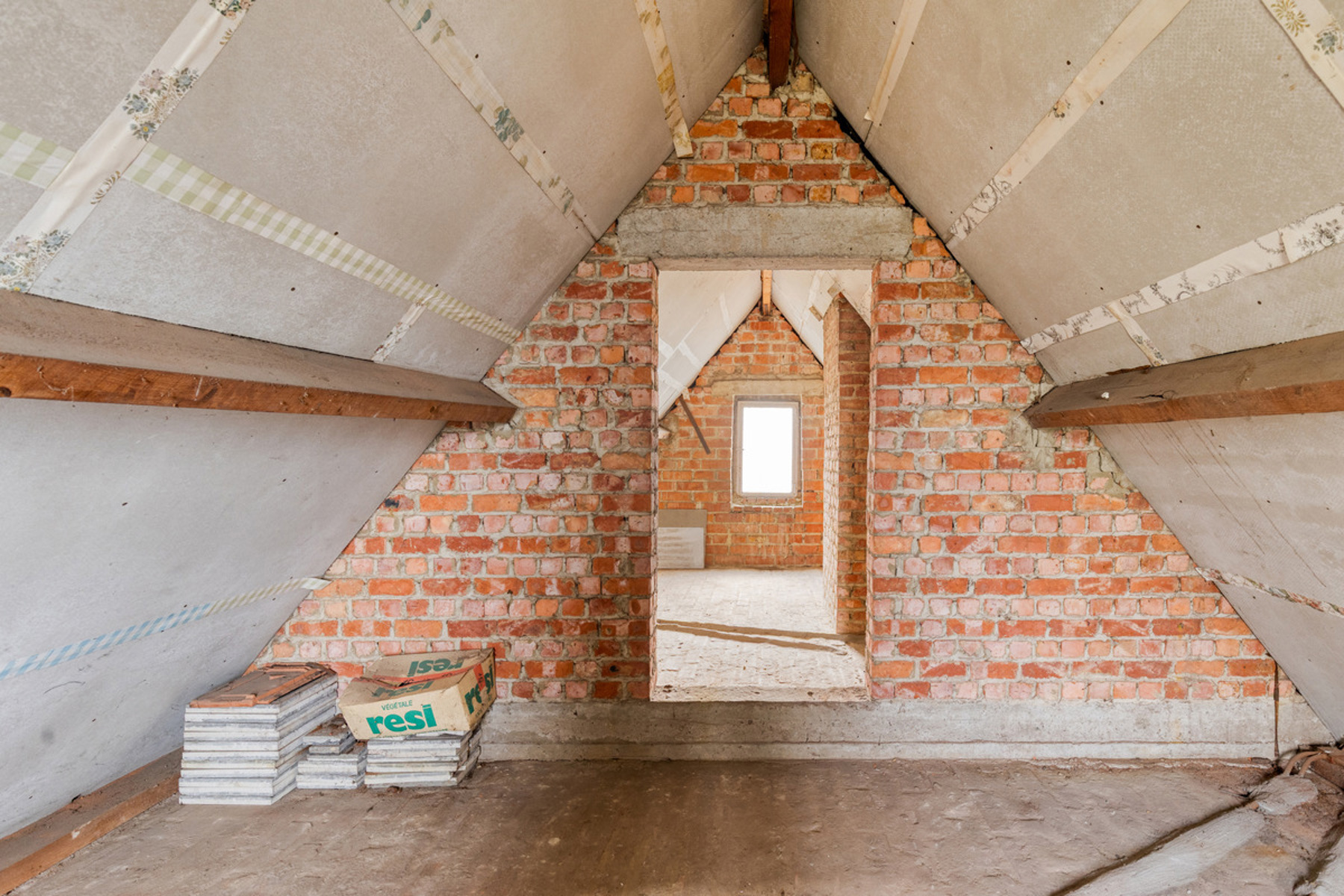 Je komt binnen in een klassieke indeling met inkomhal, een ruime leefruimte, een gesloten keuken, badkamer, berging en toegang tot de droge kelder. Op de verdieping wachten drie ruime slaapkamers. De zolder is bereikbaar en biedt evidente uitbreidingskansen: het plaatsen van een vaste trap maakt extra kamers, een master met dressing of een riante hobby- of thuiswerkplek perfect haalbaar. Dankzij de robuuste structuur kan je ook vlot evolueren naar een open leefruimte met zicht en directe verbinding naar de tuin—dé plek voor een grote leefkeuken, lange tafels en avonden in het licht.