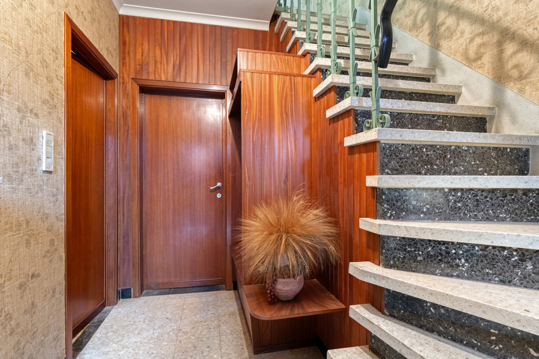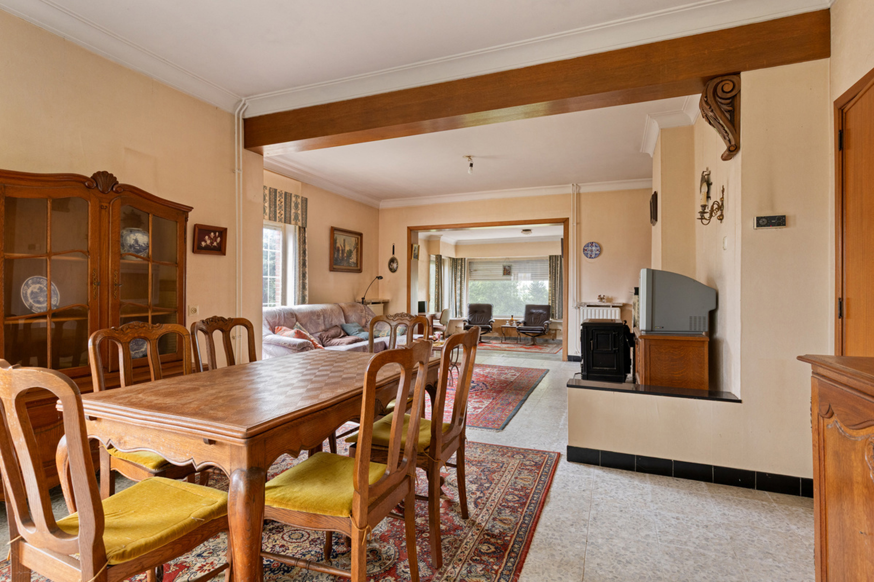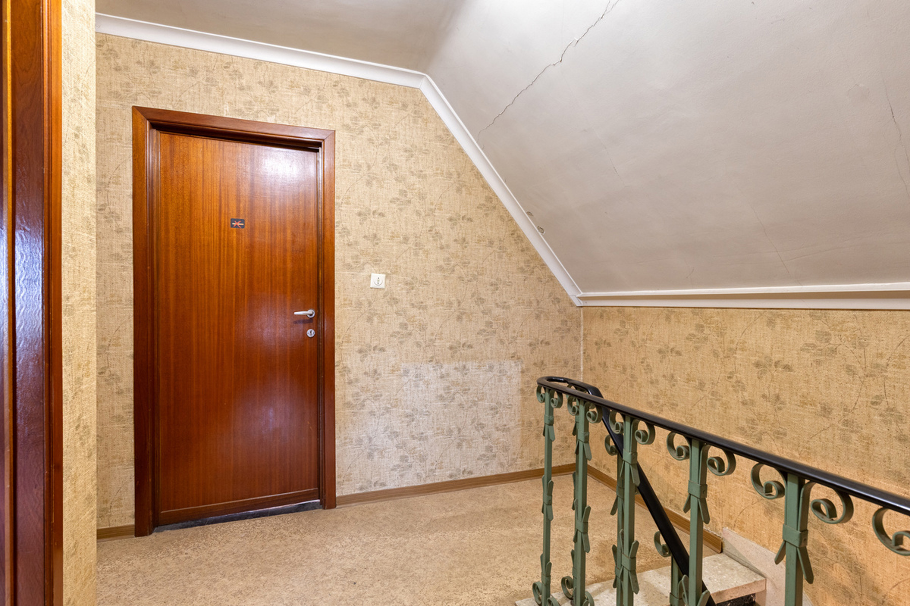 Je komt binnen in een klassieke indeling met inkomhal, een ruime leefruimte, een gesloten keuken, badkamer, berging en toegang tot de droge kelder. Op de verdieping wachten drie ruime slaapkamers. De zolder is bereikbaar en biedt evidente uitbreidingskansen: het plaatsen van een vaste trap maakt extra kamers, een master met dressing of een riante hobby- of thuiswerkplek perfect haalbaar. Dankzij de robuuste structuur kan je ook vlot evolueren naar een open leefruimte met zicht en directe verbinding naar de tuin—dé plek voor een grote leefkeuken, lange tafels en avonden in het licht.