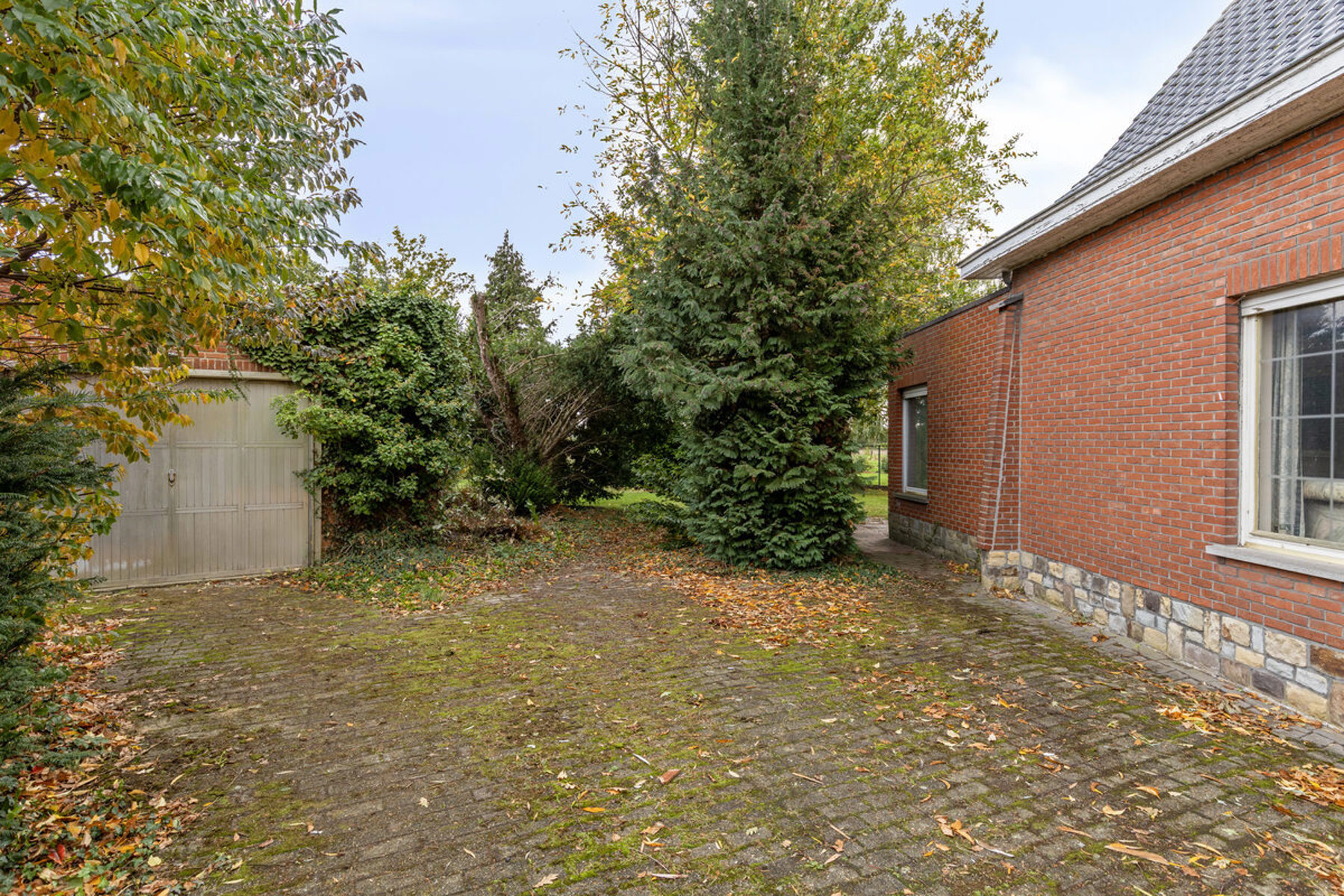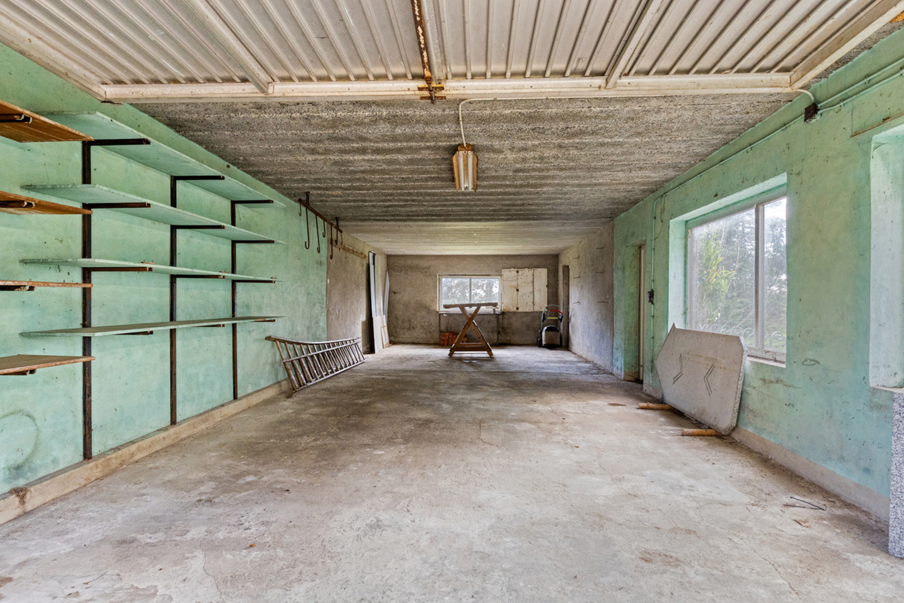 Achteraan staat een bijzonder stevige garage (64 m²) met betonnen gewelven, geschikt voor twee wagens. Deze ruimte biedt een royale opslag: vandaag ideaal als stockage of atelier, morgen moeiteloos om te vormen tot poolhouse of tuinkamer. Wie nog groter denkt, kan optioneel het achterliggende bouwland “Het Cauterveld” (ca. 1.850 m²) aankopen—een extra troef die, binnen de geldende voorschriften en vergunningen, zelfs mogelijkheden biedt om paarden te houden.