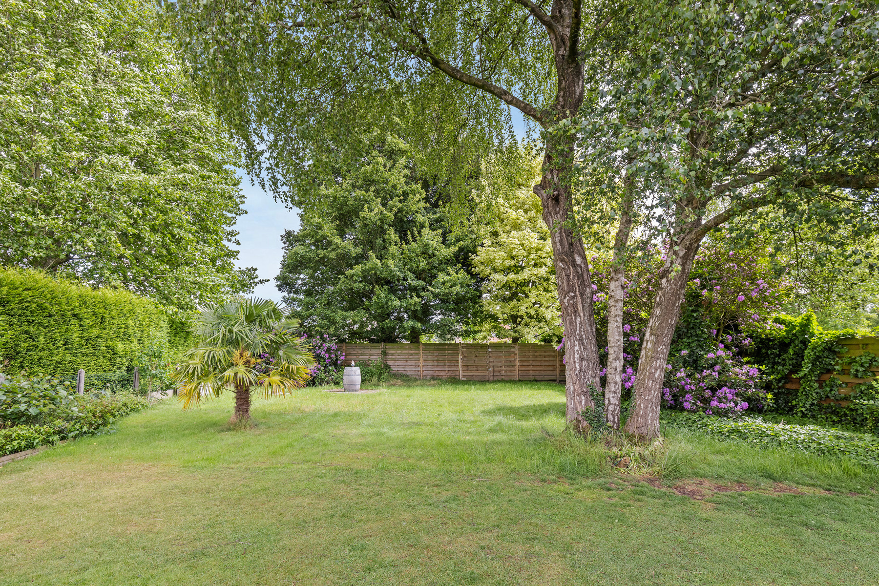De tuin maakt het plaatje compleet: een unieke vorm die zowel ochtendzon als een warme westelijke avondzon combineert, ideaal voor tuinliefhebbers, gezinnen en wie graag gasten ontvangt.