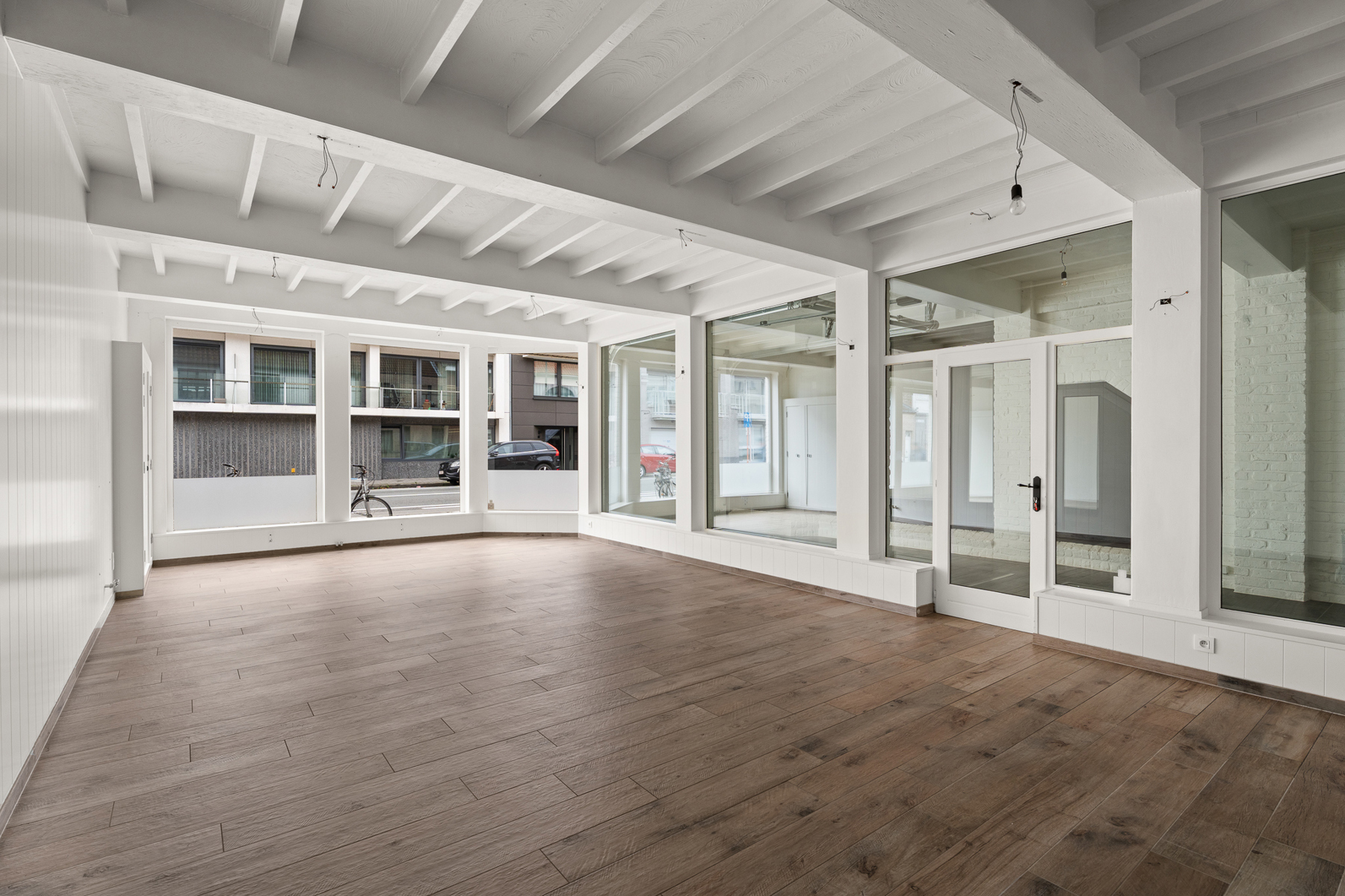 Het gelijkvloers wordt gedefinieerd als winkelruimte met opslagplaats/magazijn en woongelegenheid, wat meteen de brede inzetbaarheid onderstreept. Dankzij de grote raampartijen geniet het pand van uitzonderlijke lichtinval en maximale visibiliteit, ideaal voor een handelszaak, ontbijt- of lunchconcept, kleinschalige horeca, praktijk of dienstverlenende activiteit.