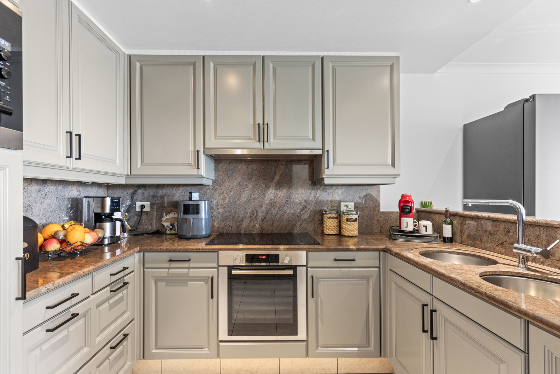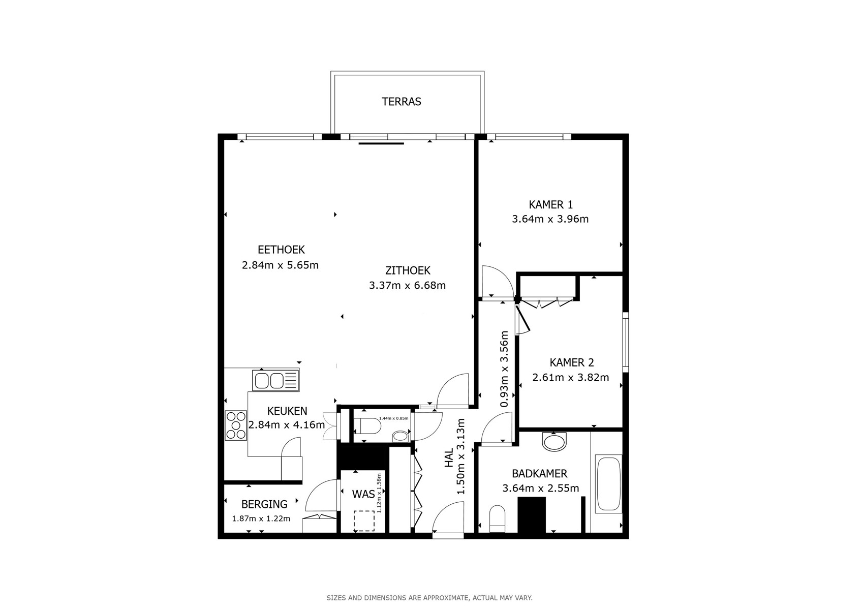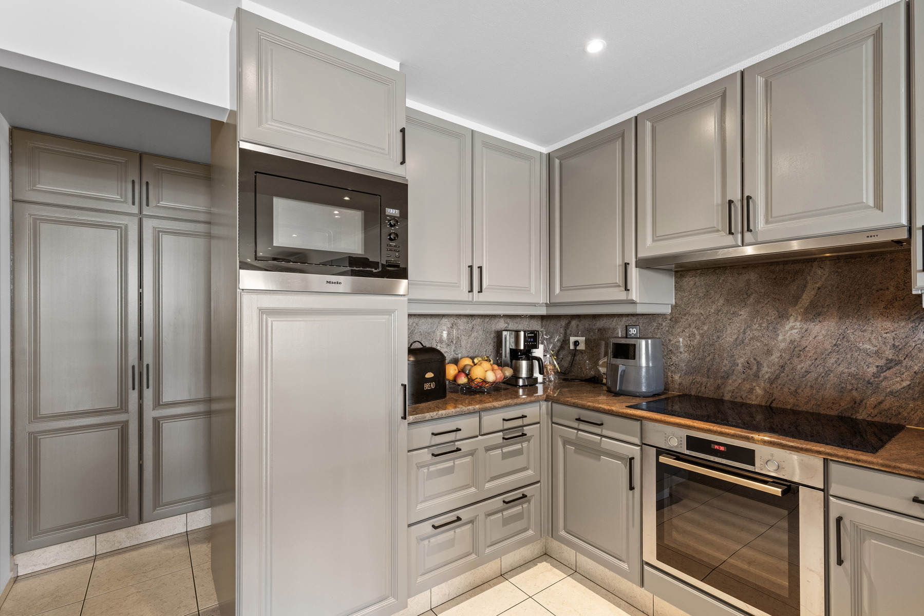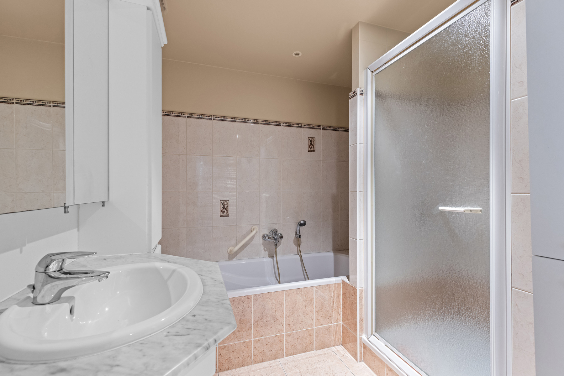 De ruime leefruimte baadt in het licht en biedt plaats voor zowel een gezellige zithoek als een grote eettafel. De aansluitende keuken is praktisch ingericht met veel kastruimte — ideaal voor wie graag kookt. Verder vind je in het appartement een handige berging, twee volwaardige slaapkamers en een badkamer met zowel ligbad als douche. Daarnaast is er ook nog een apart toilet én een extra toilet in de badkamer.