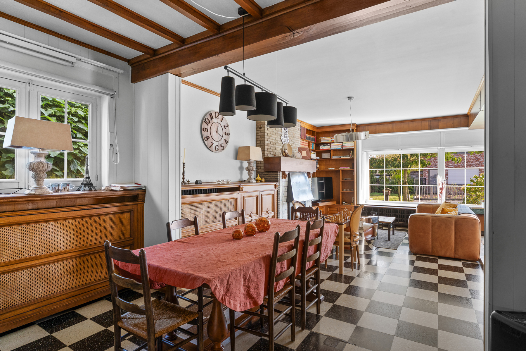 Binnenin wacht je een inkomhal met authentieke vloeren en een prachtige houten trap die meteen indruk maakt. De lichtrijke leefruimte ademt gezelligheid uit en sluit naadloos aan bij de eetkamer. De ruime keuken vormt het hart van de woning en sluit mooi aan bij de tuin, waardoor koken en samenkomen hier extra gezellig worden. Verder zijn er op het gelijkvloers een grote berging/wasplaats, een apart toilet en een badkamer met ligbad en lavabo. De kelder zorgt voor extra opslagruimte.