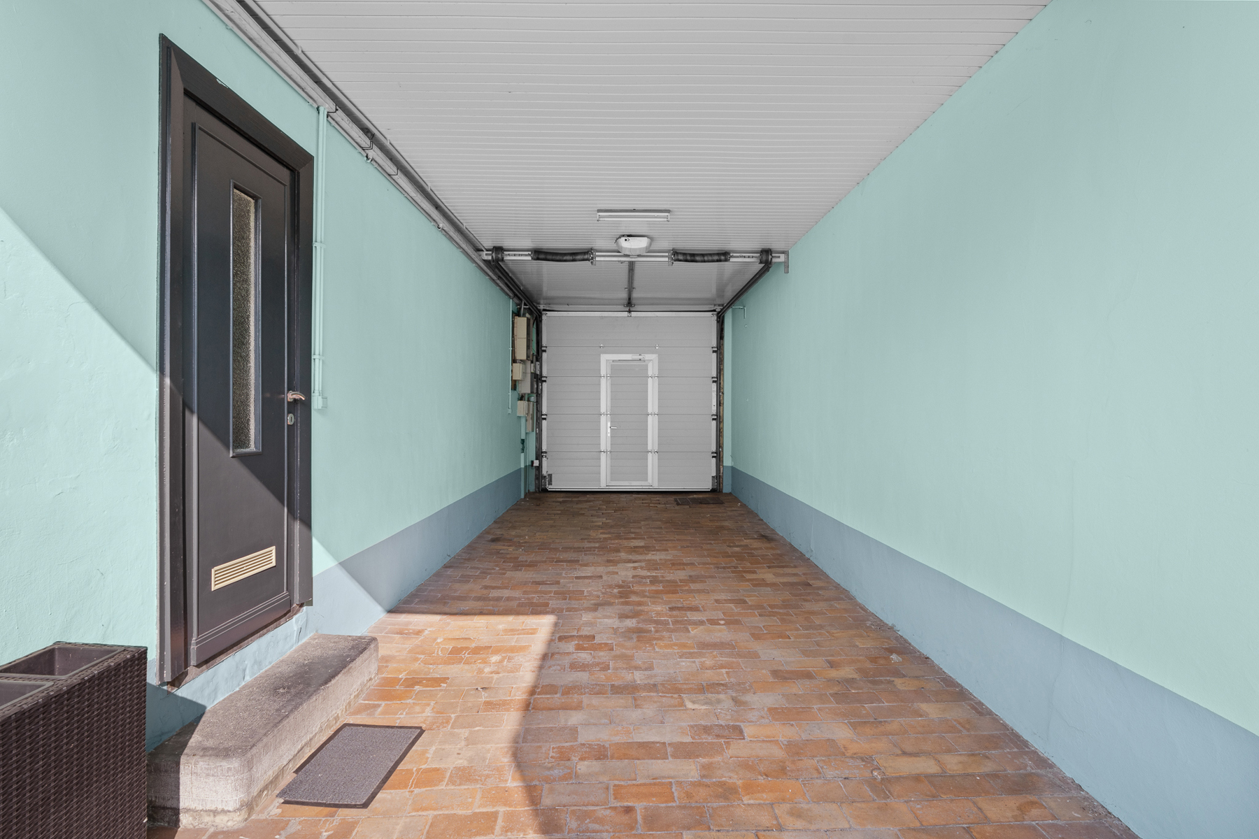 De loods is bereikbaar via een toegangsweg met garagepoort (hoogte 2,70 m) en bevindt zich niet rechtstreeks aan de straatzijde, wat extra privacy en veiligheid biedt voor voertuigen of materialen.