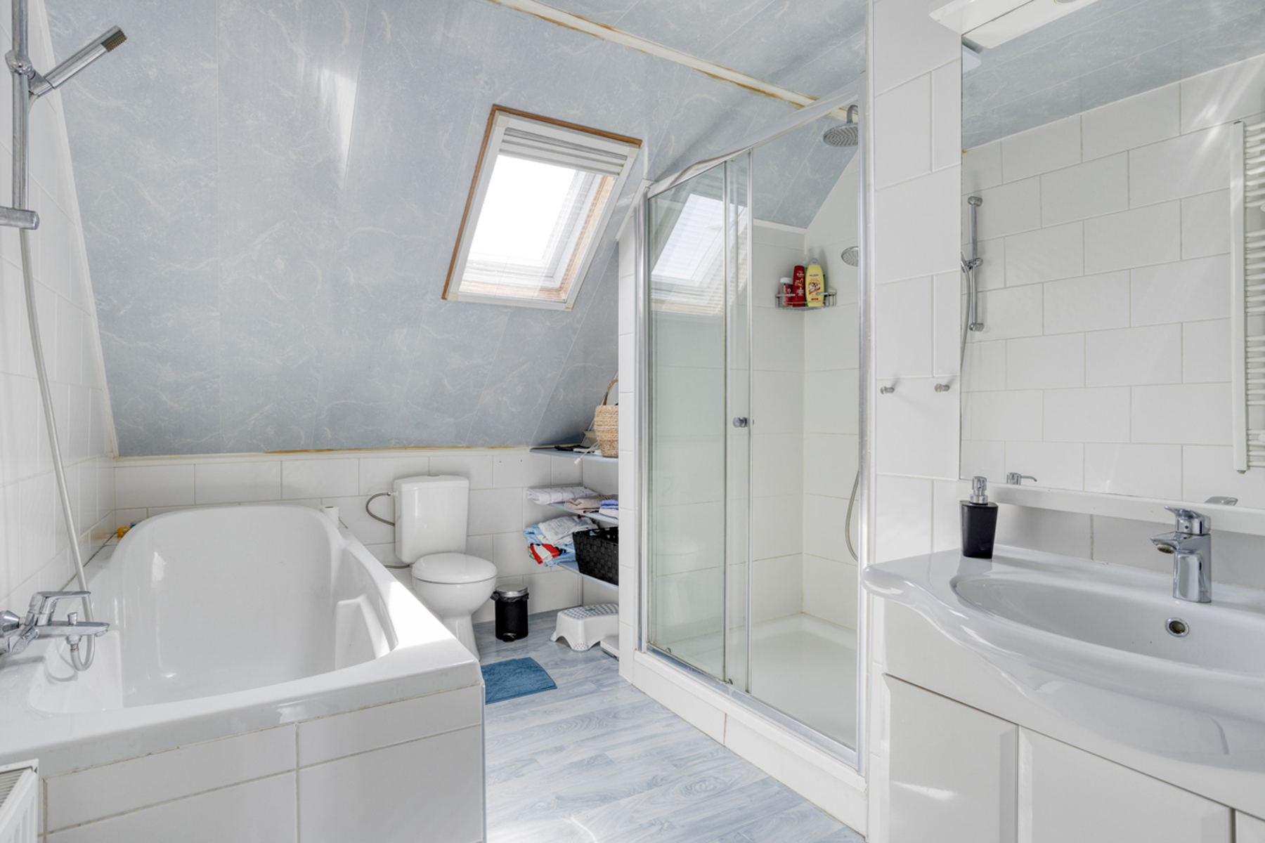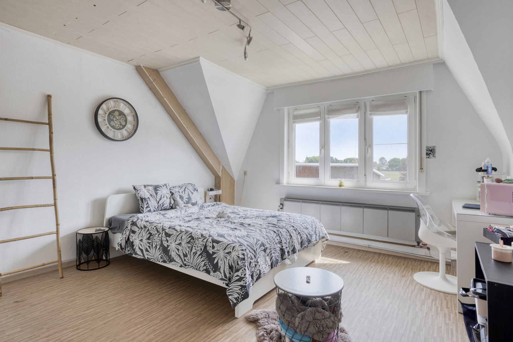 3 slaapkamers, waaronder één met vaste trap naar de zolder – ideaal als inloopdressing of speelruimte. Extra bergruimtes zorgen voor maximale functionaliteit.
