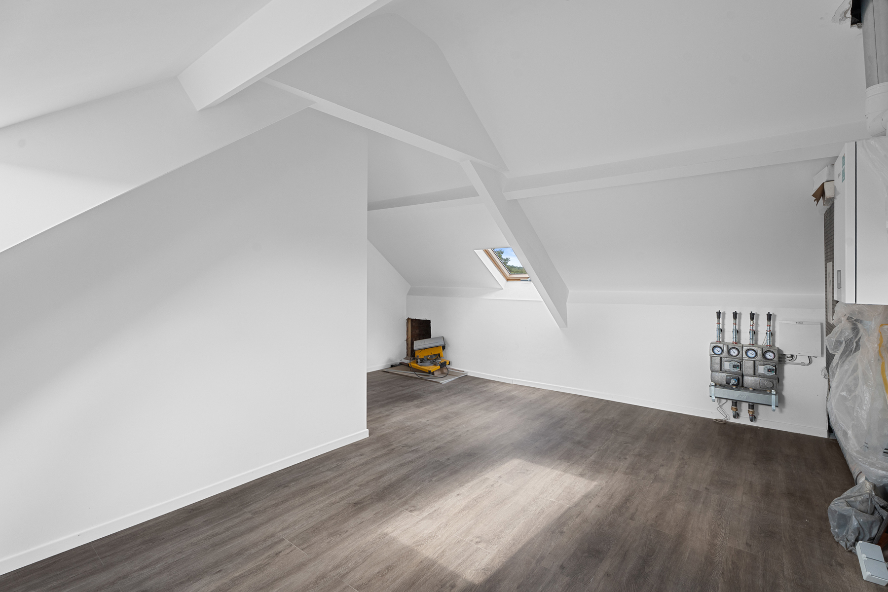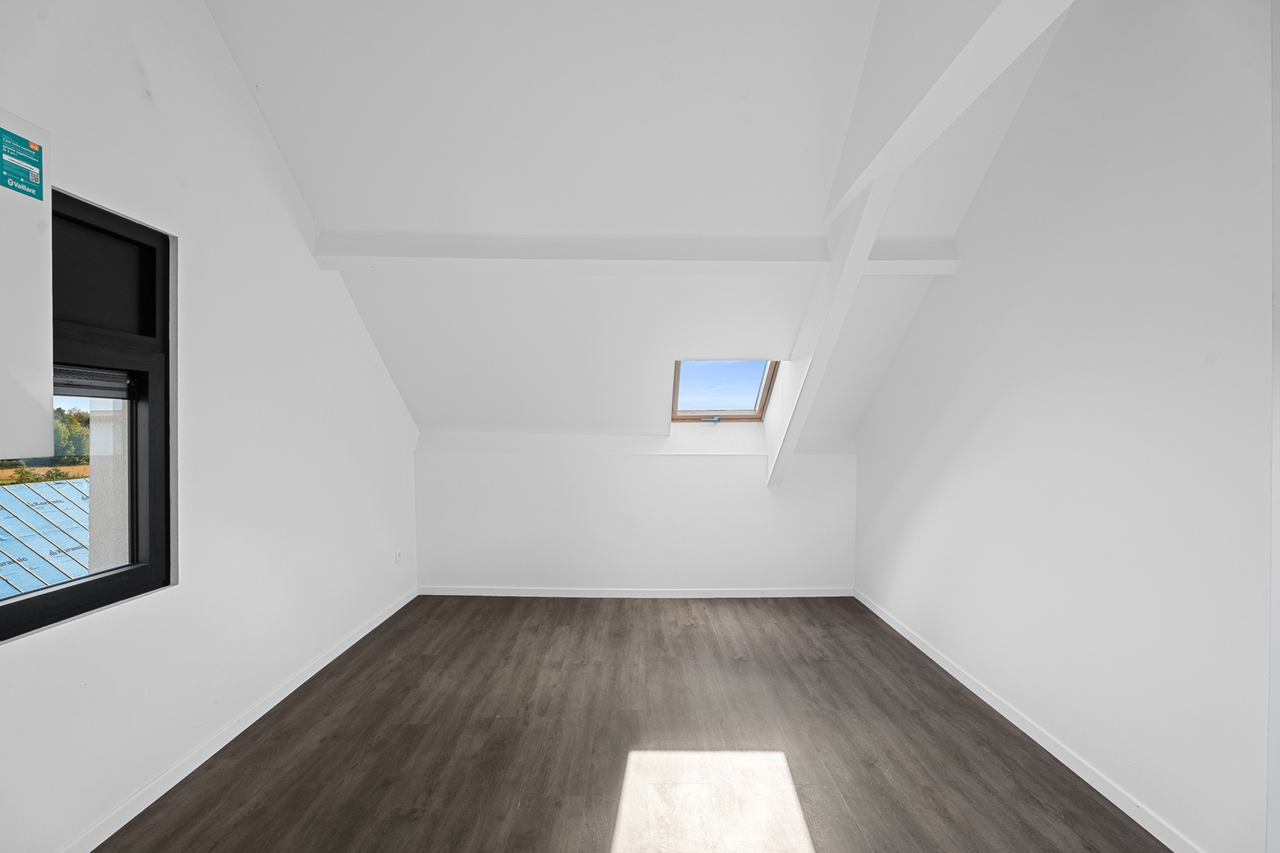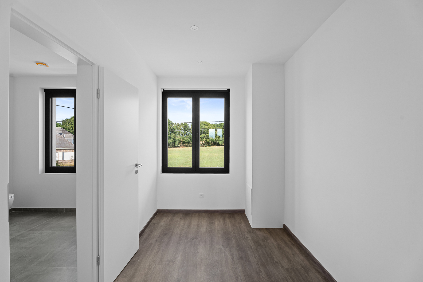 Op het tussenverdiep bevinden zich twee volwaardige slaapkamers van ca. 14 m². Op de eerste verdieping ontdekt u een derde slaapkamer, de badkamer met luxueuze inloopdouche, dubbele lavabo en uniek zicht over de velden, en een extra kamer die perfect kan dienen als ensuite dressing of bureauruimte. De zolderverdieping biedt nog een royale kamer van 29 m², ideaal als vierde slaapkamer, speelkamer of hobbyruimte.