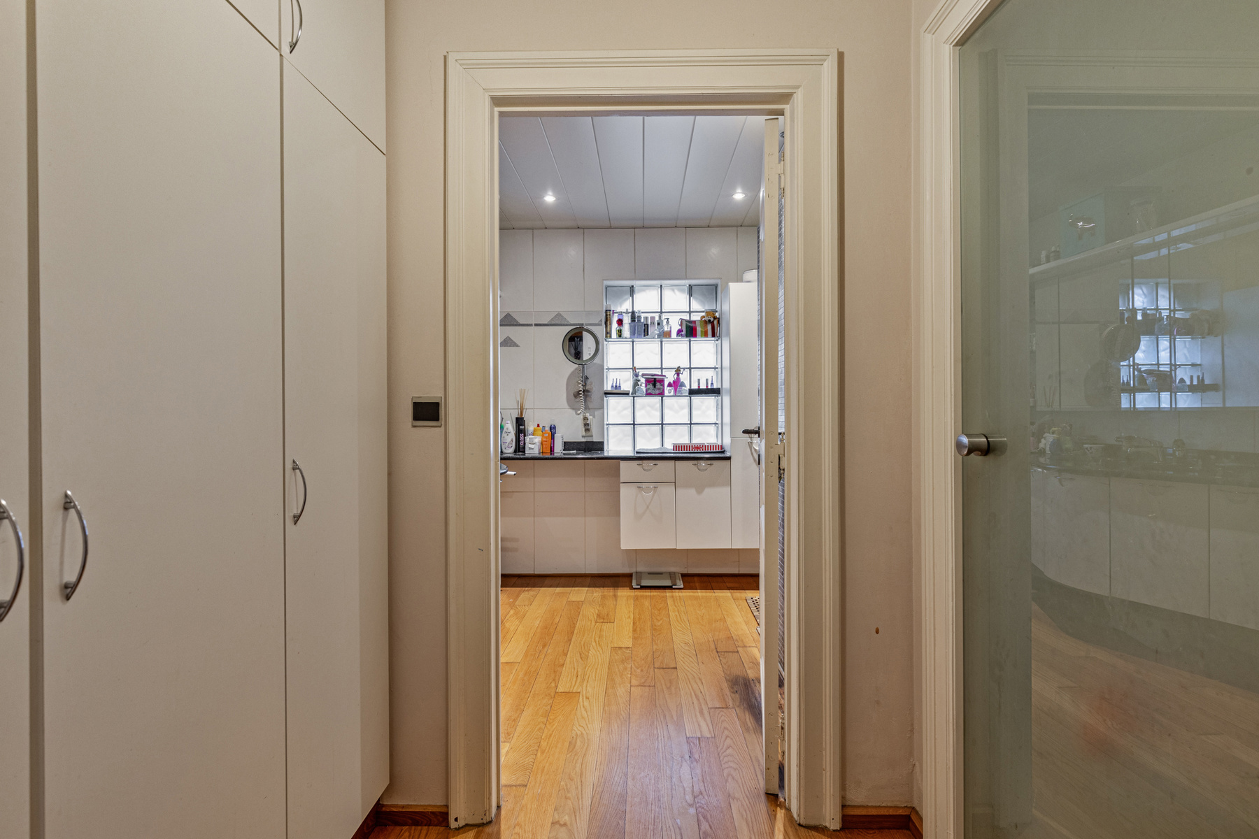 De inkomhal, met nieuwe ingemaakte kasten, geeft uit op de lichtrijke leefruimte met verzonken woonkamer, typisch voor woningen uit de jaren '70. Aansluitend aan de woonkamer is de met licht overgoten eetkamer , die op zijn beurt aansluit op de aangename keuken met ontbijthoek. De nachthal op het gelijkvloers geeft uit op 2 slaapkamers, een badkamer met inloopdouche en wc en een bureauruimte. Om het af te maken is er op het gelijkvloers nog een bijkeuken en een handige wasplaats met ruimte voor 2 wasmachines.