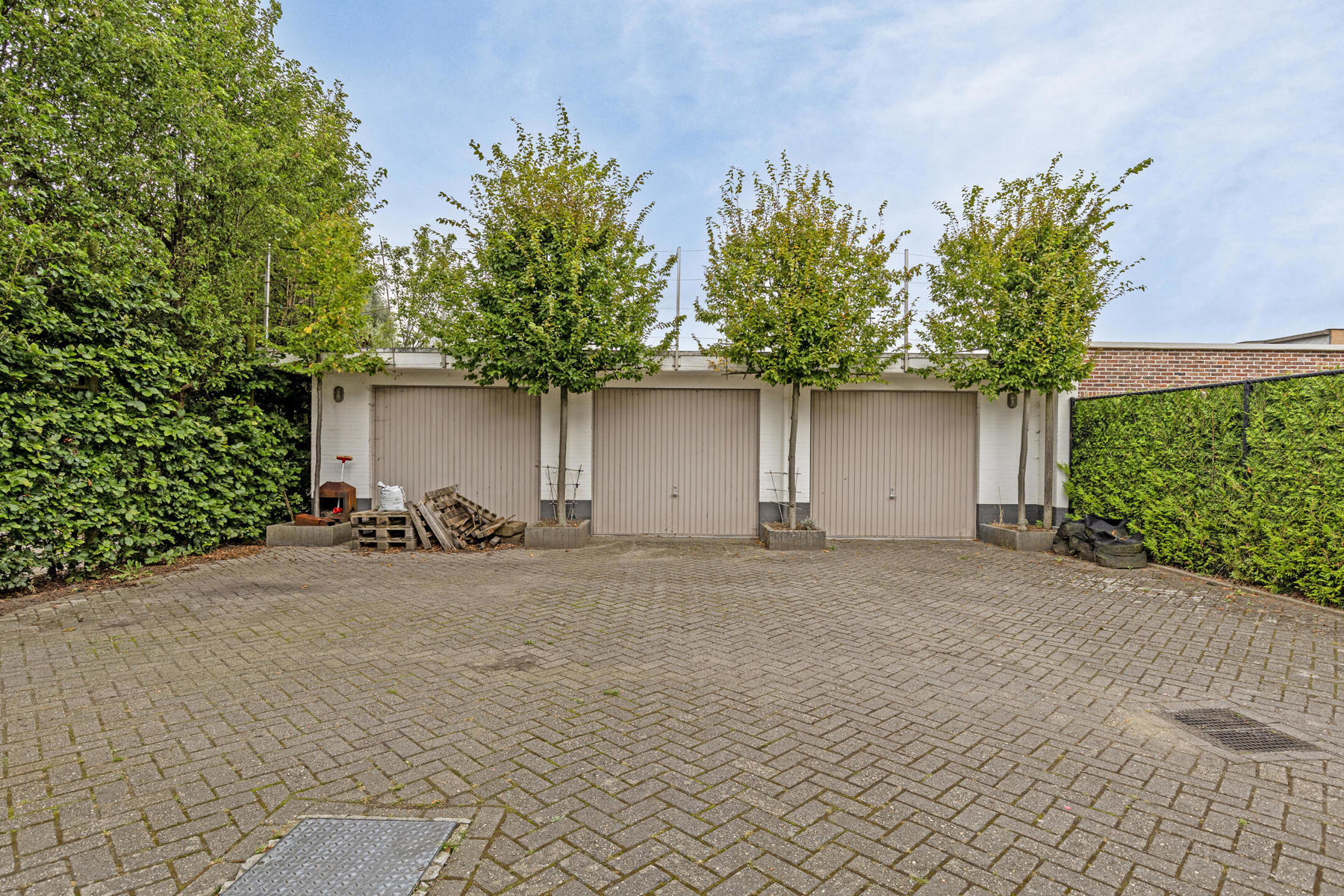 De aangelegde tuin en de verschillende terrassen maakt het aangenaam om te vertoeven, de woning is volledig omheind en er is een automatische schuifpoort die toegang heeft op de oprit en leidt naar de garage.