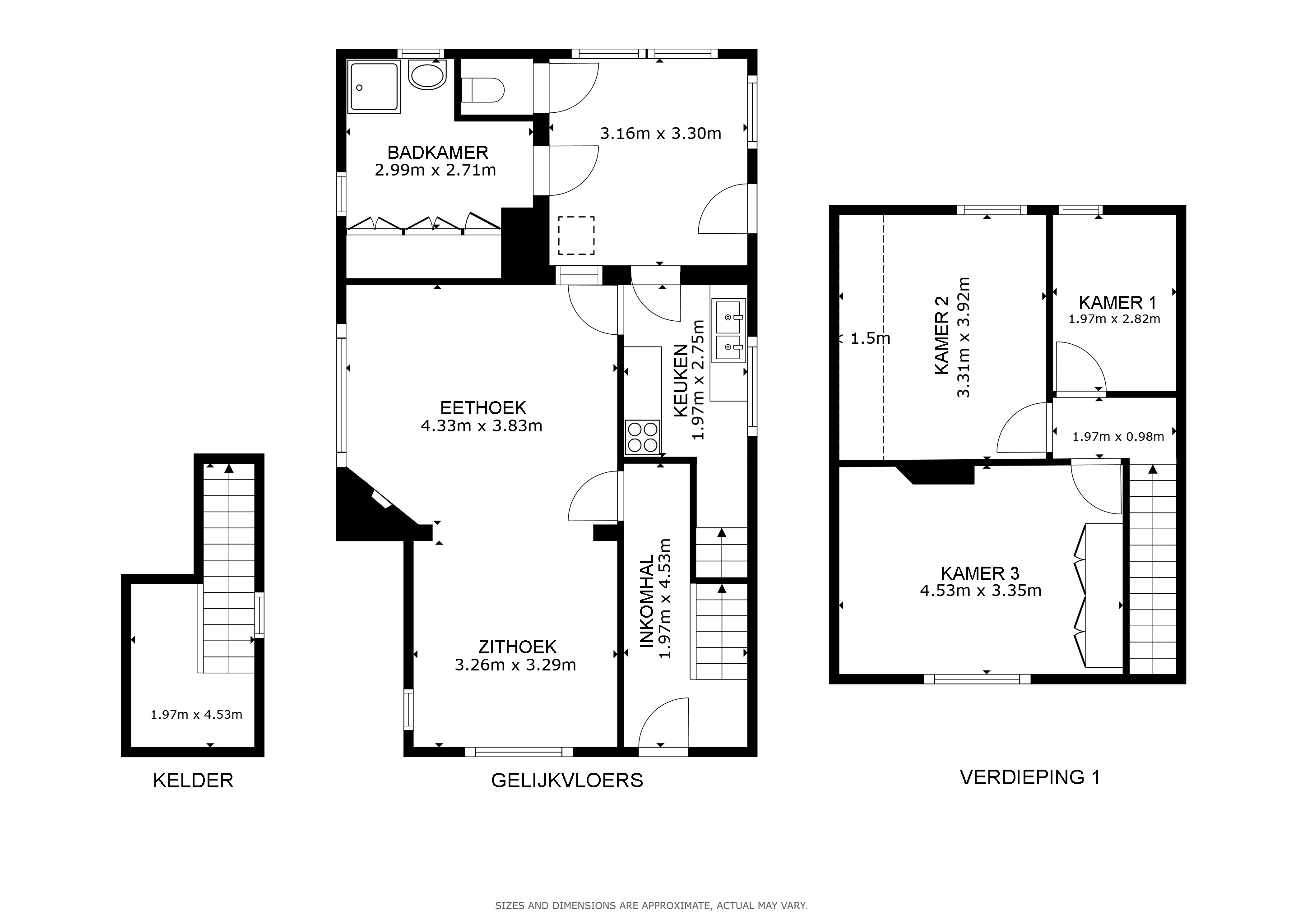 3 slaapkamers + extra zolderruimte.