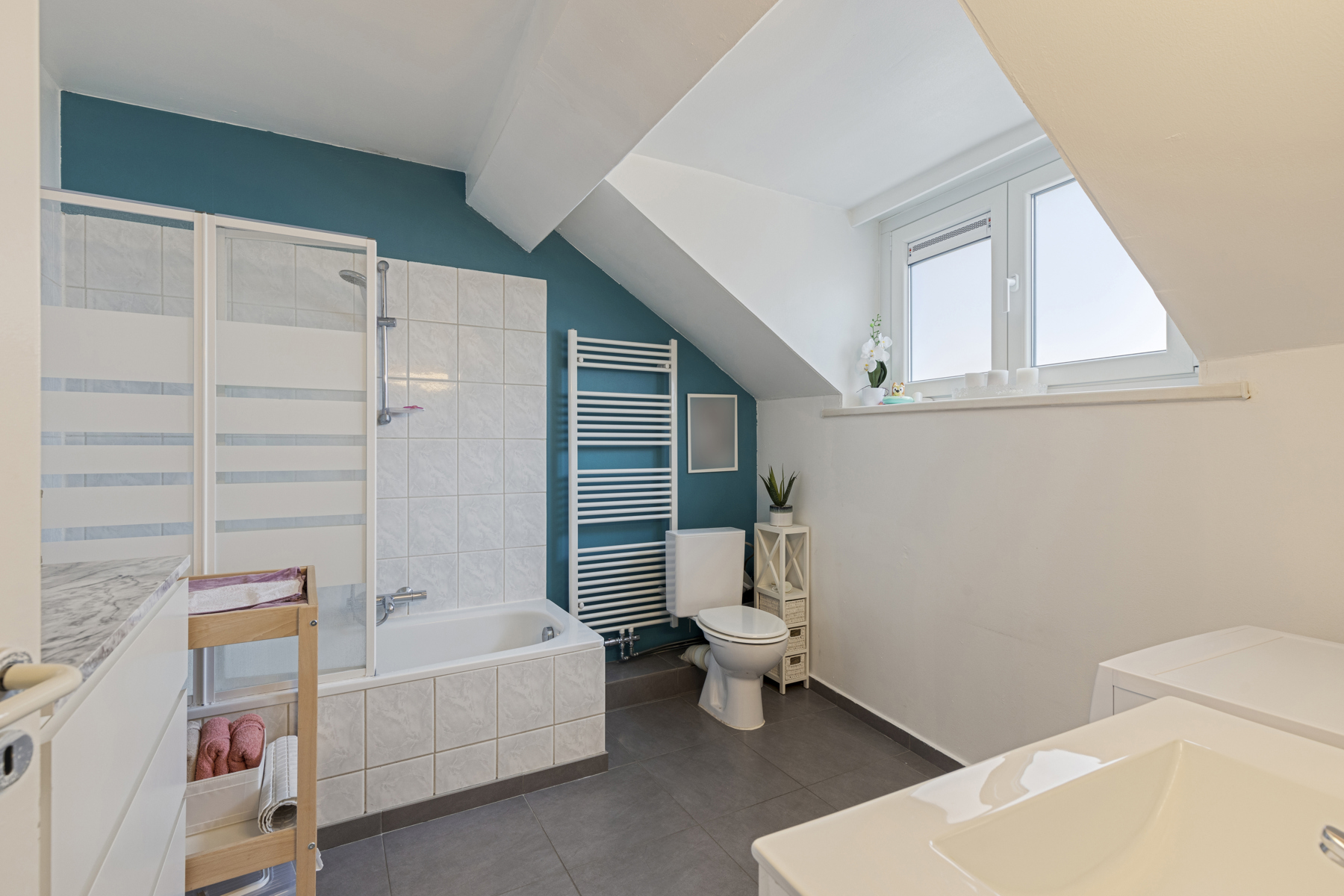 Op de tweede verdieping bevinden zich de privévertrekken. De ruime slaapkamer biedt voldoende plaats voor een tweepersoonsbed en kastruimte. Aansluitend vind je de badkamer, die is voorzien van het nodige comfort. Deze verdieping vormt een rustige en afzonderlijke slaapzone, weg van het leefgedeelte.